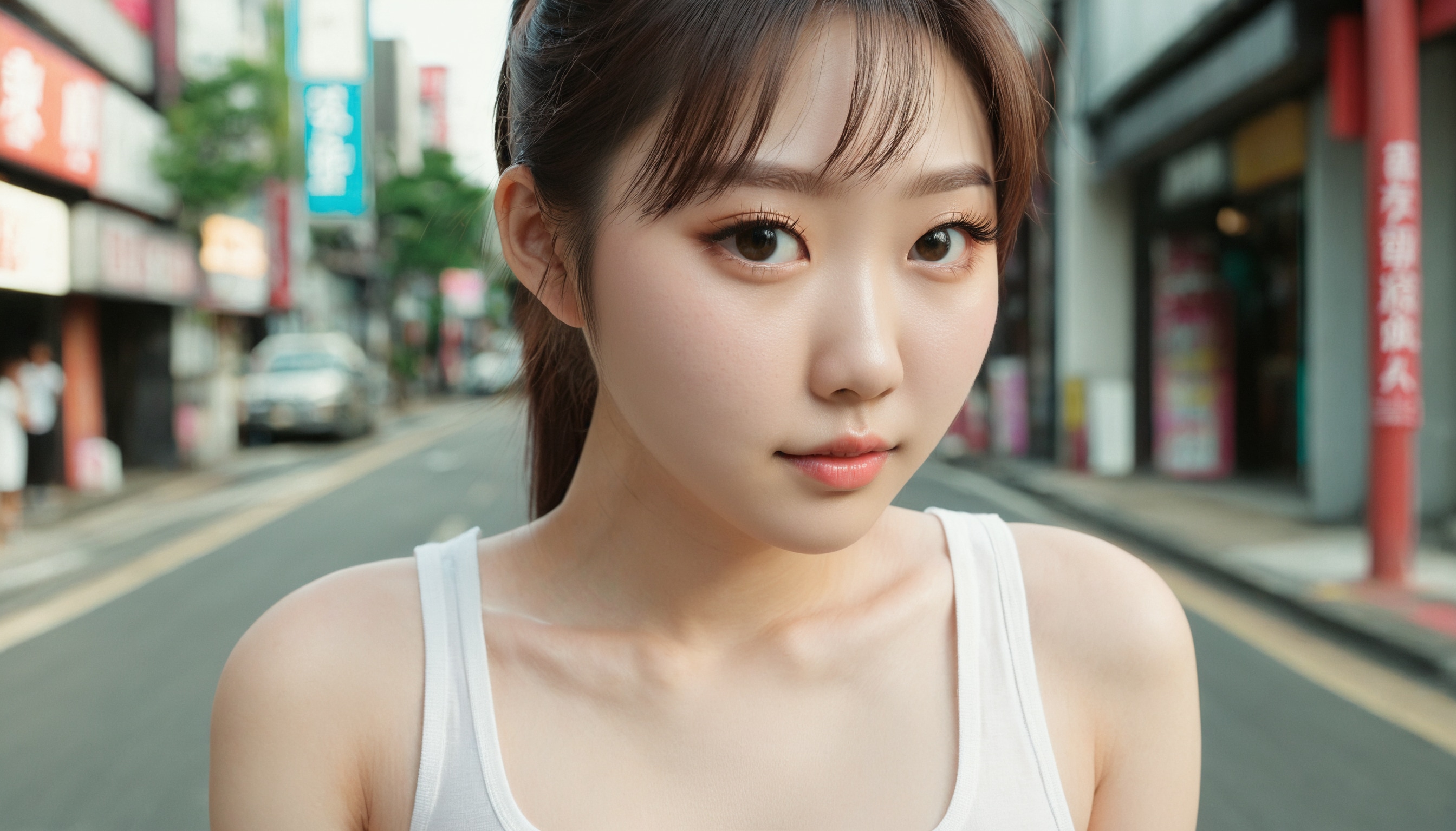 {"3": {"inputs": {"seed": 407092922591654, "steps": 32, "cfg": 7.65, "sampler_name": "dpmpp_2m", "scheduler": "karras", "denoise": 1.0, "model": ["27", 0], "positive": ["6", 0], "negative": ["7", 0], "latent_image": ["5", 0]}, "class_type": "KSampler"}, "4": {"inputs": {"ckpt_name": "juggernautxl.safetensors"}, "class_type": "CheckpointLoaderSimple"}, "5": {"inputs": {"width": 1344, "height": 768, "batch_size": 1}, "class_type": "EmptyLatentImage"}, "6": {"inputs": {"text": "21 year old girl, (korean:0.95), (japanese:1.00), (cute:1.10), (eyelashes:1.09), (temptress:1.14), (detailed face:1.10), (slim:1.04), (sexy lips:1.12), (pale skin:1.06), (blush:0.95), (beautiful eyes:0.99), (double eyelids:1.13), (seductive pose:1.13), (seductive facial expression:0.96), (perky ass:1.11), (exposed ass:1.12), (looking back:0.96), (sexy ass:1.03), (thigh gap:0.95), (white tanktop:1.10), busy street, (skin fuzz:1.02), (candid cinema:1.02), (detailed skin:1.04), (textured skin:1.07), (soft lighting:1.05), (film:1.01), (natural looking skin:1.06), (RAW:1.01), (portra:1.08)", "clip": ["27", 1]}, "class_type": "CLIPTextEncode"}, "7": {"inputs": {"text": "(low resolution:1.07), (watermark:1.11), (twisted:1.07), (worst quality:1.05), (distorted:1.12), (bad hands:1.08), (open mouth:1.14)", "clip": ["27", 1]}, "class_type": "CLIPTextEncode"}, "8": {"inputs": {"samples": ["3", 0], "vae": ["4", 2]}, "class_type": "VAEDecode"}, "25": {"inputs": {"lora_name": "nudify_xl.safetensors", "strength_model": 0.17, "strength_clip": 0.3, "model": ["4", 0], "clip": ["4", 1]}, "class_type": "LoraLoader"}, "26": {"inputs": {"lora_name": "shirtlift_SDXL_v2.safetensors", "strength_model": 0.1, "strength_clip": 0.04, "model": ["25", 0], "clip": ["25", 1]}, "class_type": "LoraLoader"}, "27": {"inputs": {"lora_name": "PerfectEyesXL.safetensors", "strength_model": 0.01, "strength_clip": 0.09, "model": ["26", 0], "clip": ["26", 1]}, "class_type": "LoraLoader"}, "30": {"inputs": {"model_name": "4x_NMKD-Superscale-SP_178000_G.pth"}, "class_type": "UpscaleModelLoader"}, "31": {"inputs": {"upscale_model": ["30", 0], "image": ["8", 0]}, "class_type": "ImageUpscaleWithModel"}, "32": {"inputs": {"upscale_method": "lanczos", "scale_by": 0.5, "image": ["31", 0]}, "class_type": "ImageScaleBy"}, "33": {"inputs": {"pixels": ["32", 0], "vae": ["4", 2]}, "class_type": "VAEEncode"}, "34": {"inputs": {"seed": 407092922591654, "steps": 32, "cfg": 7.65, "sampler_name": "dpmpp_2m", "scheduler": "karras", "denoise": 0.3, "model": ["27", 0], "positive": ["6", 0], "negative": ["7", 0], "latent_image": ["33", 0]}, "class_type": "KSampler"}, "36": {"inputs": {"samples": ["34", 0], "vae": ["4", 2]}, "class_type": "VAEDecode"}, "39": {"inputs": {"filename_prefix": "comfyapi-1724663857320", "images": ["36", 0]}, "class_type": "SaveImage"}}