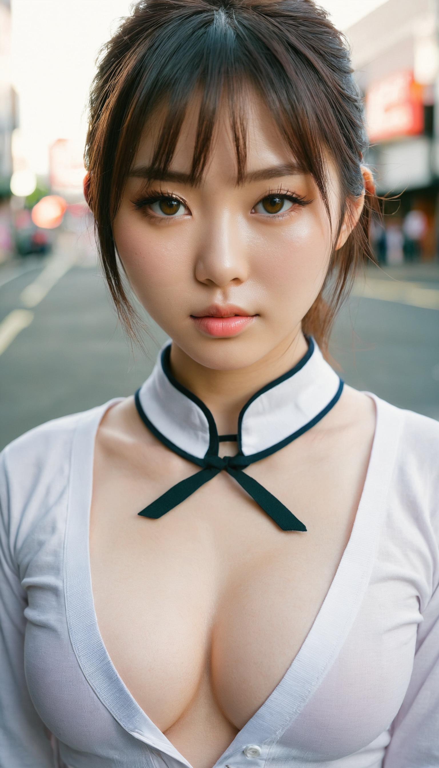{"3": {"inputs": {"seed": 561466291938097, "steps": 64, "cfg": 7.23, "sampler_name": "dpmpp_2m", "scheduler": "karras", "denoise": 1.0, "model": ["27", 0], "positive": ["6", 0], "negative": ["7", 0], "latent_image": ["5", 0]}, "class_type": "KSampler"}, "4": {"inputs": {"ckpt_name": "juggernautxl.safetensors"}, "class_type": "CheckpointLoaderSimple"}, "5": {"inputs": {"width": 768, "height": 1344, "batch_size": 1}, "class_type": "EmptyLatentImage"}, "6": {"inputs": {"text": "25 year old girl, (japanese:1.09), (irish:1.09), (beautiful eyes:1.08), (seductive facial expression:0.98), (cute:1.00), (seductive pose:1.09), (blush:1.08), (detailed face:1.11), (idol:1.08), (sexy lips:0.99), (double eyelids:1.14), (eyelashes:0.97), (pale skin:1.02), (in a seductive pose:1.14), (large perky breasts:1.01), (cleavage:1.02), (thigh gap:1.13), (school uniform:1.02), choker, busy street, (textured skin:1.07), (portra:1.04), (detailed skin:1.08), (natural looking skin:1.04), (soft lighting:1.03), (candid cinema:1.07), (skin fuzz:1.07), (RAW:1.00), (film:1.01)", "clip": ["27", 1]}, "class_type": "CLIPTextEncode"}, "7": {"inputs": {"text": "(low resolution:1.05), (open mouth:1.14), (twisted:1.14), (distorted:1.08), (bad hands:1.08), (watermark:1.14), (worst quality:1.14)", "clip": ["27", 1]}, "class_type": "CLIPTextEncode"}, "8": {"inputs": {"samples": ["3", 0], "vae": ["4", 2]}, "class_type": "VAEDecode"}, "25": {"inputs": {"lora_name": "nudify_xl.safetensors", "strength_model": 0.35, "strength_clip": 0.2, "model": ["4", 0], "clip": ["4", 1]}, "class_type": "LoraLoader"}, "26": {"inputs": {"lora_name": "shirtlift_SDXL_v2.safetensors", "strength_model": 0.1, "strength_clip": 0.08, "model": ["25", 0], "clip": ["25", 1]}, "class_type": "LoraLoader"}, "27": {"inputs": {"lora_name": "PerfectEyesXL.safetensors", "strength_model": 0.03, "strength_clip": 0.13, "model": ["26", 0], "clip": ["26", 1]}, "class_type": "LoraLoader"}, "30": {"inputs": {"model_name": "4x_NMKD-Superscale-SP_178000_G.pth"}, "class_type": "UpscaleModelLoader"}, "31": {"inputs": {"upscale_model": ["30", 0], "image": ["8", 0]}, "class_type": "ImageUpscaleWithModel"}, "32": {"inputs": {"upscale_method": "lanczos", "scale_by": 0.5, "image": ["31", 0]}, "class_type": "ImageScaleBy"}, "33": {"inputs": {"pixels": ["32", 0], "vae": ["4", 2]}, "class_type": "VAEEncode"}, "34": {"inputs": {"seed": 561466291938097, "steps": 64, "cfg": 7.23, "sampler_name": "dpmpp_2m", "scheduler": "karras", "denoise": 0.3, "model": ["27", 0], "positive": ["6", 0], "negative": ["7", 0], "latent_image": ["33", 0]}, "class_type": "KSampler"}, "36": {"inputs": {"samples": ["34", 0], "vae": ["4", 2]}, "class_type": "VAEDecode"}, "39": {"inputs": {"filename_prefix": "comfyapi-1724354801837", "images": ["36", 0]}, "class_type": "SaveImage"}}