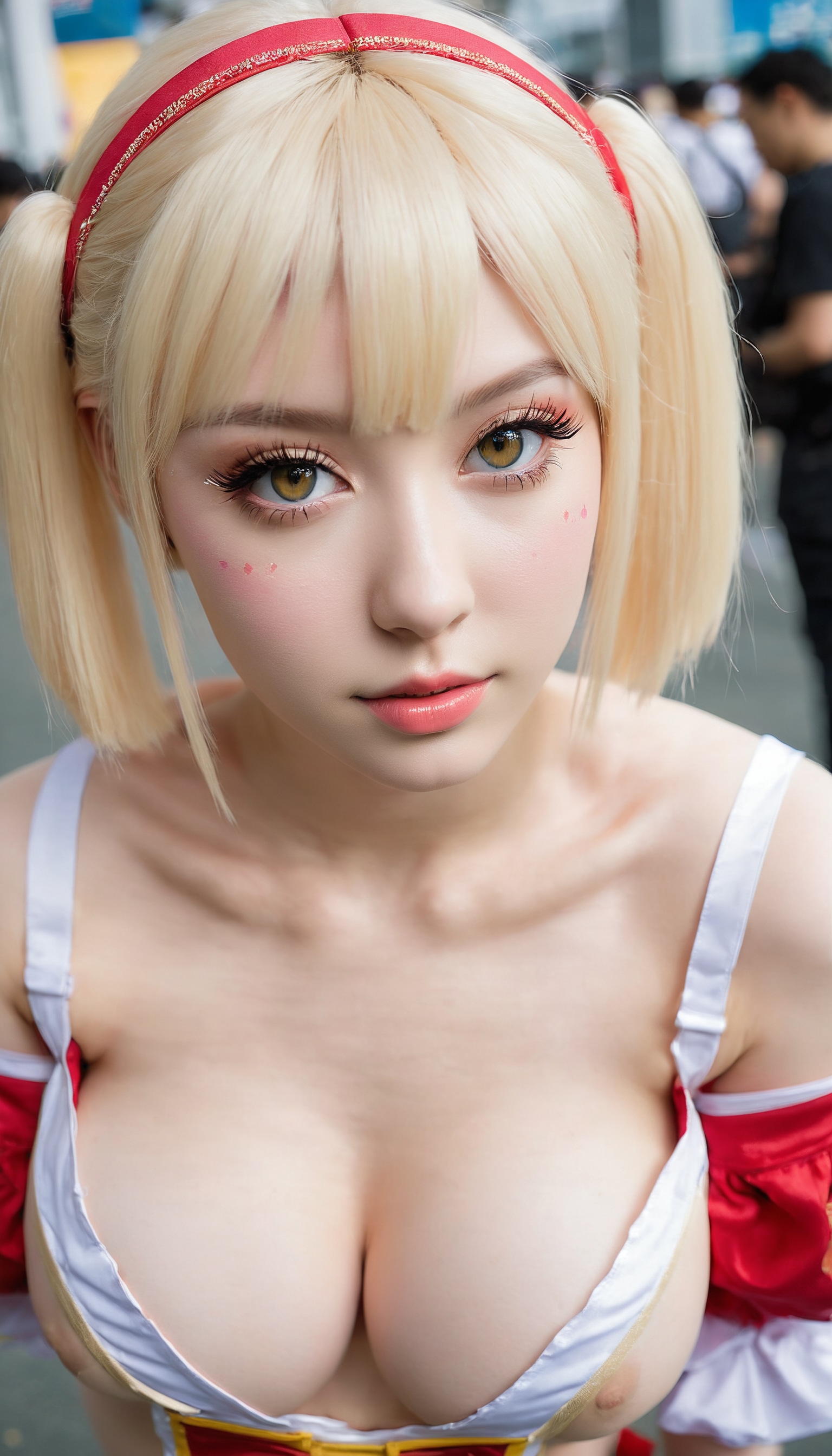 {"3": {"inputs": {"seed": 473401482545785, "steps": 32, "cfg": 7.83, "sampler_name": "dpmpp_2m", "scheduler": "karras", "denoise": 1.0, "model": ["27", 0], "positive": ["6", 0], "negative": ["7", 0], "latent_image": ["5", 0]}, "class_type": "KSampler"}, "4": {"inputs": {"ckpt_name": "juggernautxl.safetensors"}, "class_type": "CheckpointLoaderSimple"}, "5": {"inputs": {"width": 768, "height": 1344, "batch_size": 1}, "class_type": "EmptyLatentImage"}, "6": {"inputs": {"text": "26 year old girl, (ukrainian:0.97), (detailed face:1.12), (pale skin:0.95), (idol:1.07), (cute:1.13), (beautiful eyes:0.98), (eyelashes:1.05), (sexy lips:1.14), (blush:1.10), (slim:1.01), (seductive facial expression:1.10), (temptress:0.97), (double eyelids:1.08), (seductive pose:0.95), (perky ass:1.14), (exposed ass:0.95), (looking back:1.14), (sexy ass:1.11), (thigh gap:1.12), (in a cosplay:1.05) at comiket posing for camera, (RAW:1.04), (film:1.05), (soft lighting:1.03), (skin fuzz:1.01), (detailed skin:1.05), (portra:1.04), (natural looking skin:1.00), (candid cinema:1.09), (textured skin:1.00)", "clip": ["27", 1]}, "class_type": "CLIPTextEncode"}, "7": {"inputs": {"text": "(low resolution:1.08), (bad hands:1.06), (twisted:1.09), (distorted:1.06), (open mouth:1.07), (worst quality:1.09), (watermark:1.07)", "clip": ["27", 1]}, "class_type": "CLIPTextEncode"}, "8": {"inputs": {"samples": ["3", 0], "vae": ["4", 2]}, "class_type": "VAEDecode"}, "25": {"inputs": {"lora_name": "nudify_xl.safetensors", "strength_model": 0.2, "strength_clip": 0.37, "model": ["4", 0], "clip": ["4", 1]}, "class_type": "LoraLoader"}, "26": {"inputs": {"lora_name": "shirtlift_SDXL_v2.safetensors", "strength_model": 0.05, "strength_clip": 0.12, "model": ["25", 0], "clip": ["25", 1]}, "class_type": "LoraLoader"}, "27": {"inputs": {"lora_name": "PerfectEyesXL.safetensors", "strength_model": 0.13, "strength_clip": 0.01, "model": ["26", 0], "clip": ["26", 1]}, "class_type": "LoraLoader"}, "30": {"inputs": {"model_name": "4x_NMKD-Superscale-SP_178000_G.pth"}, "class_type": "UpscaleModelLoader"}, "31": {"inputs": {"upscale_model": ["30", 0], "image": ["8", 0]}, "class_type": "ImageUpscaleWithModel"}, "32": {"inputs": {"upscale_method": "lanczos", "scale_by": 0.5, "image": ["31", 0]}, "class_type": "ImageScaleBy"}, "33": {"inputs": {"pixels": ["32", 0], "vae": ["4", 2]}, "class_type": "VAEEncode"}, "34": {"inputs": {"seed": 473401482545785, "steps": 32, "cfg": 7.83, "sampler_name": "dpmpp_2m", "scheduler": "karras", "denoise": 0.3, "model": ["27", 0], "positive": ["6", 0], "negative": ["7", 0], "latent_image": ["33", 0]}, "class_type": "KSampler"}, "36": {"inputs": {"samples": ["34", 0], "vae": ["4", 2]}, "class_type": "VAEDecode"}, "39": {"inputs": {"filename_prefix": "comfyapi-1713355269113", "images": ["36", 0]}, "class_type": "SaveImage"}}