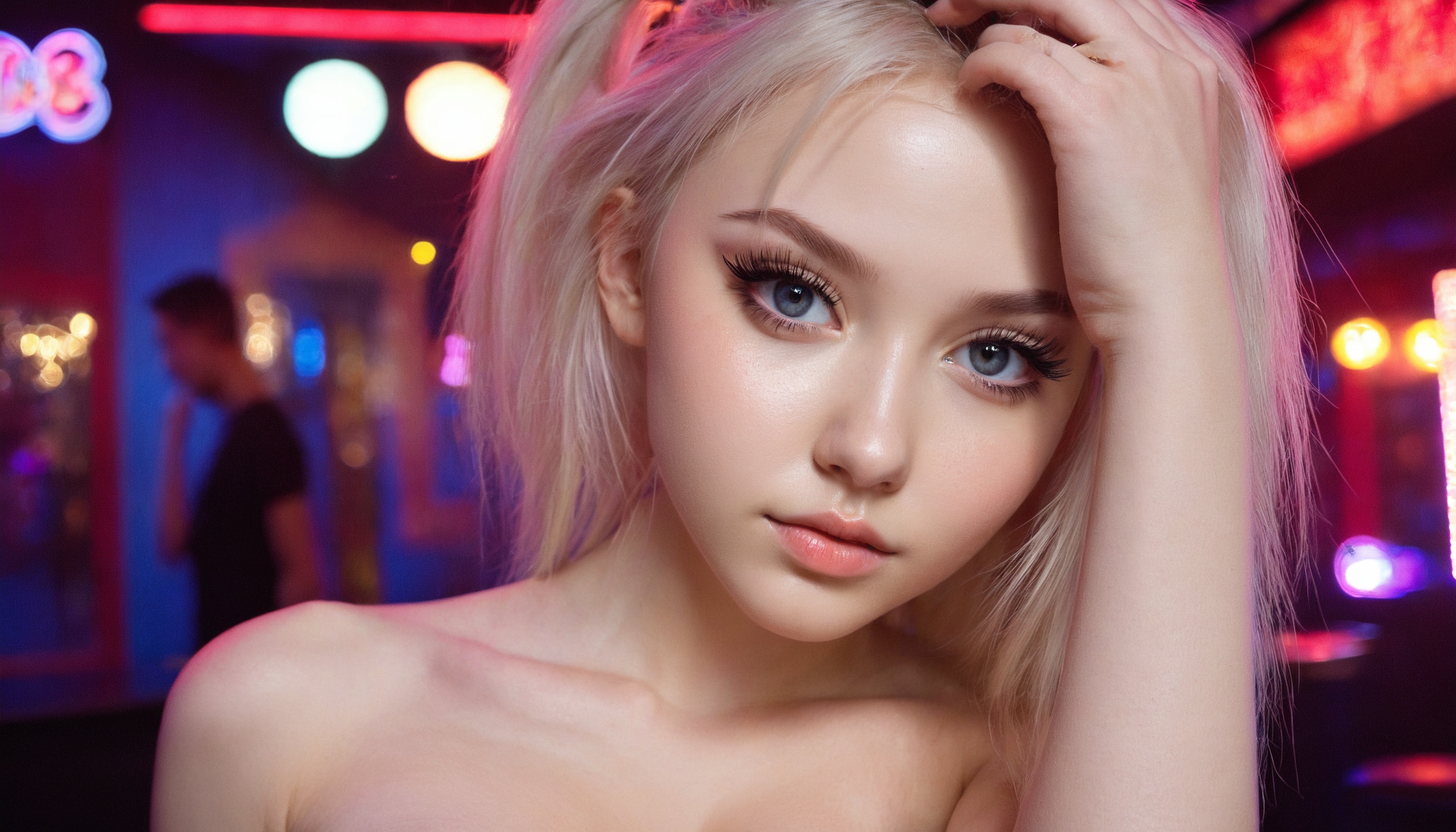{"3": {"inputs": {"seed": 940737416932004, "steps": 64, "cfg": 7.35, "sampler_name": "dpmpp_2m", "scheduler": "karras", "denoise": 1.0, "model": ["27", 0], "positive": ["6", 0], "negative": ["7", 0], "latent_image": ["5", 0]}, "class_type": "KSampler"}, "4": {"inputs": {"ckpt_name": "juggernautxl.safetensors"}, "class_type": "CheckpointLoaderSimple"}, "5": {"inputs": {"width": 1344, "height": 768, "batch_size": 1}, "class_type": "EmptyLatentImage"}, "6": {"inputs": {"text": "19 year old girl, (ukrainian:1.01), (double eyelids:1.12), (seductive facial expression:1.11), (cute:0.98), (detailed face:1.04), (pale skin:1.06), (idol:1.14), (eyelashes:0.98), (blush:0.96), (temptress:1.10), (beautiful eyes:0.98), (seductive pose:1.06), (slim:0.99), (sexy lips:1.05), (in a seductive pose:0.96), (large perky breasts:1.03), (cleavage:0.95), (thigh gap:0.95), (a pole dancer:0.95) at a night club, (skin fuzz:1.03), (portra:1.07), (natural looking skin:1.02), (soft lighting:1.00), (textured skin:1.06), (film:1.01), (detailed skin:1.00), (candid cinema:1.05), (RAW:1.06)", "clip": ["27", 1]}, "class_type": "CLIPTextEncode"}, "7": {"inputs": {"text": "(low resolution:1.09), (watermark:1.11), (worst quality:1.14), (open mouth:1.12), (bad hands:1.13), (distorted:1.11), (twisted:1.09)", "clip": ["27", 1]}, "class_type": "CLIPTextEncode"}, "8": {"inputs": {"samples": ["3", 0], "vae": ["4", 2]}, "class_type": "VAEDecode"}, "25": {"inputs": {"lora_name": "nudify_xl.safetensors", "strength_model": 0.29, "strength_clip": 0.2, "model": ["4", 0], "clip": ["4", 1]}, "class_type": "LoraLoader"}, "26": {"inputs": {"lora_name": "shirtlift_SDXL_v2.safetensors", "strength_model": 0.1, "strength_clip": 0.01, "model": ["25", 0], "clip": ["25", 1]}, "class_type": "LoraLoader"}, "27": {"inputs": {"lora_name": "PerfectEyesXL.safetensors", "strength_model": 0.13, "strength_clip": 0.09, "model": ["26", 0], "clip": ["26", 1]}, "class_type": "LoraLoader"}, "30": {"inputs": {"model_name": "4x_NMKD-Superscale-SP_178000_G.pth"}, "class_type": "UpscaleModelLoader"}, "31": {"inputs": {"upscale_model": ["30", 0], "image": ["8", 0]}, "class_type": "ImageUpscaleWithModel"}, "32": {"inputs": {"upscale_method": "lanczos", "scale_by": 0.5, "image": ["31", 0]}, "class_type": "ImageScaleBy"}, "33": {"inputs": {"pixels": ["32", 0], "vae": ["4", 2]}, "class_type": "VAEEncode"}, "34": {"inputs": {"seed": 940737416932004, "steps": 64, "cfg": 7.35, "sampler_name": "dpmpp_2m", "scheduler": "karras", "denoise": 0.3, "model": ["27", 0], "positive": ["6", 0], "negative": ["7", 0], "latent_image": ["33", 0]}, "class_type": "KSampler"}, "36": {"inputs": {"samples": ["34", 0], "vae": ["4", 2]}, "class_type": "VAEDecode"}, "39": {"inputs": {"filename_prefix": "comfyapi-1726662489424", "images": ["36", 0]}, "class_type": "SaveImage"}}