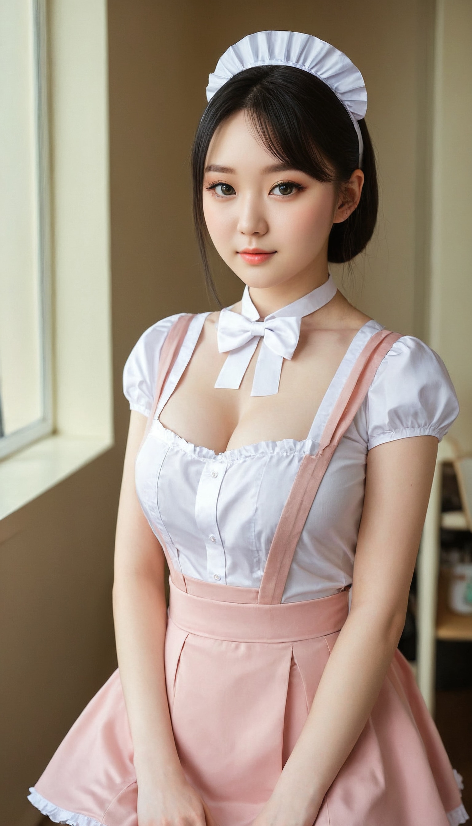 {"3": {"inputs": {"seed": 945186642436937, "steps": 64, "cfg": 5.93, "sampler_name": "dpmpp_2m", "scheduler": "karras", "denoise": 1.0, "model": ["27", 0], "positive": ["6", 0], "negative": ["7", 0], "latent_image": ["5", 0]}, "class_type": "KSampler"}, "4": {"inputs": {"ckpt_name": "juggernautXL_v8Rundiffusion.safetensors"}, "class_type": "CheckpointLoaderSimple"}, "5": {"inputs": {"width": 768, "height": 1344, "batch_size": 1}, "class_type": "EmptyLatentImage"}, "6": {"inputs": {"text": "19 year old girl, (irish:1.07), (korean:0.99), (russian:1.13), (double eyelids:0.99), (idol:0.96), (seductive facial expression:0.97), (slim:1.04), (eyelashes:1.05), (beautiful eyes:1.03), (pale skin:1.11), (seductive pose:1.03), (detailed face:1.00), (blush:1.02), (temptress:1.12), (cute:0.99), (sexy lips:1.09), (in a seductive pose:1.00), (large perky breasts:1.04), (cleavage:1.05), (thigh gap:1.14), in a (skimpy maid costume:1.08) working at a maid cafe, choker, bowtie, headband, pleated skirt, (textured skin:1.09), (portra:1.02), (RAW:1.06), (film:1.09), (natural looking skin:1.06), (soft lighting:1.09), (candid cinema:1.07), (skin fuzz:1.03), (detailed skin:1.03)", "clip": ["27", 1]}, "class_type": "CLIPTextEncode"}, "7": {"inputs": {"text": "(worst quality:1.06), (watermark:1.13), (open mouth:1.08), (twisted:1.10), (bad hands:1.06), (low resolution:1.12), (distorted:1.05)", "clip": ["27", 1]}, "class_type": "CLIPTextEncode"}, "8": {"inputs": {"samples": ["3", 0], "vae": ["4", 2]}, "class_type": "VAEDecode"}, "25": {"inputs": {"lora_name": "nudify_xl.safetensors", "strength_model": 0.37, "strength_clip": 0.02, "model": ["4", 0], "clip": ["4", 1]}, "class_type": "LoraLoader"}, "26": {"inputs": {"lora_name": "shirtlift_SDXL_v2.safetensors", "strength_model": 0.0, "strength_clip": 0.17, "model": ["25", 0], "clip": ["25", 1]}, "class_type": "LoraLoader"}, "27": {"inputs": {"lora_name": "PerfectEyesXL.safetensors", "strength_model": 0.07, "strength_clip": 0.01, "model": ["26", 0], "clip": ["26", 1]}, "class_type": "LoraLoader"}, "30": {"inputs": {"model_name": "4x_NMKD-Superscale-SP_178000_G.pth"}, "class_type": "UpscaleModelLoader"}, "31": {"inputs": {"upscale_model": ["30", 0], "image": ["8", 0]}, "class_type": "ImageUpscaleWithModel"}, "32": {"inputs": {"upscale_method": "lanczos", "scale_by": 0.5, "image": ["31", 0]}, "class_type": "ImageScaleBy"}, "33": {"inputs": {"pixels": ["32", 0], "vae": ["4", 2]}, "class_type": "VAEEncode"}, "34": {"inputs": {"seed": 945186642436937, "steps": 64, "cfg": 5.93, "sampler_name": "dpmpp_2m", "scheduler": "karras", "denoise": 0.3, "model": ["27", 0], "positive": ["6", 0], "negative": ["7", 0], "latent_image": ["33", 0]}, "class_type": "KSampler"}, "36": {"inputs": {"samples": ["34", 0], "vae": ["4", 2]}, "class_type": "VAEDecode"}, "39": {"inputs": {"filename_prefix": "comfyapi-1708012816306", "images": ["36", 0]}, "class_type": "SaveImage"}}