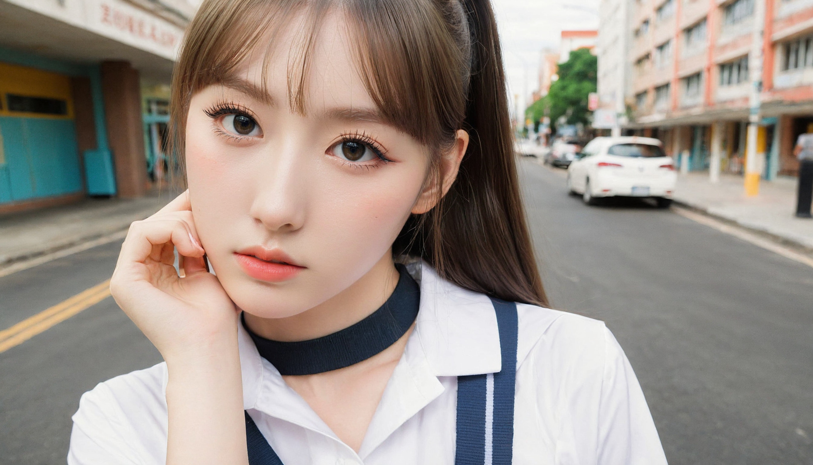{"3": {"inputs": {"seed": 676143859645890, "steps": 64, "cfg": 7.37, "sampler_name": "dpmpp_2m", "scheduler": "karras", "denoise": 1.0, "model": ["27", 0], "positive": ["6", 0], "negative": ["7", 0], "latent_image": ["5", 0]}, "class_type": "KSampler"}, "4": {"inputs": {"ckpt_name": "leosamsHelloworldSDXL_helloworldSDXL32DPO.safetensors"}, "class_type": "CheckpointLoaderSimple"}, "5": {"inputs": {"width": 1344, "height": 768, "batch_size": 1}, "class_type": "EmptyLatentImage"}, "6": {"inputs": {"text": "20 year old girl, (eyelashes:1.10), (seductive facial expression:1.12), (cute:1.12), (idol:0.98), (detailed face:0.97), (blush:1.01), (slim:1.13), (temptress:0.98), (double eyelids:1.05), (pale skin:1.05), (beautiful eyes:1.07), (sexy lips:1.05), (seductive pose:1.04), (in a seductive pose:1.12), (large perky breasts:0.95), (cleavage:1.01), (thigh gap:1.06), (school uniform:1.02), choker, busy street, (natural looking skin:1.05), (portra:1.03), (RAW:1.04), (soft lighting:1.06), (skin fuzz:1.00), (textured skin:1.06), (film:1.03), (candid cinema:1.04), (detailed skin:1.07)", "clip": ["27", 1]}, "class_type": "CLIPTextEncode"}, "7": {"inputs": {"text": "(bad hands:1.12), (twisted:1.10), (low resolution:1.07), (worst quality:1.14), (watermark:1.11), (open mouth:1.12), (distorted:1.11)", "clip": ["27", 1]}, "class_type": "CLIPTextEncode"}, "8": {"inputs": {"samples": ["3", 0], "vae": ["4", 2]}, "class_type": "VAEDecode"}, "25": {"inputs": {"lora_name": "nudify_xl.safetensors", "strength_model": 0.28, "strength_clip": 0.22, "model": ["4", 0], "clip": ["4", 1]}, "class_type": "LoraLoader"}, "26": {"inputs": {"lora_name": "shirtlift_SDXL_v2.safetensors", "strength_model": 0.16, "strength_clip": 0.18, "model": ["25", 0], "clip": ["25", 1]}, "class_type": "LoraLoader"}, "27": {"inputs": {"lora_name": "PerfectEyesXL.safetensors", "strength_model": 0.08, "strength_clip": 0.14, "model": ["26", 0], "clip": ["26", 1]}, "class_type": "LoraLoader"}, "30": {"inputs": {"model_name": "4x_NMKD-Superscale-SP_178000_G.pth"}, "class_type": "UpscaleModelLoader"}, "31": {"inputs": {"upscale_model": ["30", 0], "image": ["8", 0]}, "class_type": "ImageUpscaleWithModel"}, "32": {"inputs": {"upscale_method": "lanczos", "scale_by": 0.5, "image": ["31", 0]}, "class_type": "ImageScaleBy"}, "33": {"inputs": {"pixels": ["32", 0], "vae": ["4", 2]}, "class_type": "VAEEncode"}, "34": {"inputs": {"seed": 676143859645890, "steps": 64, "cfg": 7.37, "sampler_name": "dpmpp_2m", "scheduler": "karras", "denoise": 0.3, "model": ["27", 0], "positive": ["6", 0], "negative": ["7", 0], "latent_image": ["33", 0]}, "class_type": "KSampler"}, "36": {"inputs": {"samples": ["34", 0], "vae": ["4", 2]}, "class_type": "VAEDecode"}, "39": {"inputs": {"filename_prefix": "comfyapi-1707857387479", "images": ["36", 0]}, "class_type": "SaveImage"}}