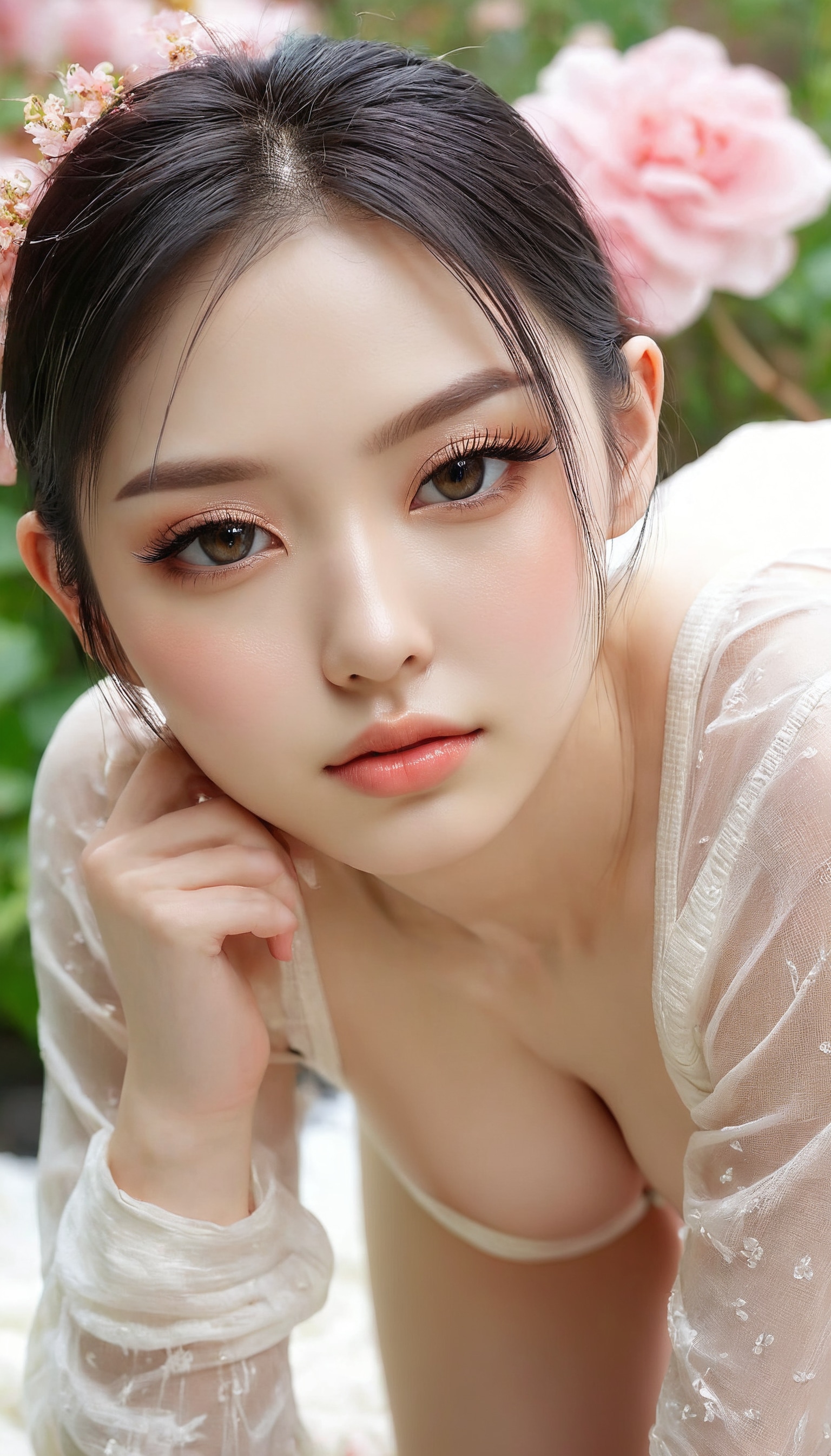 {"3": {"inputs": {"seed": 429040911100557, "steps": 64, "cfg": 7.08, "sampler_name": "dpmpp_2m", "scheduler": "karras", "denoise": 1.0, "model": ["27", 0], "positive": ["6", 0], "negative": ["7", 0], "latent_image": ["5", 0]}, "class_type": "KSampler"}, "4": {"inputs": {"ckpt_name": "juggernautxl.safetensors"}, "class_type": "CheckpointLoaderSimple"}, "5": {"inputs": {"width": 768, "height": 1344, "batch_size": 1}, "class_type": "EmptyLatentImage"}, "6": {"inputs": {"text": "26 year old girl, (russian:1.14), (ukrainian:0.96), (taiwanese:1.01), (irish:1.04), (japanese:1.12), (cute:1.03), (sexy lips:1.10), (beautiful eyes:1.03), (seductive facial expression:1.11), (eyelashes:1.03), (detailed face:1.04), (slim:1.10), (pale skin:1.14), (temptress:1.04), (idol:1.08), (double eyelids:0.99), (seductive pose:0.97), (blush:1.10), (perky ass:1.07), (exposed ass:1.12), (looking back:1.09), (sexy ass:1.04), (thigh gap:1.02), wearing (translucent clothes:1.06) on a flower field, (candid cinema:1.00), (skin fuzz:1.06), (textured skin:1.03), (soft lighting:1.05), (natural looking skin:1.07), (RAW:1.00), (film:1.07), (detailed skin:1.05)", "clip": ["27", 1]}, "class_type": "CLIPTextEncode"}, "7": {"inputs": {"text": "(watermark:1.05), (low resolution:1.11), (bad hands:1.05), (open mouth:1.08), (worst quality:1.13), (distorted:1.11), (twisted:1.10)", "clip": ["27", 1]}, "class_type": "CLIPTextEncode"}, "8": {"inputs": {"samples": ["3", 0], "vae": ["4", 2]}, "class_type": "VAEDecode"}, "25": {"inputs": {"lora_name": "nudify_xl.safetensors", "strength_model": 0.26, "strength_clip": 0.07, "model": ["4", 0], "clip": ["4", 1]}, "class_type": "LoraLoader"}, "26": {"inputs": {"lora_name": "shirtlift_SDXL_v2.safetensors", "strength_model": 0.19, "strength_clip": 0.15, "model": ["25", 0], "clip": ["25", 1]}, "class_type": "LoraLoader"}, "27": {"inputs": {"lora_name": "PerfectEyesXL.safetensors", "strength_model": 0.16, "strength_clip": 0.19, "model": ["26", 0], "clip": ["26", 1]}, "class_type": "LoraLoader"}, "30": {"inputs": {"model_name": "4x_NMKD-Superscale-SP_178000_G.pth"}, "class_type": "UpscaleModelLoader"}, "31": {"inputs": {"upscale_model": ["30", 0], "image": ["8", 0]}, "class_type": "ImageUpscaleWithModel"}, "32": {"inputs": {"upscale_method": "lanczos", "scale_by": 0.5, "image": ["31", 0]}, "class_type": "ImageScaleBy"}, "33": {"inputs": {"pixels": ["32", 0], "vae": ["4", 2]}, "class_type": "VAEEncode"}, "34": {"inputs": {"seed": 429040911100557, "steps": 64, "cfg": 7.08, "sampler_name": "dpmpp_2m", "scheduler": "karras", "denoise": 0.3, "model": ["27", 0], "positive": ["6", 0], "negative": ["7", 0], "latent_image": ["33", 0]}, "class_type": "KSampler"}, "36": {"inputs": {"samples": ["34", 0], "vae": ["4", 2]}, "class_type": "VAEDecode"}, "39": {"inputs": {"filename_prefix": "comfyapi-1734686398351", "images": ["36", 0]}, "class_type": "SaveImage"}}