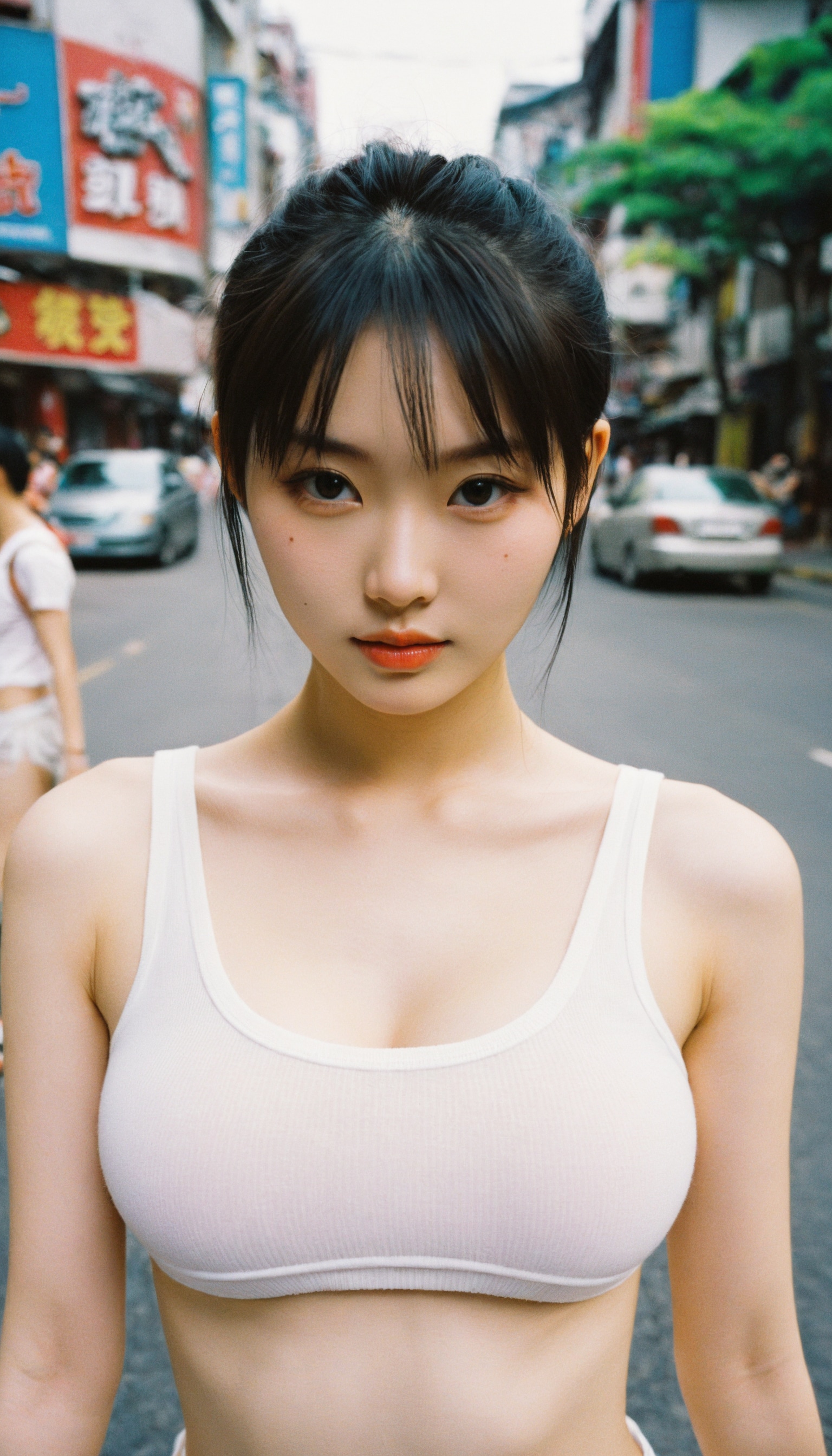 {"3": {"inputs": {"seed": 243641848242499, "steps": 32, "cfg": 7.51, "sampler_name": "dpmpp_2m", "scheduler": "karras", "denoise": 1.0, "model": ["27", 0], "positive": ["6", 0], "negative": ["7", 0], "latent_image": ["5", 0]}, "class_type": "KSampler"}, "4": {"inputs": {"ckpt_name": "helloworldxl.safetensors"}, "class_type": "CheckpointLoaderSimple"}, "5": {"inputs": {"width": 768, "height": 1344, "batch_size": 1}, "class_type": "EmptyLatentImage"}, "6": {"inputs": {"text": "22 year old girl, (taiwanese:1.07), (eyelashes:0.98), (cute:1.14), (sexy lips:1.06), (seductive pose:0.95), (slim:1.06), (seductive facial expression:0.95), (detailed face:0.97), (idol:1.03), (temptress:1.02), (pale skin:1.10), (double eyelids:1.04), (blush:1.00), (in a seductive pose:1.03), (large perky breasts:1.00), (cleavage:1.04), (thigh gap:1.05), (white tanktop:1.06), busy street, (detailed skin:1.06), (candid cinema:1.07), (natural looking skin:1.03), (film:1.04), (RAW:1.06), (soft lighting:1.04), (textured skin:1.02), (skin fuzz:1.05), (portra:1.03)", "clip": ["27", 1]}, "class_type": "CLIPTextEncode"}, "7": {"inputs": {"text": "(bad hands:1.06), (watermark:1.13), (worst quality:1.14), (distorted:1.09), (twisted:1.12), (open mouth:1.13), (low resolution:1.07)", "clip": ["27", 1]}, "class_type": "CLIPTextEncode"}, "8": {"inputs": {"samples": ["3", 0], "vae": ["4", 2]}, "class_type": "VAEDecode"}, "25": {"inputs": {"lora_name": "nudify_xl.safetensors", "strength_model": 0.14, "strength_clip": 0.24, "model": ["4", 0], "clip": ["4", 1]}, "class_type": "LoraLoader"}, "26": {"inputs": {"lora_name": "shirtlift_SDXL_v2.safetensors", "strength_model": 0.03, "strength_clip": 0.12, "model": ["25", 0], "clip": ["25", 1]}, "class_type": "LoraLoader"}, "27": {"inputs": {"lora_name": "PerfectEyesXL.safetensors", "strength_model": 0.16, "strength_clip": 0.07, "model": ["26", 0], "clip": ["26", 1]}, "class_type": "LoraLoader"}, "30": {"inputs": {"model_name": "4x_NMKD-Superscale-SP_178000_G.pth"}, "class_type": "UpscaleModelLoader"}, "31": {"inputs": {"upscale_model": ["30", 0], "image": ["8", 0]}, "class_type": "ImageUpscaleWithModel"}, "32": {"inputs": {"upscale_method": "lanczos", "scale_by": 0.5, "image": ["31", 0]}, "class_type": "ImageScaleBy"}, "33": {"inputs": {"pixels": ["32", 0], "vae": ["4", 2]}, "class_type": "VAEEncode"}, "34": {"inputs": {"seed": 243641848242499, "steps": 32, "cfg": 7.51, "sampler_name": "dpmpp_2m", "scheduler": "karras", "denoise": 0.3, "model": ["27", 0], "positive": ["6", 0], "negative": ["7", 0], "latent_image": ["33", 0]}, "class_type": "KSampler"}, "36": {"inputs": {"samples": ["34", 0], "vae": ["4", 2]}, "class_type": "VAEDecode"}, "39": {"inputs": {"filename_prefix": "comfyapi-1723908761242", "images": ["36", 0]}, "class_type": "SaveImage"}}