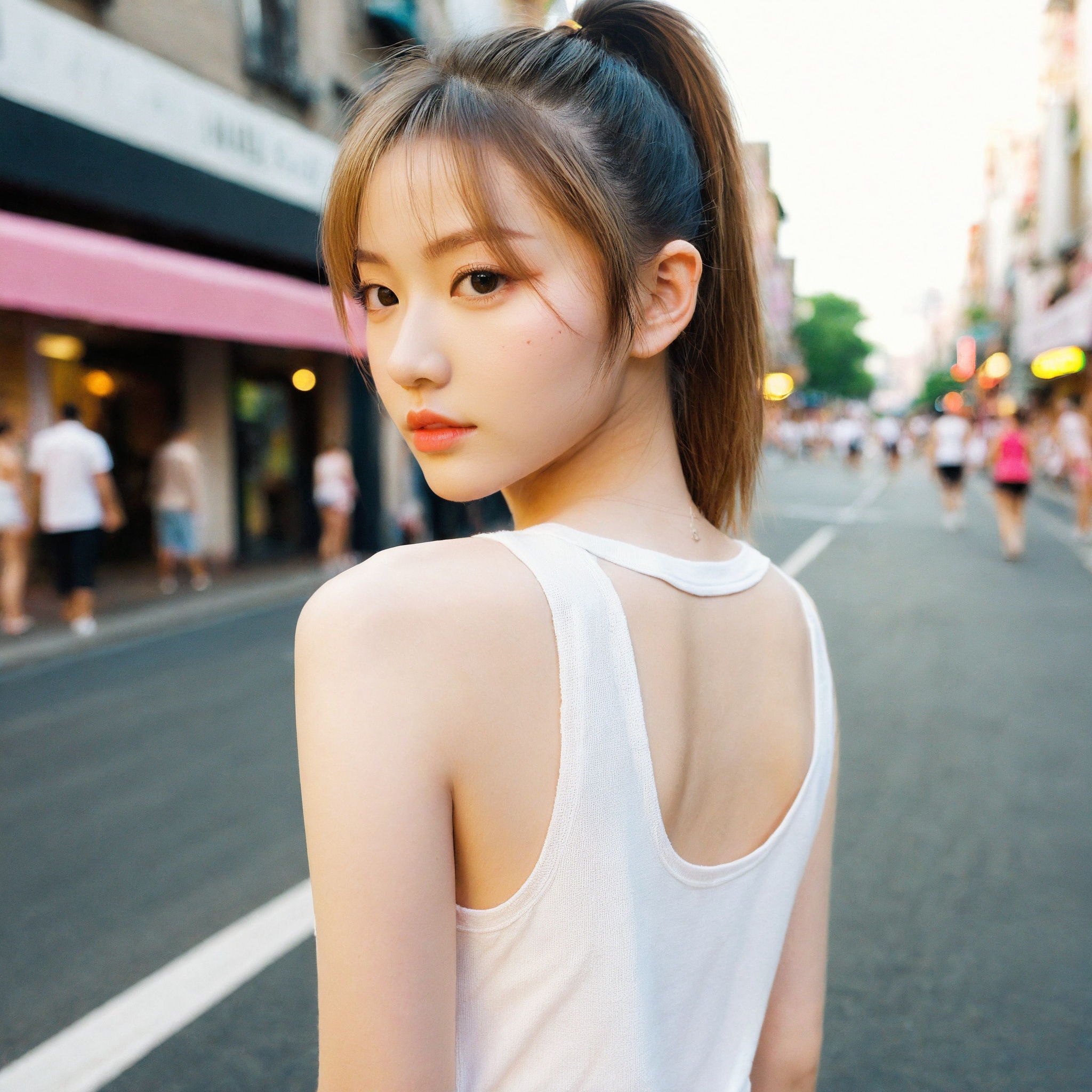 {"3": {"inputs": {"seed": 348234063310993, "steps": 32, "cfg": 7.79, "sampler_name": "dpmpp_2m", "scheduler": "karras", "denoise": 1.0, "model": ["27", 0], "positive": ["6", 0], "negative": ["7", 0], "latent_image": ["5", 0]}, "class_type": "KSampler"}, "4": {"inputs": {"ckpt_name": "leosamsHelloworldSDXL_helloworldSDXL32DPO.safetensors"}, "class_type": "CheckpointLoaderSimple"}, "5": {"inputs": {"width": 1024, "height": 1024, "batch_size": 1}, "class_type": "EmptyLatentImage"}, "6": {"inputs": {"text": "22 year old girl, (eyelashes:0.96), (detailed face:1.07), (sexy lips:0.96), (idol:0.97), (blush:1.08), (cute:0.97), (temptress:0.98), (pale skin:0.96), (seductive facial expression:1.02), (slim:0.99), (seductive pose:1.05), (beautiful eyes:1.09), (double eyelids:1.11), (perky ass:1.14), (exposed ass:1.13), (looking back:1.00), (sexy ass:1.00), (thigh gap:1.02), (white tanktop:1.11), busy street, (textured skin:1.03), (portra:1.04), (soft lighting:1.00), (detailed skin:1.08), (natural looking skin:1.01), (RAW:1.05), (skin fuzz:1.09), (candid cinema:1.05), (film:1.02)", "clip": ["27", 1]}, "class_type": "CLIPTextEncode"}, "7": {"inputs": {"text": "(bad hands:1.14), (open mouth:1.12), (worst quality:1.08), (watermark:1.05), (distorted:1.07), (low resolution:1.05), (twisted:1.06)", "clip": ["27", 1]}, "class_type": "CLIPTextEncode"}, "8": {"inputs": {"samples": ["3", 0], "vae": ["4", 2]}, "class_type": "VAEDecode"}, "25": {"inputs": {"lora_name": "nudify_xl.safetensors", "strength_model": 0.05, "strength_clip": 0.13, "model": ["4", 0], "clip": ["4", 1]}, "class_type": "LoraLoader"}, "26": {"inputs": {"lora_name": "shirtlift_SDXL_v2.safetensors", "strength_model": 0.05, "strength_clip": 0.06, "model": ["25", 0], "clip": ["25", 1]}, "class_type": "LoraLoader"}, "27": {"inputs": {"lora_name": "PerfectEyesXL.safetensors", "strength_model": 0.16, "strength_clip": 0.14, "model": ["26", 0], "clip": ["26", 1]}, "class_type": "LoraLoader"}, "30": {"inputs": {"model_name": "4x_NMKD-Superscale-SP_178000_G.pth"}, "class_type": "UpscaleModelLoader"}, "31": {"inputs": {"upscale_model": ["30", 0], "image": ["8", 0]}, "class_type": "ImageUpscaleWithModel"}, "32": {"inputs": {"upscale_method": "lanczos", "scale_by": 0.5, "image": ["31", 0]}, "class_type": "ImageScaleBy"}, "33": {"inputs": {"pixels": ["32", 0], "vae": ["4", 2]}, "class_type": "VAEEncode"}, "34": {"inputs": {"seed": 348234063310993, "steps": 32, "cfg": 7.79, "sampler_name": "dpmpp_2m", "scheduler": "karras", "denoise": 0.3, "model": ["27", 0], "positive": ["6", 0], "negative": ["7", 0], "latent_image": ["33", 0]}, "class_type": "KSampler"}, "36": {"inputs": {"samples": ["34", 0], "vae": ["4", 2]}, "class_type": "VAEDecode"}, "39": {"inputs": {"filename_prefix": "comfyapi-1708243030730", "images": ["36", 0]}, "class_type": "SaveImage"}}