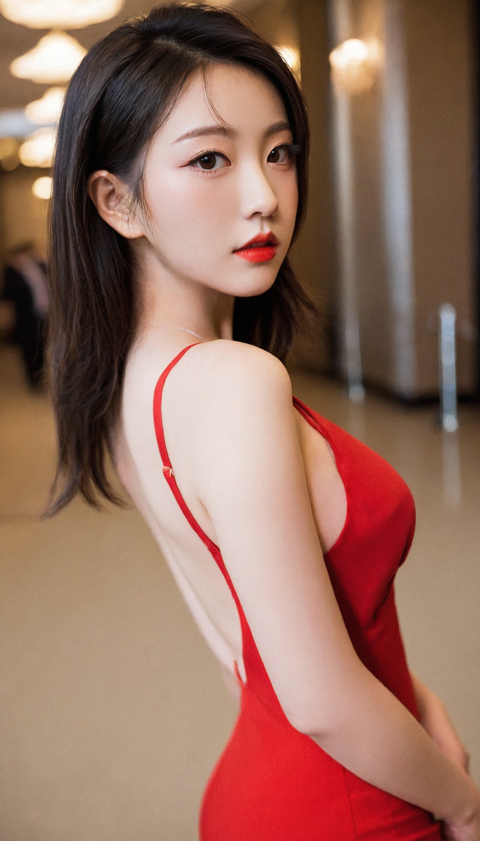 {"3": {"inputs": {"seed": 304055516376407, "steps": 64, "cfg": 5.14, "sampler_name": "dpmpp_2m", "scheduler": "karras", "denoise": 1.0, "model": ["27", 0], "positive": ["6", 0], "negative": ["7", 0], "latent_image": ["5", 0]}, "class_type": "KSampler"}, "4": {"inputs": {"ckpt_name": "leosamsHelloworldSDXL_helloworldSDXL32DPO.safetensors"}, "class_type": "CheckpointLoaderSimple"}, "5": {"inputs": {"width": 768, "height": 1344, "batch_size": 1}, "class_type": "EmptyLatentImage"}, "6": {"inputs": {"text": "22 year old girl, (japanese:1.13), (beautiful eyes:1.10), (sexy lips:1.09), (eyelashes:1.02), (double eyelids:1.14), (blush:1.01), (slim:1.00), (temptress:0.97), (seductive pose:0.96), (seductive facial expression:1.01), (detailed face:1.01), (cute:1.08), (pale skin:0.95), (perky ass:1.09), (exposed ass:0.97), (looking back:1.05), (sexy ass:1.00), (thigh gap:1.04), (wearing a low-cut red dress:1.12) at a ballroom, (candid cinema:1.09), (RAW:1.01), (detailed skin:1.07), (portra:1.09), (textured skin:1.04), (skin fuzz:1.02), (soft lighting:1.03), (film:1.01), (natural looking skin:1.03)", "clip": ["27", 1]}, "class_type": "CLIPTextEncode"}, "7": {"inputs": {"text": "(watermark:1.08), (distorted:1.09), (twisted:1.13), (worst quality:1.09), (bad hands:1.08), (low resolution:1.05), (open mouth:1.13)", "clip": ["27", 1]}, "class_type": "CLIPTextEncode"}, "8": {"inputs": {"samples": ["3", 0], "vae": ["4", 2]}, "class_type": "VAEDecode"}, "25": {"inputs": {"lora_name": "nudify_xl.safetensors", "strength_model": 0.09, "strength_clip": 0.1, "model": ["4", 0], "clip": ["4", 1]}, "class_type": "LoraLoader"}, "26": {"inputs": {"lora_name": "shirtlift_SDXL_v2.safetensors", "strength_model": 0.12, "strength_clip": 0.16, "model": ["25", 0], "clip": ["25", 1]}, "class_type": "LoraLoader"}, "27": {"inputs": {"lora_name": "PerfectEyesXL.safetensors", "strength_model": 0.12, "strength_clip": 0.07, "model": ["26", 0], "clip": ["26", 1]}, "class_type": "LoraLoader"}, "30": {"inputs": {"model_name": "4x_NMKD-Superscale-SP_178000_G.pth"}, "class_type": "UpscaleModelLoader"}, "31": {"inputs": {"upscale_model": ["30", 0], "image": ["8", 0]}, "class_type": "ImageUpscaleWithModel"}, "32": {"inputs": {"upscale_method": "lanczos", "scale_by": 0.5, "image": ["31", 0]}, "class_type": "ImageScaleBy"}, "33": {"inputs": {"pixels": ["32", 0], "vae": ["4", 2]}, "class_type": "VAEEncode"}, "34": {"inputs": {"seed": 304055516376407, "steps": 64, "cfg": 5.14, "sampler_name": "dpmpp_2m", "scheduler": "karras", "denoise": 0.3, "model": ["27", 0], "positive": ["6", 0], "negative": ["7", 0], "latent_image": ["33", 0]}, "class_type": "KSampler"}, "36": {"inputs": {"samples": ["34", 0], "vae": ["4", 2]}, "class_type": "VAEDecode"}, "39": {"inputs": {"filename_prefix": "comfyapi-1708223823885", "images": ["36", 0]}, "class_type": "SaveImage"}}