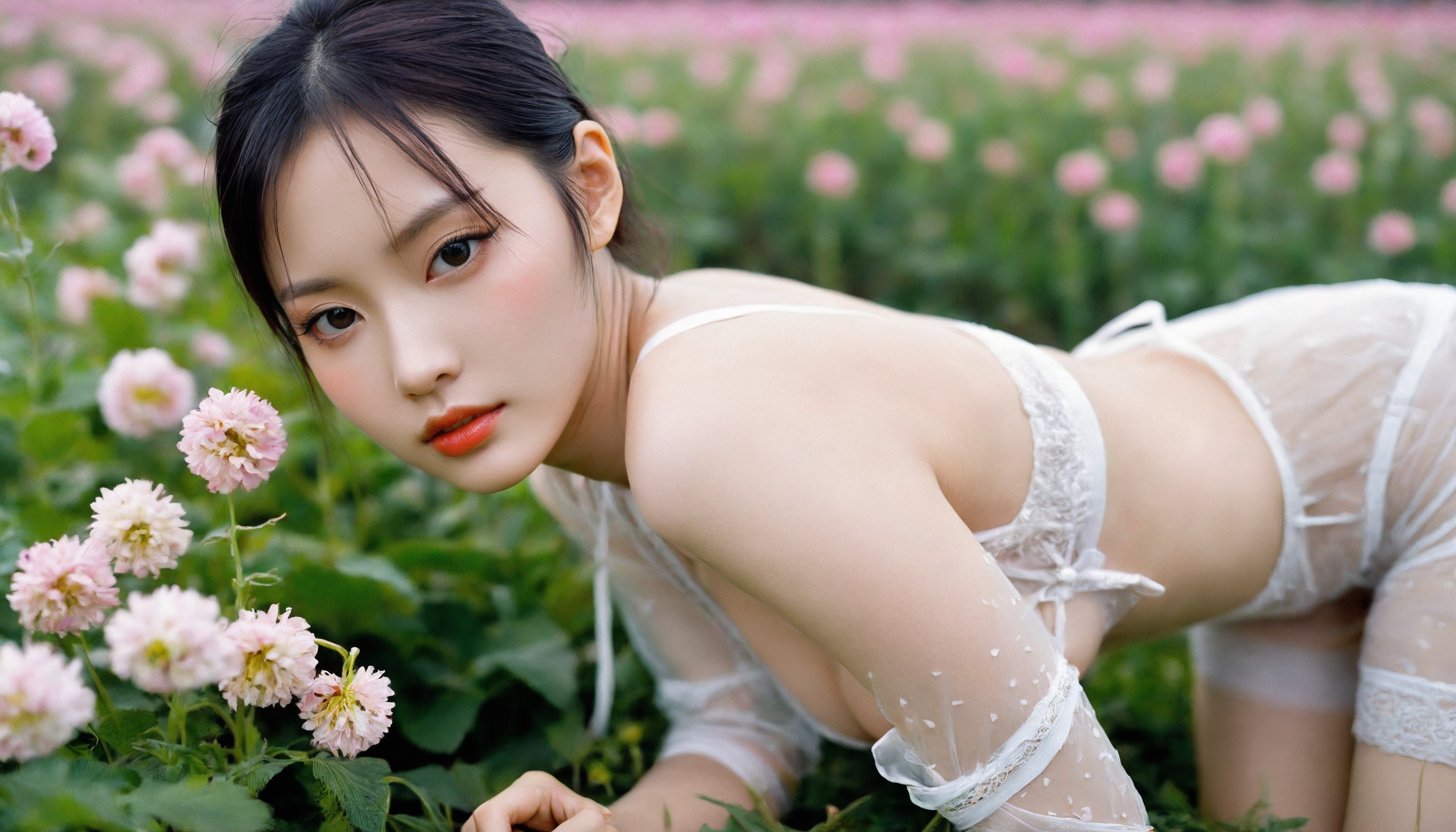 {"3": {"inputs": {"seed": 310323396724428, "steps": 64, "cfg": 5.69, "sampler_name": "dpmpp_2m", "scheduler": "karras", "denoise": 1.0, "model": ["27", 0], "positive": ["6", 0], "negative": ["7", 0], "latent_image": ["5", 0]}, "class_type": "KSampler"}, "4": {"inputs": {"ckpt_name": "helloworldxl.safetensors"}, "class_type": "CheckpointLoaderSimple"}, "5": {"inputs": {"width": 1344, "height": 768, "batch_size": 1}, "class_type": "EmptyLatentImage"}, "6": {"inputs": {"text": "28 year old girl, (chinese:1.11), (ukrainian:1.03), (idol:1.06), (blush:0.98), (double eyelids:1.12), (sexy lips:1.07), (temptress:1.09), (pale skin:1.01), (slim:1.10), (cute:1.02), (detailed face:1.03), (seductive pose:1.14), (seductive facial expression:1.06), (beautiful eyes:0.95), (eyelashes:1.06), (in a seductive pose:1.13), (large perky breasts:0.96), (cleavage:0.98), (thigh gap:1.04), wearing (translucent clothes:1.04) on a flower field, (film:1.08), (detailed skin:1.05), (textured skin:1.06), (skin fuzz:1.00), (candid cinema:1.06), (natural looking skin:1.01), (portra:1.02), (soft lighting:1.05), (RAW:1.03)", "clip": ["27", 1]}, "class_type": "CLIPTextEncode"}, "7": {"inputs": {"text": "(low resolution:1.13), (distorted:1.06), (open mouth:1.11), (worst quality:1.13), (watermark:1.09), (bad hands:1.07)", "clip": ["27", 1]}, "class_type": "CLIPTextEncode"}, "8": {"inputs": {"samples": ["3", 0], "vae": ["4", 2]}, "class_type": "VAEDecode"}, "25": {"inputs": {"lora_name": "nudify_xl.safetensors", "strength_model": 0.02, "strength_clip": 0.03, "model": ["4", 0], "clip": ["4", 1]}, "class_type": "LoraLoader"}, "26": {"inputs": {"lora_name": "shirtlift_SDXL_v2.safetensors", "strength_model": 0.16, "strength_clip": 0.14, "model": ["25", 0], "clip": ["25", 1]}, "class_type": "LoraLoader"}, "27": {"inputs": {"lora_name": "PerfectEyesXL.safetensors", "strength_model": 0.15, "strength_clip": 0.13, "model": ["26", 0], "clip": ["26", 1]}, "class_type": "LoraLoader"}, "30": {"inputs": {"model_name": "4x_NMKD-Superscale-SP_178000_G.pth"}, "class_type": "UpscaleModelLoader"}, "31": {"inputs": {"upscale_model": ["30", 0], "image": ["8", 0]}, "class_type": "ImageUpscaleWithModel"}, "32": {"inputs": {"upscale_method": "lanczos", "scale_by": 0.5, "image": ["31", 0]}, "class_type": "ImageScaleBy"}, "33": {"inputs": {"pixels": ["32", 0], "vae": ["4", 2]}, "class_type": "VAEEncode"}, "34": {"inputs": {"seed": 310323396724428, "steps": 64, "cfg": 5.69, "sampler_name": "dpmpp_2m", "scheduler": "karras", "denoise": 0.3, "model": ["27", 0], "positive": ["6", 0], "negative": ["7", 0], "latent_image": ["33", 0]}, "class_type": "KSampler"}, "36": {"inputs": {"samples": ["34", 0], "vae": ["4", 2]}, "class_type": "VAEDecode"}, "39": {"inputs": {"filename_prefix": "comfyapi-1714560159039", "images": ["36", 0]}, "class_type": "SaveImage"}}