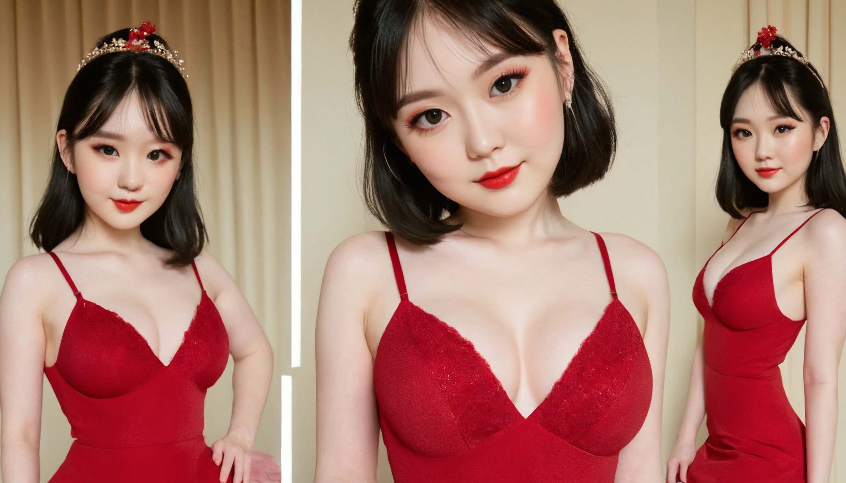{"3": {"inputs": {"seed": 459031017943975, "steps": 64, "cfg": 5.93, "sampler_name": "dpmpp_2m", "scheduler": "karras", "denoise": 1.0, "model": ["27", 0], "positive": ["6", 0], "negative": ["7", 0], "latent_image": ["5", 0]}, "class_type": "KSampler"}, "4": {"inputs": {"ckpt_name": "juggernautXL_v8Rundiffusion.safetensors"}, "class_type": "CheckpointLoaderSimple"}, "5": {"inputs": {"width": 1344, "height": 768, "batch_size": 1}, "class_type": "EmptyLatentImage"}, "6": {"inputs": {"text": "20 year old girl, (irish:0.97), (japanese:1.07), (idol:0.97), (pale skin:1.02), (double eyelids:1.11), (cute:1.10), (slim:1.06), (sexy lips:1.08), (seductive pose:1.00), (temptress:1.13), (beautiful eyes:1.13), (seductive facial expression:1.05), (detailed face:1.13), (blush:1.14), (eyelashes:1.08), (in a seductive pose:0.99), (large perky breasts:1.07), (cleavage:0.95), (thigh gap:1.04), (wearing a low-cut red dress:1.13) at a ballroom, (film:1.07), (natural looking skin:1.01), (textured skin:1.05), (candid cinema:1.01), (detailed skin:1.03), (RAW:1.07), (skin fuzz:1.01), (portra:1.03), (soft lighting:1.06)", "clip": ["27", 1]}, "class_type": "CLIPTextEncode"}, "7": {"inputs": {"text": "(worst quality:1.06), (bad hands:1.09), (low resolution:1.10), (twisted:1.11), (open mouth:1.13), (watermark:1.06), (distorted:1.07)", "clip": ["27", 1]}, "class_type": "CLIPTextEncode"}, "8": {"inputs": {"samples": ["3", 0], "vae": ["4", 2]}, "class_type": "VAEDecode"}, "25": {"inputs": {"lora_name": "nudify_xl.safetensors", "strength_model": 0.34, "strength_clip": 0.31, "model": ["4", 0], "clip": ["4", 1]}, "class_type": "LoraLoader"}, "26": {"inputs": {"lora_name": "shirtlift_SDXL_v2.safetensors", "strength_model": 0.04, "strength_clip": 0.11, "model": ["25", 0], "clip": ["25", 1]}, "class_type": "LoraLoader"}, "27": {"inputs": {"lora_name": "PerfectEyesXL.safetensors", "strength_model": 0.1, "strength_clip": 0.16, "model": ["26", 0], "clip": ["26", 1]}, "class_type": "LoraLoader"}, "30": {"inputs": {"model_name": "4x_NMKD-Superscale-SP_178000_G.pth"}, "class_type": "UpscaleModelLoader"}, "31": {"inputs": {"upscale_model": ["30", 0], "image": ["8", 0]}, "class_type": "ImageUpscaleWithModel"}, "32": {"inputs": {"upscale_method": "lanczos", "scale_by": 0.5, "image": ["31", 0]}, "class_type": "ImageScaleBy"}, "33": {"inputs": {"pixels": ["32", 0], "vae": ["4", 2]}, "class_type": "VAEEncode"}, "34": {"inputs": {"seed": 459031017943975, "steps": 64, "cfg": 5.93, "sampler_name": "dpmpp_2m", "scheduler": "karras", "denoise": 0.3, "model": ["27", 0], "positive": ["6", 0], "negative": ["7", 0], "latent_image": ["33", 0]}, "class_type": "KSampler"}, "36": {"inputs": {"samples": ["34", 0], "vae": ["4", 2]}, "class_type": "VAEDecode"}, "39": {"inputs": {"filename_prefix": "comfyapi-1707412776432", "images": ["36", 0]}, "class_type": "SaveImage"}}