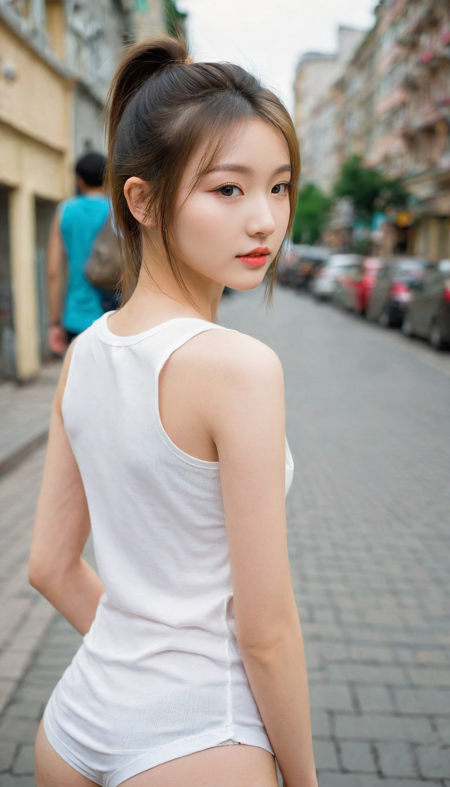 {"3": {"inputs": {"seed": 730237321445157, "steps": 32, "cfg": 7.16, "sampler_name": "dpmpp_2m", "scheduler": "karras", "denoise": 1.0, "model": ["27", 0], "positive": ["6", 0], "negative": ["7", 0], "latent_image": ["5", 0]}, "class_type": "KSampler"}, "4": {"inputs": {"ckpt_name": "leosamsHelloworldSDXL_helloworldSDXL32DPO.safetensors"}, "class_type": "CheckpointLoaderSimple"}, "5": {"inputs": {"width": 768, "height": 1344, "batch_size": 1}, "class_type": "EmptyLatentImage"}, "6": {"inputs": {"text": "20 year old girl, (ukrainian:1.10), (chinese:1.06), (beautiful eyes:1.11), (eyelashes:1.14), (double eyelids:1.09), (cute:1.12), (detailed face:0.98), (blush:1.06), (idol:1.03), (seductive pose:1.08), (sexy lips:1.07), (temptress:1.13), (pale skin:1.01), (seductive facial expression:0.98), (slim:1.04), (perky ass:1.04), (exposed ass:1.10), (looking back:1.07), (sexy ass:1.04), (thigh gap:1.04), (white tanktop:1.12), busy street, (skin fuzz:1.03), (candid cinema:1.03), (textured skin:1.08), (film:1.02), (natural looking skin:1.07), (detailed skin:1.03), (portra:1.03), (soft lighting:1.06)", "clip": ["27", 1]}, "class_type": "CLIPTextEncode"}, "7": {"inputs": {"text": "(bad hands:1.09), (twisted:1.10), (worst quality:1.05), (distorted:1.06), (open mouth:1.05), (low resolution:1.10), (watermark:1.08)", "clip": ["27", 1]}, "class_type": "CLIPTextEncode"}, "8": {"inputs": {"samples": ["3", 0], "vae": ["4", 2]}, "class_type": "VAEDecode"}, "25": {"inputs": {"lora_name": "nudify_xl.safetensors", "strength_model": 0.24, "strength_clip": 0.0, "model": ["4", 0], "clip": ["4", 1]}, "class_type": "LoraLoader"}, "26": {"inputs": {"lora_name": "shirtlift_SDXL_v2.safetensors", "strength_model": 0.17, "strength_clip": 0.17, "model": ["25", 0], "clip": ["25", 1]}, "class_type": "LoraLoader"}, "27": {"inputs": {"lora_name": "PerfectEyesXL.safetensors", "strength_model": 0.07, "strength_clip": 0.03, "model": ["26", 0], "clip": ["26", 1]}, "class_type": "LoraLoader"}, "30": {"inputs": {"model_name": "4x_NMKD-Superscale-SP_178000_G.pth"}, "class_type": "UpscaleModelLoader"}, "31": {"inputs": {"upscale_model": ["30", 0], "image": ["8", 0]}, "class_type": "ImageUpscaleWithModel"}, "32": {"inputs": {"upscale_method": "lanczos", "scale_by": 0.5, "image": ["31", 0]}, "class_type": "ImageScaleBy"}, "33": {"inputs": {"pixels": ["32", 0], "vae": ["4", 2]}, "class_type": "VAEEncode"}, "34": {"inputs": {"seed": 730237321445157, "steps": 32, "cfg": 7.16, "sampler_name": "dpmpp_2m", "scheduler": "karras", "denoise": 0.3, "model": ["27", 0], "positive": ["6", 0], "negative": ["7", 0], "latent_image": ["33", 0]}, "class_type": "KSampler"}, "36": {"inputs": {"samples": ["34", 0], "vae": ["4", 2]}, "class_type": "VAEDecode"}, "39": {"inputs": {"filename_prefix": "comfyapi-1708065982830", "images": ["36", 0]}, "class_type": "SaveImage"}}