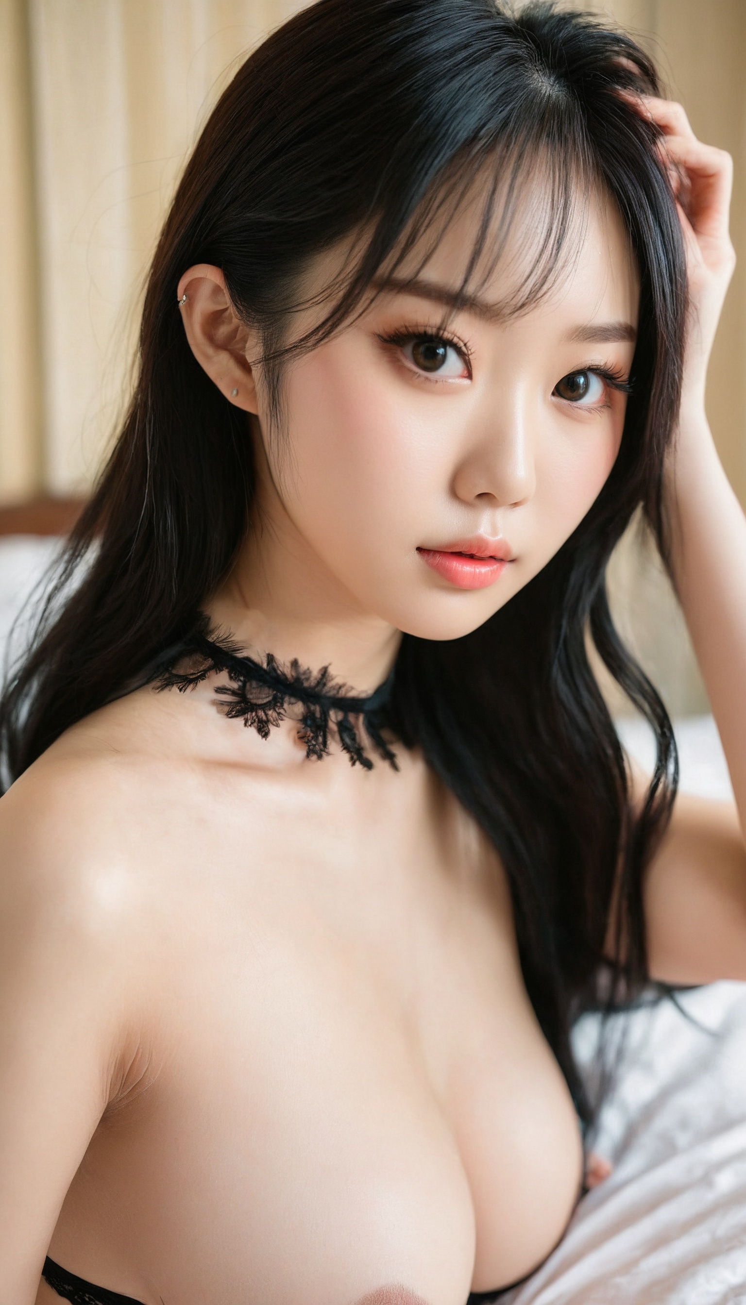 {"3": {"inputs": {"seed": 945273015813121, "steps": 32, "cfg": 5.63, "sampler_name": "dpmpp_2m", "scheduler": "karras", "denoise": 1.0, "model": ["27", 0], "positive": ["6", 0], "negative": ["7", 0], "latent_image": ["5", 0]}, "class_type": "KSampler"}, "4": {"inputs": {"ckpt_name": "juggernautxl.safetensors"}, "class_type": "CheckpointLoaderSimple"}, "5": {"inputs": {"width": 768, "height": 1344, "batch_size": 1}, "class_type": "EmptyLatentImage"}, "6": {"inputs": {"text": "25 year old girl, (chinese:0.97), (japanese:1.13), (idol:1.02), (double eyelids:1.01), (eyelashes:1.12), (sexy lips:1.01), (beautiful eyes:1.03), (seductive facial expression:0.99), (slim:1.01), (seductive pose:1.04), (cute:1.06), (pale skin:1.01), (blush:1.03), (detailed face:1.09), (temptress:1.04), (in a seductive pose:0.98), (large perky breasts:0.99), (cleavage:0.98), (thigh gap:1.14), wearing (lingerie and choker:0.97) on bed, (detailed skin:1.05), (portra:1.07), (film:1.06), (natural looking skin:1.09), (textured skin:1.05), (skin fuzz:1.05), (RAW:1.07), (soft lighting:1.00), (candid cinema:1.05)", "clip": ["27", 1]}, "class_type": "CLIPTextEncode"}, "7": {"inputs": {"text": "(twisted:1.10), (watermark:1.07), (open mouth:1.09), (worst quality:1.07), (low resolution:1.05), (bad hands:1.06), (distorted:1.05)", "clip": ["27", 1]}, "class_type": "CLIPTextEncode"}, "8": {"inputs": {"samples": ["3", 0], "vae": ["4", 2]}, "class_type": "VAEDecode"}, "25": {"inputs": {"lora_name": "nudify_xl.safetensors", "strength_model": 0.1, "strength_clip": 0.28, "model": ["4", 0], "clip": ["4", 1]}, "class_type": "LoraLoader"}, "26": {"inputs": {"lora_name": "shirtlift_SDXL_v2.safetensors", "strength_model": 0.02, "strength_clip": 0.05, "model": ["25", 0], "clip": ["25", 1]}, "class_type": "LoraLoader"}, "27": {"inputs": {"lora_name": "PerfectEyesXL.safetensors", "strength_model": 0.03, "strength_clip": 0.18, "model": ["26", 0], "clip": ["26", 1]}, "class_type": "LoraLoader"}, "30": {"inputs": {"model_name": "4x_NMKD-Superscale-SP_178000_G.pth"}, "class_type": "UpscaleModelLoader"}, "31": {"inputs": {"upscale_model": ["30", 0], "image": ["8", 0]}, "class_type": "ImageUpscaleWithModel"}, "32": {"inputs": {"upscale_method": "lanczos", "scale_by": 0.5, "image": ["31", 0]}, "class_type": "ImageScaleBy"}, "33": {"inputs": {"pixels": ["32", 0], "vae": ["4", 2]}, "class_type": "VAEEncode"}, "34": {"inputs": {"seed": 945273015813121, "steps": 32, "cfg": 5.63, "sampler_name": "dpmpp_2m", "scheduler": "karras", "denoise": 0.3, "model": ["27", 0], "positive": ["6", 0], "negative": ["7", 0], "latent_image": ["33", 0]}, "class_type": "KSampler"}, "36": {"inputs": {"samples": ["34", 0], "vae": ["4", 2]}, "class_type": "VAEDecode"}, "39": {"inputs": {"filename_prefix": "comfyapi-1713398652667", "images": ["36", 0]}, "class_type": "SaveImage"}}