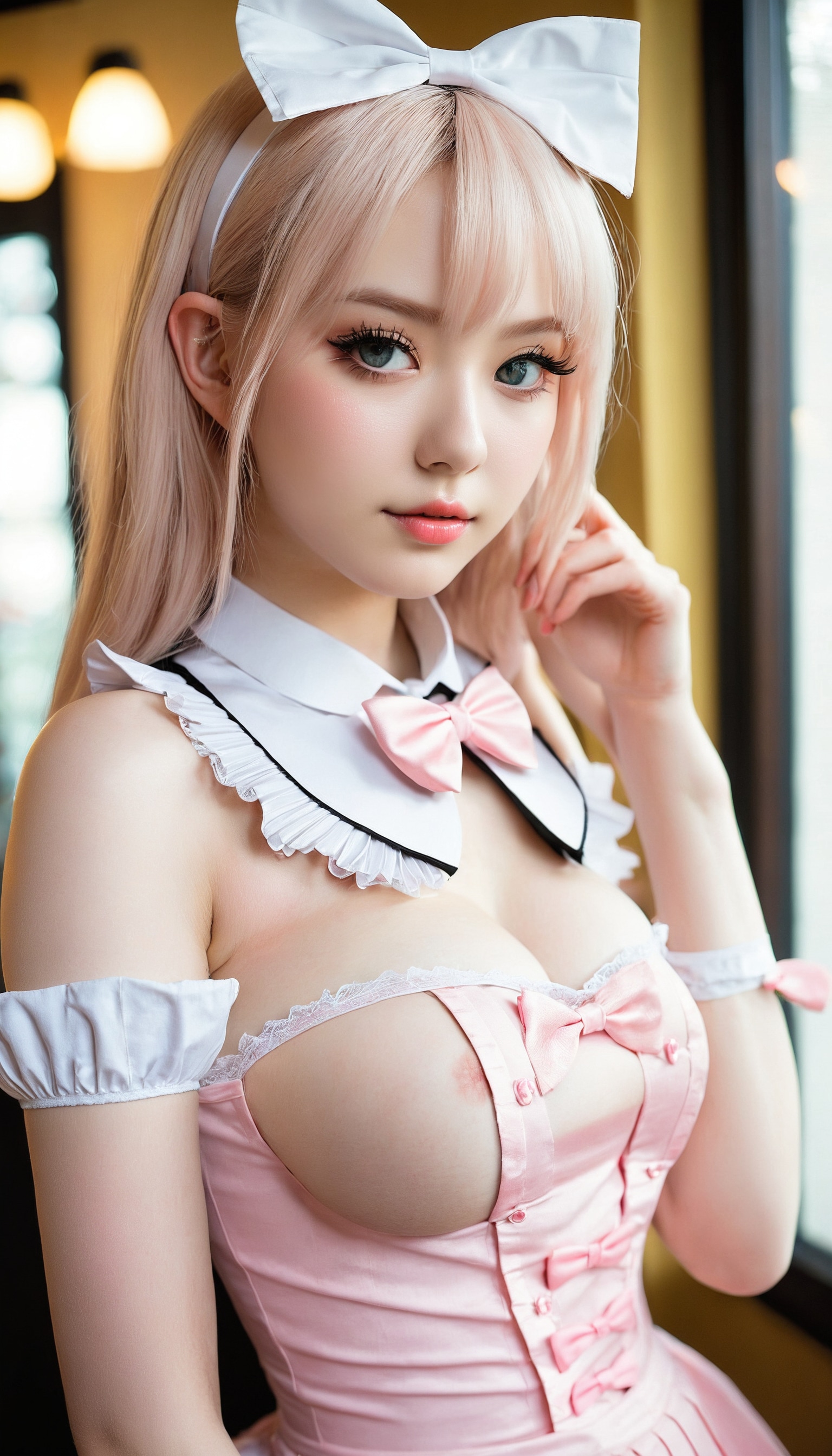 {"3": {"inputs": {"seed": 276328021961071, "steps": 64, "cfg": 7.87, "sampler_name": "dpmpp_2m", "scheduler": "karras", "denoise": 1.0, "model": ["27", 0], "positive": ["6", 0], "negative": ["7", 0], "latent_image": ["5", 0]}, "class_type": "KSampler"}, "4": {"inputs": {"ckpt_name": "juggernautxl.safetensors"}, "class_type": "CheckpointLoaderSimple"}, "5": {"inputs": {"width": 768, "height": 1344, "batch_size": 1}, "class_type": "EmptyLatentImage"}, "6": {"inputs": {"text": "18 year old girl, (sexy lips:1.00), (seductive pose:1.01), (slim:1.03), (cute:0.99), (seductive facial expression:0.99), (blush:1.14), (double eyelids:1.01), (temptress:0.97), (eyelashes:1.12), (beautiful eyes:1.13), (detailed face:0.99), (idol:1.12), (pale skin:1.13), (in a seductive pose:1.08), (large perky breasts:1.05), (cleavage:1.11), (thigh gap:1.12), in a (skimpy maid costume:0.97) working at a maid cafe, choker, bowtie, headband, pleated skirt, (portra:1.06), (textured skin:1.01), (RAW:1.03), (natural looking skin:1.01), (detailed skin:1.07), (skin fuzz:1.09), (candid cinema:1.00), (soft lighting:1.04), (film:1.01)", "clip": ["27", 1]}, "class_type": "CLIPTextEncode"}, "7": {"inputs": {"text": "(watermark:1.14), (distorted:1.07), (twisted:1.11), (open mouth:1.10), (worst quality:1.05), (bad hands:1.08), (low resolution:1.10)", "clip": ["27", 1]}, "class_type": "CLIPTextEncode"}, "8": {"inputs": {"samples": ["3", 0], "vae": ["4", 2]}, "class_type": "VAEDecode"}, "25": {"inputs": {"lora_name": "nudify_xl.safetensors", "strength_model": 0.0, "strength_clip": 0.04, "model": ["4", 0], "clip": ["4", 1]}, "class_type": "LoraLoader"}, "26": {"inputs": {"lora_name": "shirtlift_SDXL_v2.safetensors", "strength_model": 0.12, "strength_clip": 0.12, "model": ["25", 0], "clip": ["25", 1]}, "class_type": "LoraLoader"}, "27": {"inputs": {"lora_name": "PerfectEyesXL.safetensors", "strength_model": 0.07, "strength_clip": 0.12, "model": ["26", 0], "clip": ["26", 1]}, "class_type": "LoraLoader"}, "30": {"inputs": {"model_name": "4x_NMKD-Superscale-SP_178000_G.pth"}, "class_type": "UpscaleModelLoader"}, "31": {"inputs": {"upscale_model": ["30", 0], "image": ["8", 0]}, "class_type": "ImageUpscaleWithModel"}, "32": {"inputs": {"upscale_method": "lanczos", "scale_by": 0.5, "image": ["31", 0]}, "class_type": "ImageScaleBy"}, "33": {"inputs": {"pixels": ["32", 0], "vae": ["4", 2]}, "class_type": "VAEEncode"}, "34": {"inputs": {"seed": 276328021961071, "steps": 64, "cfg": 7.87, "sampler_name": "dpmpp_2m", "scheduler": "karras", "denoise": 0.3, "model": ["27", 0], "positive": ["6", 0], "negative": ["7", 0], "latent_image": ["33", 0]}, "class_type": "KSampler"}, "36": {"inputs": {"samples": ["34", 0], "vae": ["4", 2]}, "class_type": "VAEDecode"}, "39": {"inputs": {"filename_prefix": "comfyapi-1733991691248", "images": ["36", 0]}, "class_type": "SaveImage"}}