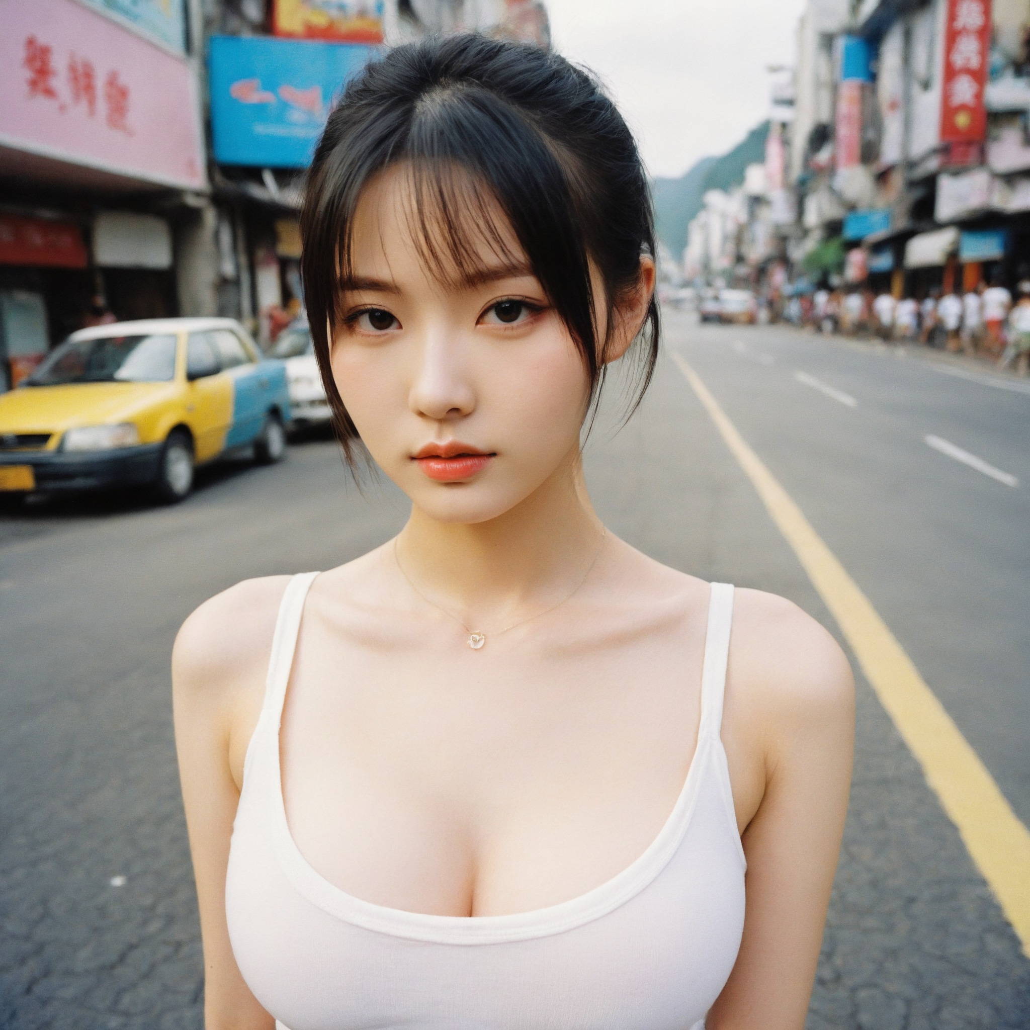 {"3": {"inputs": {"seed": 184665592167041, "steps": 32, "cfg": 5.38, "sampler_name": "dpmpp_2m", "scheduler": "karras", "denoise": 1.0, "model": ["27", 0], "positive": ["6", 0], "negative": ["7", 0], "latent_image": ["5", 0]}, "class_type": "KSampler"}, "4": {"inputs": {"ckpt_name": "helloworldxl.safetensors"}, "class_type": "CheckpointLoaderSimple"}, "5": {"inputs": {"width": 1024, "height": 1024, "batch_size": 1}, "class_type": "EmptyLatentImage"}, "6": {"inputs": {"text": "18 year old girl, (taiwanese:1.03), (ukrainian:0.96), (temptress:1.14), (detailed face:0.99), (beautiful eyes:1.08), (sexy lips:0.95), (seductive pose:1.05), (eyelashes:0.96), (blush:1.12), (cute:1.09), (seductive facial expression:1.04), (idol:0.97), (pale skin:0.97), (double eyelids:0.98), (slim:1.01), (in a seductive pose:1.10), (large perky breasts:1.02), (cleavage:1.10), (thigh gap:1.09), (white tanktop:1.11), busy street, (RAW:1.05), (film:1.09), (portra:1.06), (skin fuzz:1.04), (soft lighting:1.09), (textured skin:1.03), (natural looking skin:1.00), (detailed skin:1.06), (candid cinema:1.02)", "clip": ["27", 1]}, "class_type": "CLIPTextEncode"}, "7": {"inputs": {"text": "(open mouth:1.11), (bad hands:1.08), (worst quality:1.11), (low resolution:1.08), (watermark:1.11), (distorted:1.05), (twisted:1.08)", "clip": ["27", 1]}, "class_type": "CLIPTextEncode"}, "8": {"inputs": {"samples": ["3", 0], "vae": ["4", 2]}, "class_type": "VAEDecode"}, "25": {"inputs": {"lora_name": "nudify_xl.safetensors", "strength_model": 0.07, "strength_clip": 0.24, "model": ["4", 0], "clip": ["4", 1]}, "class_type": "LoraLoader"}, "26": {"inputs": {"lora_name": "shirtlift_SDXL_v2.safetensors", "strength_model": 0.0, "strength_clip": 0.07, "model": ["25", 0], "clip": ["25", 1]}, "class_type": "LoraLoader"}, "27": {"inputs": {"lora_name": "PerfectEyesXL.safetensors", "strength_model": 0.12, "strength_clip": 0.03, "model": ["26", 0], "clip": ["26", 1]}, "class_type": "LoraLoader"}, "30": {"inputs": {"model_name": "4x_NMKD-Superscale-SP_178000_G.pth"}, "class_type": "UpscaleModelLoader"}, "31": {"inputs": {"upscale_model": ["30", 0], "image": ["8", 0]}, "class_type": "ImageUpscaleWithModel"}, "32": {"inputs": {"upscale_method": "lanczos", "scale_by": 0.5, "image": ["31", 0]}, "class_type": "ImageScaleBy"}, "33": {"inputs": {"pixels": ["32", 0], "vae": ["4", 2]}, "class_type": "VAEEncode"}, "34": {"inputs": {"seed": 184665592167041, "steps": 32, "cfg": 5.38, "sampler_name": "dpmpp_2m", "scheduler": "karras", "denoise": 0.3, "model": ["27", 0], "positive": ["6", 0], "negative": ["7", 0], "latent_image": ["33", 0]}, "class_type": "KSampler"}, "36": {"inputs": {"samples": ["34", 0], "vae": ["4", 2]}, "class_type": "VAEDecode"}, "39": {"inputs": {"filename_prefix": "comfyapi-1714045112160", "images": ["36", 0]}, "class_type": "SaveImage"}}