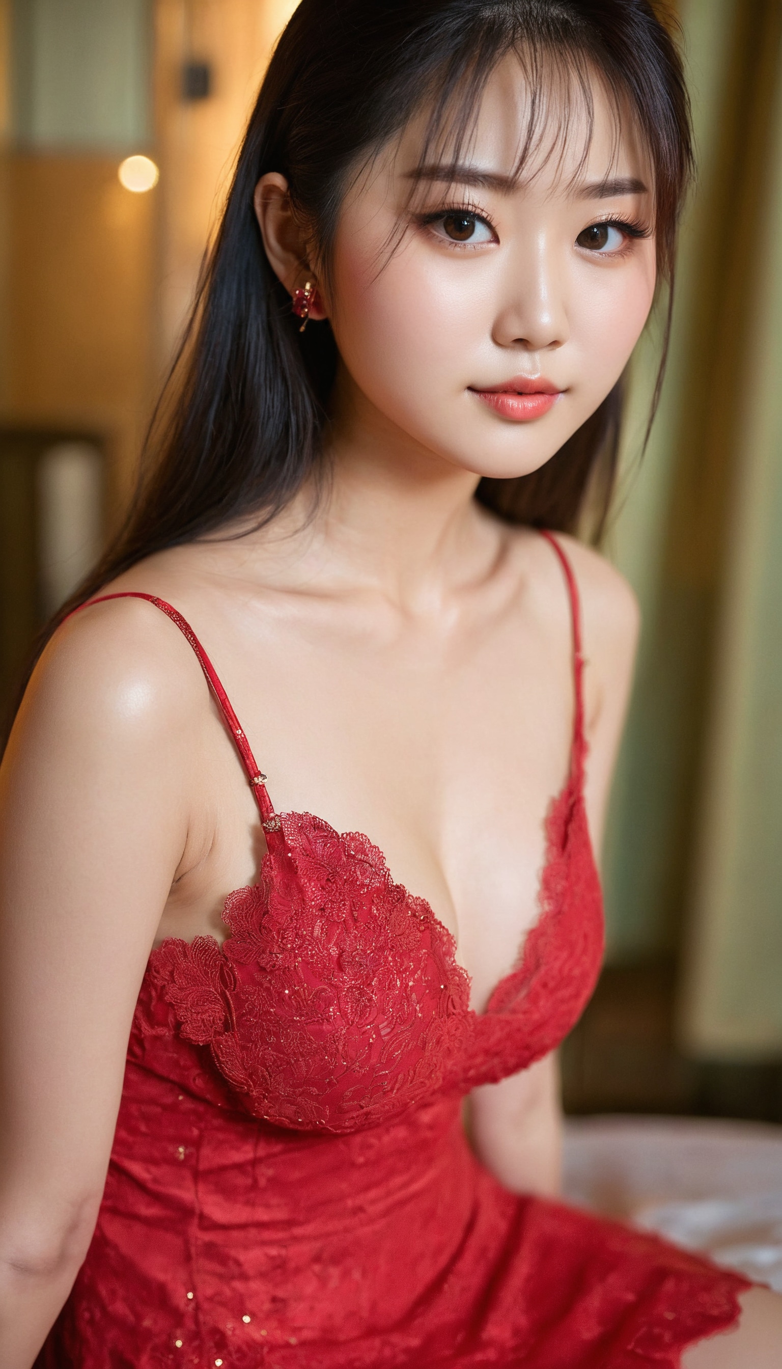 {"3": {"inputs": {"seed": 368934078246540, "steps": 32, "cfg": 5.34, "sampler_name": "dpmpp_2m", "scheduler": "karras", "denoise": 1.0, "model": ["27", 0], "positive": ["6", 0], "negative": ["7", 0], "latent_image": ["5", 0]}, "class_type": "KSampler"}, "4": {"inputs": {"ckpt_name": "juggernautxl.safetensors"}, "class_type": "CheckpointLoaderSimple"}, "5": {"inputs": {"width": 768, "height": 1344, "batch_size": 1}, "class_type": "EmptyLatentImage"}, "6": {"inputs": {"text": "21 year old girl, (japanese:1.04), (chinese:0.98), (taiwanese:0.98), (irish:1.02), (slim:1.04), (detailed face:1.08), (seductive facial expression:0.97), (double eyelids:0.99), (cute:0.98), (temptress:1.11), (idol:1.13), (beautiful eyes:1.13), (seductive pose:0.99), (blush:1.04), (eyelashes:0.97), (sexy lips:0.96), (in a seductive pose:0.98), (large perky breasts:1.12), (cleavage:1.06), (thigh gap:1.02), (wearing a low-cut red dress:0.97) at a ballroom, (textured skin:1.06), (natural looking skin:1.08), (skin fuzz:1.05), (portra:1.09), (candid cinema:1.07), (soft lighting:1.02), (film:1.04), (RAW:1.03), (detailed skin:1.04)", "clip": ["27", 1]}, "class_type": "CLIPTextEncode"}, "7": {"inputs": {"text": "(bad hands:1.11), (open mouth:1.11), (twisted:1.10), (watermark:1.09), (low resolution:1.14), (worst quality:1.10), (distorted:1.09)", "clip": ["27", 1]}, "class_type": "CLIPTextEncode"}, "8": {"inputs": {"samples": ["3", 0], "vae": ["4", 2]}, "class_type": "VAEDecode"}, "25": {"inputs": {"lora_name": "nudify_xl.safetensors", "strength_model": 0.14, "strength_clip": 0.34, "model": ["4", 0], "clip": ["4", 1]}, "class_type": "LoraLoader"}, "26": {"inputs": {"lora_name": "shirtlift_SDXL_v2.safetensors", "strength_model": 0.0, "strength_clip": 0.19, "model": ["25", 0], "clip": ["25", 1]}, "class_type": "LoraLoader"}, "27": {"inputs": {"lora_name": "PerfectEyesXL.safetensors", "strength_model": 0.01, "strength_clip": 0.1, "model": ["26", 0], "clip": ["26", 1]}, "class_type": "LoraLoader"}, "30": {"inputs": {"model_name": "4x_NMKD-Superscale-SP_178000_G.pth"}, "class_type": "UpscaleModelLoader"}, "31": {"inputs": {"upscale_model": ["30", 0], "image": ["8", 0]}, "class_type": "ImageUpscaleWithModel"}, "32": {"inputs": {"upscale_method": "lanczos", "scale_by": 0.5, "image": ["31", 0]}, "class_type": "ImageScaleBy"}, "33": {"inputs": {"pixels": ["32", 0], "vae": ["4", 2]}, "class_type": "VAEEncode"}, "34": {"inputs": {"seed": 368934078246540, "steps": 32, "cfg": 5.34, "sampler_name": "dpmpp_2m", "scheduler": "karras", "denoise": 0.3, "model": ["27", 0], "positive": ["6", 0], "negative": ["7", 0], "latent_image": ["33", 0]}, "class_type": "KSampler"}, "36": {"inputs": {"samples": ["34", 0], "vae": ["4", 2]}, "class_type": "VAEDecode"}, "39": {"inputs": {"filename_prefix": "comfyapi-1717315265435", "images": ["36", 0]}, "class_type": "SaveImage"}}