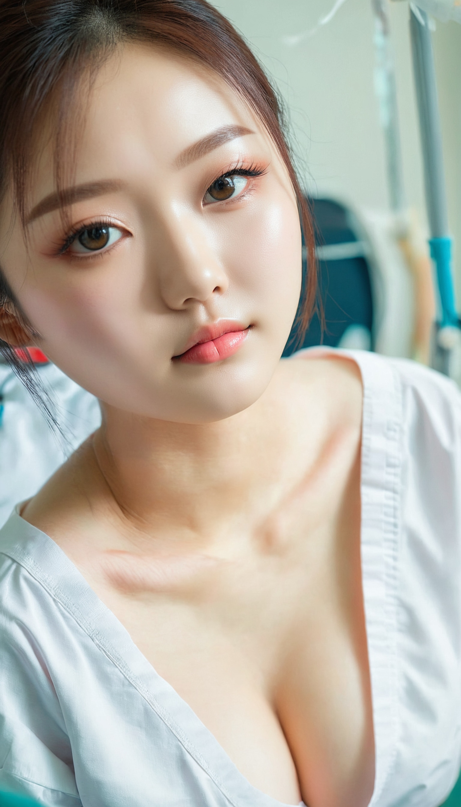{"3": {"inputs": {"seed": 342020865915317, "steps": 64, "cfg": 6.66, "sampler_name": "dpmpp_2m", "scheduler": "karras", "denoise": 1.0, "model": ["27", 0], "positive": ["6", 0], "negative": ["7", 0], "latent_image": ["5", 0]}, "class_type": "KSampler"}, "4": {"inputs": {"ckpt_name": "juggernautxl.safetensors"}, "class_type": "CheckpointLoaderSimple"}, "5": {"inputs": {"width": 768, "height": 1344, "batch_size": 1}, "class_type": "EmptyLatentImage"}, "6": {"inputs": {"text": "23 year old girl, (chinese:1.06), (russian:1.02), (korean:1.03), (beautiful eyes:1.13), (cute:1.12), (idol:1.08), (double eyelids:1.12), (slim:0.95), (seductive facial expression:1.06), (temptress:0.95), (seductive pose:0.95), (blush:1.12), (detailed face:1.13), (pale skin:0.96), (eyelashes:1.08), (sexy lips:1.05), (in a seductive pose:1.00), (large perky breasts:1.03), (cleavage:1.08), (thigh gap:1.04), (nurse in uniform:1.04) working in a hospital ward, (film:1.08), (candid cinema:1.06), (detailed skin:1.07), (RAW:1.07), (portra:1.04), (skin fuzz:1.04), (natural looking skin:1.06), (soft lighting:1.07), (textured skin:1.04)", "clip": ["27", 1]}, "class_type": "CLIPTextEncode"}, "7": {"inputs": {"text": "(watermark:1.06), (bad hands:1.08), (twisted:1.06), (low resolution:1.10), (worst quality:1.09), (open mouth:1.06), (distorted:1.09)", "clip": ["27", 1]}, "class_type": "CLIPTextEncode"}, "8": {"inputs": {"samples": ["3", 0], "vae": ["4", 2]}, "class_type": "VAEDecode"}, "25": {"inputs": {"lora_name": "nudify_xl.safetensors", "strength_model": 0.23, "strength_clip": 0.3, "model": ["4", 0], "clip": ["4", 1]}, "class_type": "LoraLoader"}, "26": {"inputs": {"lora_name": "shirtlift_SDXL_v2.safetensors", "strength_model": 0.02, "strength_clip": 0.18, "model": ["25", 0], "clip": ["25", 1]}, "class_type": "LoraLoader"}, "27": {"inputs": {"lora_name": "PerfectEyesXL.safetensors", "strength_model": 0.18, "strength_clip": 0.15, "model": ["26", 0], "clip": ["26", 1]}, "class_type": "LoraLoader"}, "30": {"inputs": {"model_name": "4x_NMKD-Superscale-SP_178000_G.pth"}, "class_type": "UpscaleModelLoader"}, "31": {"inputs": {"upscale_model": ["30", 0], "image": ["8", 0]}, "class_type": "ImageUpscaleWithModel"}, "32": {"inputs": {"upscale_method": "lanczos", "scale_by": 0.5, "image": ["31", 0]}, "class_type": "ImageScaleBy"}, "33": {"inputs": {"pixels": ["32", 0], "vae": ["4", 2]}, "class_type": "VAEEncode"}, "34": {"inputs": {"seed": 342020865915317, "steps": 64, "cfg": 6.66, "sampler_name": "dpmpp_2m", "scheduler": "karras", "denoise": 0.3, "model": ["27", 0], "positive": ["6", 0], "negative": ["7", 0], "latent_image": ["33", 0]}, "class_type": "KSampler"}, "36": {"inputs": {"samples": ["34", 0], "vae": ["4", 2]}, "class_type": "VAEDecode"}, "39": {"inputs": {"filename_prefix": "comfyapi-1723882683212", "images": ["36", 0]}, "class_type": "SaveImage"}}
