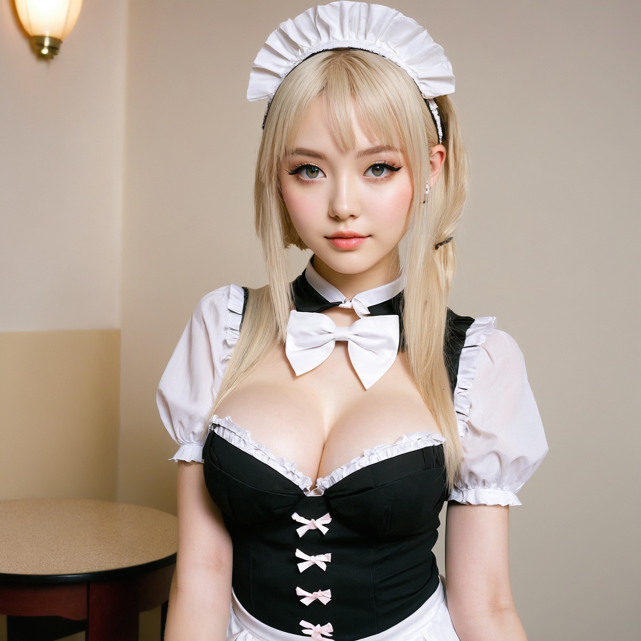 {"3": {"inputs": {"seed": 945080898087998, "steps": 32, "cfg": 7.7, "sampler_name": "dpmpp_2m", "scheduler": "karras", "denoise": 1.0, "model": ["27", 0], "positive": ["6", 0], "negative": ["7", 0], "latent_image": ["5", 0]}, "class_type": "KSampler"}, "4": {"inputs": {"ckpt_name": "juggernautxl.safetensors"}, "class_type": "CheckpointLoaderSimple"}, "5": {"inputs": {"width": 1024, "height": 1024, "batch_size": 1}, "class_type": "EmptyLatentImage"}, "6": {"inputs": {"text": "20 year old girl, (cute:1.11), (temptress:1.02), (pale skin:0.96), (sexy lips:1.06), (slim:1.12), (double eyelids:1.04), (beautiful eyes:1.13), (idol:1.14), (blush:0.97), (seductive pose:0.98), (detailed face:1.10), (eyelashes:0.98), (seductive facial expression:1.04), (in a seductive pose:1.00), (large perky breasts:1.04), (cleavage:0.95), (thigh gap:1.01), in a (skimpy maid costume:1.11) working at a maid cafe, choker, bowtie, headband, pleated skirt, (candid cinema:1.04), (skin fuzz:1.00), (soft lighting:1.05), (film:1.09), (natural looking skin:1.09), (detailed skin:1.09), (RAW:1.04), (textured skin:1.03), (portra:1.02)", "clip": ["27", 1]}, "class_type": "CLIPTextEncode"}, "7": {"inputs": {"text": "(low resolution:1.07), (worst quality:1.11), (distorted:1.08), (twisted:1.06), (open mouth:1.13), (watermark:1.05), (bad hands:1.12)", "clip": ["27", 1]}, "class_type": "CLIPTextEncode"}, "8": {"inputs": {"samples": ["3", 0], "vae": ["4", 2]}, "class_type": "VAEDecode"}, "25": {"inputs": {"lora_name": "nudify_xl.safetensors", "strength_model": 0.28, "strength_clip": 0.0, "model": ["4", 0], "clip": ["4", 1]}, "class_type": "LoraLoader"}, "26": {"inputs": {"lora_name": "shirtlift_SDXL_v2.safetensors", "strength_model": 0.11, "strength_clip": 0.16, "model": ["25", 0], "clip": ["25", 1]}, "class_type": "LoraLoader"}, "27": {"inputs": {"lora_name": "PerfectEyesXL.safetensors", "strength_model": 0.14, "strength_clip": 0.19, "model": ["26", 0], "clip": ["26", 1]}, "class_type": "LoraLoader"}, "30": {"inputs": {"model_name": "4x_NMKD-Superscale-SP_178000_G.pth"}, "class_type": "UpscaleModelLoader"}, "31": {"inputs": {"upscale_model": ["30", 0], "image": ["8", 0]}, "class_type": "ImageUpscaleWithModel"}, "32": {"inputs": {"upscale_method": "lanczos", "scale_by": 0.5, "image": ["31", 0]}, "class_type": "ImageScaleBy"}, "33": {"inputs": {"pixels": ["32", 0], "vae": ["4", 2]}, "class_type": "VAEEncode"}, "34": {"inputs": {"seed": 945080898087998, "steps": 32, "cfg": 7.7, "sampler_name": "dpmpp_2m", "scheduler": "karras", "denoise": 0.3, "model": ["27", 0], "positive": ["6", 0], "negative": ["7", 0], "latent_image": ["33", 0]}, "class_type": "KSampler"}, "36": {"inputs": {"samples": ["34", 0], "vae": ["4", 2]}, "class_type": "VAEDecode"}, "39": {"inputs": {"filename_prefix": "comfyapi-1735859907292", "images": ["36", 0]}, "class_type": "SaveImage"}}