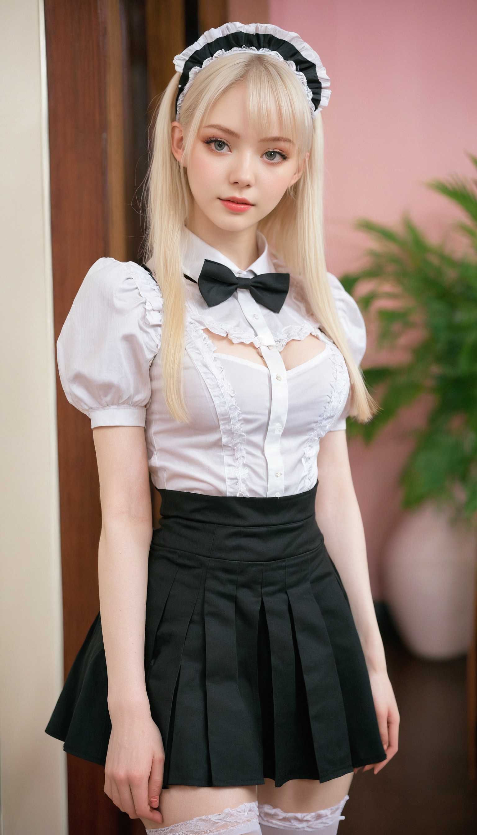 {"3": {"inputs": {"seed": 163151020791516, "steps": 32, "cfg": 7.04, "sampler_name": "dpmpp_2m", "scheduler": "karras", "denoise": 1.0, "model": ["27", 0], "positive": ["6", 0], "negative": ["7", 0], "latent_image": ["5", 0]}, "class_type": "KSampler"}, "4": {"inputs": {"ckpt_name": "juggernautxl.safetensors"}, "class_type": "CheckpointLoaderSimple"}, "5": {"inputs": {"width": 768, "height": 1344, "batch_size": 1}, "class_type": "EmptyLatentImage"}, "6": {"inputs": {"text": "20 year old girl, (russian:1.00), (temptress:1.14), (pale skin:1.07), (detailed face:1.14), (double eyelids:1.11), (sexy lips:1.00), (beautiful eyes:1.01), (seductive pose:1.08), (cute:1.05), (slim:1.00), (idol:1.05), (seductive facial expression:0.98), (blush:1.11), (perky ass:1.02), (exposed ass:1.11), (looking back:1.00), (sexy ass:1.00), (thigh gap:0.97), in a (skimpy maid costume:1.14) working at a maid cafe, choker, bowtie, headband, pleated skirt, (RAW:1.05), (candid cinema:1.07), (detailed skin:1.03), (skin fuzz:1.05), (portra:1.09), (natural looking skin:1.04), (textured skin:1.02), (soft lighting:1.05), (film:1.03)", "clip": ["27", 1]}, "class_type": "CLIPTextEncode"}, "7": {"inputs": {"text": "(watermark:1.13), (worst quality:1.11), (bad hands:1.06), (low resolution:1.13), (twisted:1.14), (open mouth:1.10), (distorted:1.10)", "clip": ["27", 1]}, "class_type": "CLIPTextEncode"}, "8": {"inputs": {"samples": ["3", 0], "vae": ["4", 2]}, "class_type": "VAEDecode"}, "25": {"inputs": {"lora_name": "nudify_xl.safetensors", "strength_model": 0.11, "strength_clip": 0.16, "model": ["4", 0], "clip": ["4", 1]}, "class_type": "LoraLoader"}, "26": {"inputs": {"lora_name": "shirtlift_SDXL_v2.safetensors", "strength_model": 0.14, "strength_clip": 0.06, "model": ["25", 0], "clip": ["25", 1]}, "class_type": "LoraLoader"}, "27": {"inputs": {"lora_name": "PerfectEyesXL.safetensors", "strength_model": 0.08, "strength_clip": 0.15, "model": ["26", 0], "clip": ["26", 1]}, "class_type": "LoraLoader"}, "30": {"inputs": {"model_name": "4x_NMKD-Superscale-SP_178000_G.pth"}, "class_type": "UpscaleModelLoader"}, "31": {"inputs": {"upscale_model": ["30", 0], "image": ["8", 0]}, "class_type": "ImageUpscaleWithModel"}, "32": {"inputs": {"upscale_method": "lanczos", "scale_by": 0.5, "image": ["31", 0]}, "class_type": "ImageScaleBy"}, "33": {"inputs": {"pixels": ["32", 0], "vae": ["4", 2]}, "class_type": "VAEEncode"}, "34": {"inputs": {"seed": 163151020791516, "steps": 32, "cfg": 7.04, "sampler_name": "dpmpp_2m", "scheduler": "karras", "denoise": 0.3, "model": ["27", 0], "positive": ["6", 0], "negative": ["7", 0], "latent_image": ["33", 0]}, "class_type": "KSampler"}, "36": {"inputs": {"samples": ["34", 0], "vae": ["4", 2]}, "class_type": "VAEDecode"}, "39": {"inputs": {"filename_prefix": "comfyapi-1735221801823", "images": ["36", 0]}, "class_type": "SaveImage"}}