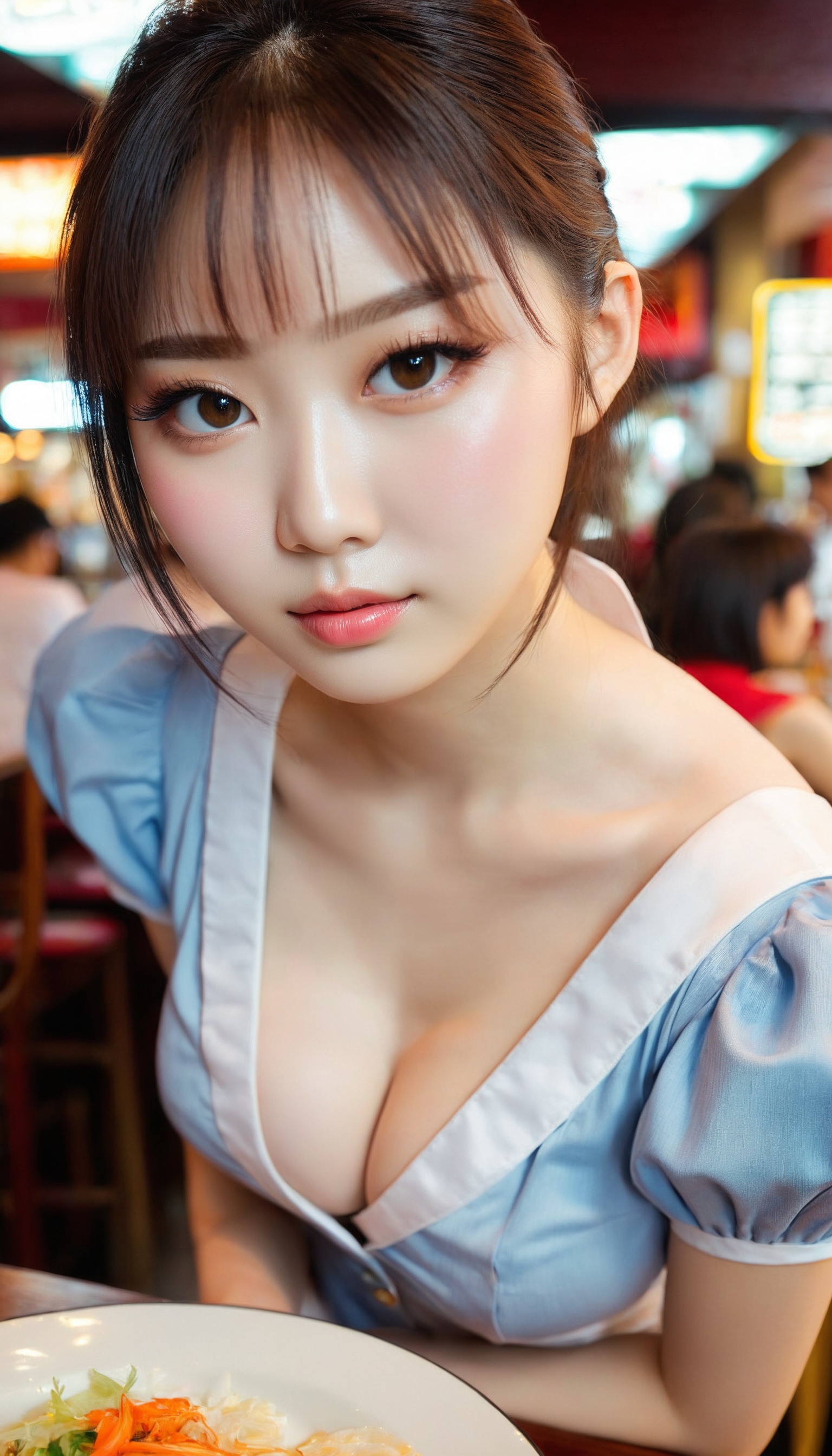 {"3": {"inputs": {"seed": 265317532399793, "steps": 32, "cfg": 7.02, "sampler_name": "dpmpp_2m", "scheduler": "karras", "denoise": 1.0, "model": ["27", 0], "positive": ["6", 0], "negative": ["7", 0], "latent_image": ["5", 0]}, "class_type": "KSampler"}, "4": {"inputs": {"ckpt_name": "juggernautxl.safetensors"}, "class_type": "CheckpointLoaderSimple"}, "5": {"inputs": {"width": 768, "height": 1344, "batch_size": 1}, "class_type": "EmptyLatentImage"}, "6": {"inputs": {"text": "20 year old girl, (chinese:1.05), (temptress:0.98), (eyelashes:1.05), (double eyelids:1.10), (pale skin:1.05), (detailed face:1.07), (blush:0.96), (cute:0.97), (seductive pose:1.05), (slim:1.03), (beautiful eyes:1.11), (sexy lips:0.98), (idol:1.00), (in a seductive pose:1.13), (large perky breasts:1.11), (cleavage:1.00), (thigh gap:1.11), (a waitress in uniform:1.04) working at a restaurant, (portra:1.05), (detailed skin:1.07), (skin fuzz:1.01), (candid cinema:1.01), (film:1.08), (natural looking skin:1.07), (RAW:1.02), (textured skin:1.00), (soft lighting:1.07)", "clip": ["27", 1]}, "class_type": "CLIPTextEncode"}, "7": {"inputs": {"text": "(twisted:1.13), (watermark:1.09), (low resolution:1.07), (open mouth:1.12), (worst quality:1.09), (distorted:1.08)", "clip": ["27", 1]}, "class_type": "CLIPTextEncode"}, "8": {"inputs": {"samples": ["3", 0], "vae": ["4", 2]}, "class_type": "VAEDecode"}, "25": {"inputs": {"lora_name": "nudify_xl.safetensors", "strength_model": 0.3, "strength_clip": 0.21, "model": ["4", 0], "clip": ["4", 1]}, "class_type": "LoraLoader"}, "26": {"inputs": {"lora_name": "shirtlift_SDXL_v2.safetensors", "strength_model": 0.05, "strength_clip": 0.11, "model": ["25", 0], "clip": ["25", 1]}, "class_type": "LoraLoader"}, "27": {"inputs": {"lora_name": "PerfectEyesXL.safetensors", "strength_model": 0.14, "strength_clip": 0.01, "model": ["26", 0], "clip": ["26", 1]}, "class_type": "LoraLoader"}, "30": {"inputs": {"model_name": "4x_NMKD-Superscale-SP_178000_G.pth"}, "class_type": "UpscaleModelLoader"}, "31": {"inputs": {"upscale_model": ["30", 0], "image": ["8", 0]}, "class_type": "ImageUpscaleWithModel"}, "32": {"inputs": {"upscale_method": "lanczos", "scale_by": 0.5, "image": ["31", 0]}, "class_type": "ImageScaleBy"}, "33": {"inputs": {"pixels": ["32", 0], "vae": ["4", 2]}, "class_type": "VAEEncode"}, "34": {"inputs": {"seed": 265317532399793, "steps": 32, "cfg": 7.02, "sampler_name": "dpmpp_2m", "scheduler": "karras", "denoise": 0.3, "model": ["27", 0], "positive": ["6", 0], "negative": ["7", 0], "latent_image": ["33", 0]}, "class_type": "KSampler"}, "36": {"inputs": {"samples": ["34", 0], "vae": ["4", 2]}, "class_type": "VAEDecode"}, "39": {"inputs": {"filename_prefix": "comfyapi-1731953365227", "images": ["36", 0]}, "class_type": "SaveImage"}}