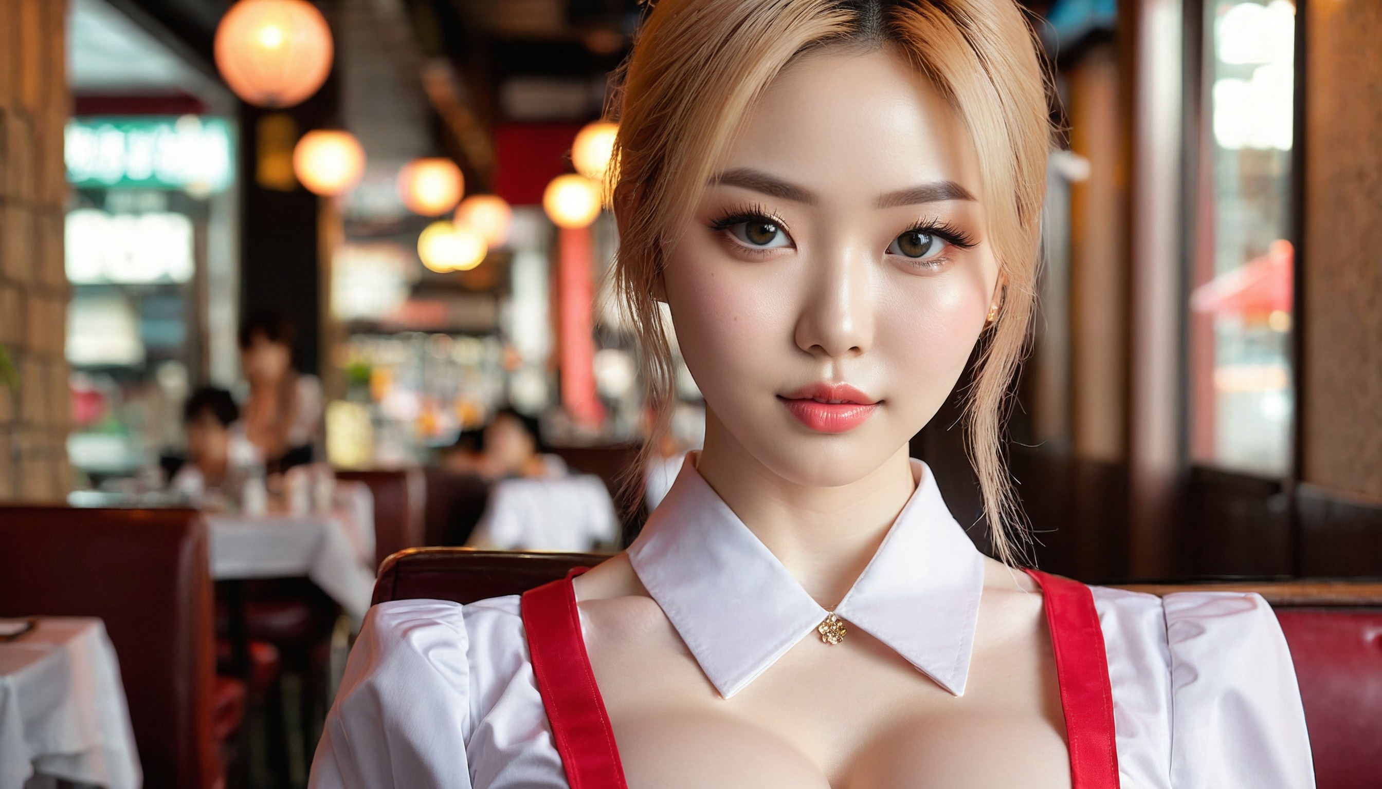 {"3": {"inputs": {"seed": 475728354411338, "steps": 64, "cfg": 7.97, "sampler_name": "dpmpp_2m", "scheduler": "karras", "denoise": 1.0, "model": ["27", 0], "positive": ["6", 0], "negative": ["7", 0], "latent_image": ["5", 0]}, "class_type": "KSampler"}, "4": {"inputs": {"ckpt_name": "juggernautxl.safetensors"}, "class_type": "CheckpointLoaderSimple"}, "5": {"inputs": {"width": 1344, "height": 768, "batch_size": 1}, "class_type": "EmptyLatentImage"}, "6": {"inputs": {"text": "25 year old girl, (korean:0.95), (irish:1.08), (russian:0.96), (cute:1.12), (idol:1.08), (pale skin:1.14), (temptress:0.98), (seductive pose:0.97), (seductive facial expression:1.08), (detailed face:1.00), (beautiful eyes:1.05), (eyelashes:1.00), (sexy lips:1.14), (double eyelids:1.03), (blush:1.14), (in a seductive pose:0.96), (large perky breasts:1.13), (cleavage:1.02), (thigh gap:1.13), (a waitress in uniform:1.09) working at a restaurant, (soft lighting:1.06), (film:1.01), (RAW:1.04), (portra:1.05), (detailed skin:1.07), (natural looking skin:1.07), (textured skin:1.02), (skin fuzz:1.00), (candid cinema:1.04)", "clip": ["27", 1]}, "class_type": "CLIPTextEncode"}, "7": {"inputs": {"text": "(distorted:1.08), (worst quality:1.07), (open mouth:1.05), (watermark:1.13), (low resolution:1.11), (bad hands:1.14), (twisted:1.12)", "clip": ["27", 1]}, "class_type": "CLIPTextEncode"}, "8": {"inputs": {"samples": ["3", 0], "vae": ["4", 2]}, "class_type": "VAEDecode"}, "25": {"inputs": {"lora_name": "nudify_xl.safetensors", "strength_model": 0.34, "strength_clip": 0.35, "model": ["4", 0], "clip": ["4", 1]}, "class_type": "LoraLoader"}, "26": {"inputs": {"lora_name": "shirtlift_SDXL_v2.safetensors", "strength_model": 0.01, "strength_clip": 0.01, "model": ["25", 0], "clip": ["25", 1]}, "class_type": "LoraLoader"}, "27": {"inputs": {"lora_name": "PerfectEyesXL.safetensors", "strength_model": 0.17, "strength_clip": 0.18, "model": ["26", 0], "clip": ["26", 1]}, "class_type": "LoraLoader"}, "30": {"inputs": {"model_name": "4x_NMKD-Superscale-SP_178000_G.pth"}, "class_type": "UpscaleModelLoader"}, "31": {"inputs": {"upscale_model": ["30", 0], "image": ["8", 0]}, "class_type": "ImageUpscaleWithModel"}, "32": {"inputs": {"upscale_method": "lanczos", "scale_by": 0.5, "image": ["31", 0]}, "class_type": "ImageScaleBy"}, "33": {"inputs": {"pixels": ["32", 0], "vae": ["4", 2]}, "class_type": "VAEEncode"}, "34": {"inputs": {"seed": 475728354411338, "steps": 64, "cfg": 7.97, "sampler_name": "dpmpp_2m", "scheduler": "karras", "denoise": 0.3, "model": ["27", 0], "positive": ["6", 0], "negative": ["7", 0], "latent_image": ["33", 0]}, "class_type": "KSampler"}, "36": {"inputs": {"samples": ["34", 0], "vae": ["4", 2]}, "class_type": "VAEDecode"}, "39": {"inputs": {"filename_prefix": "comfyapi-1732738931354", "images": ["36", 0]}, "class_type": "SaveImage"}}
