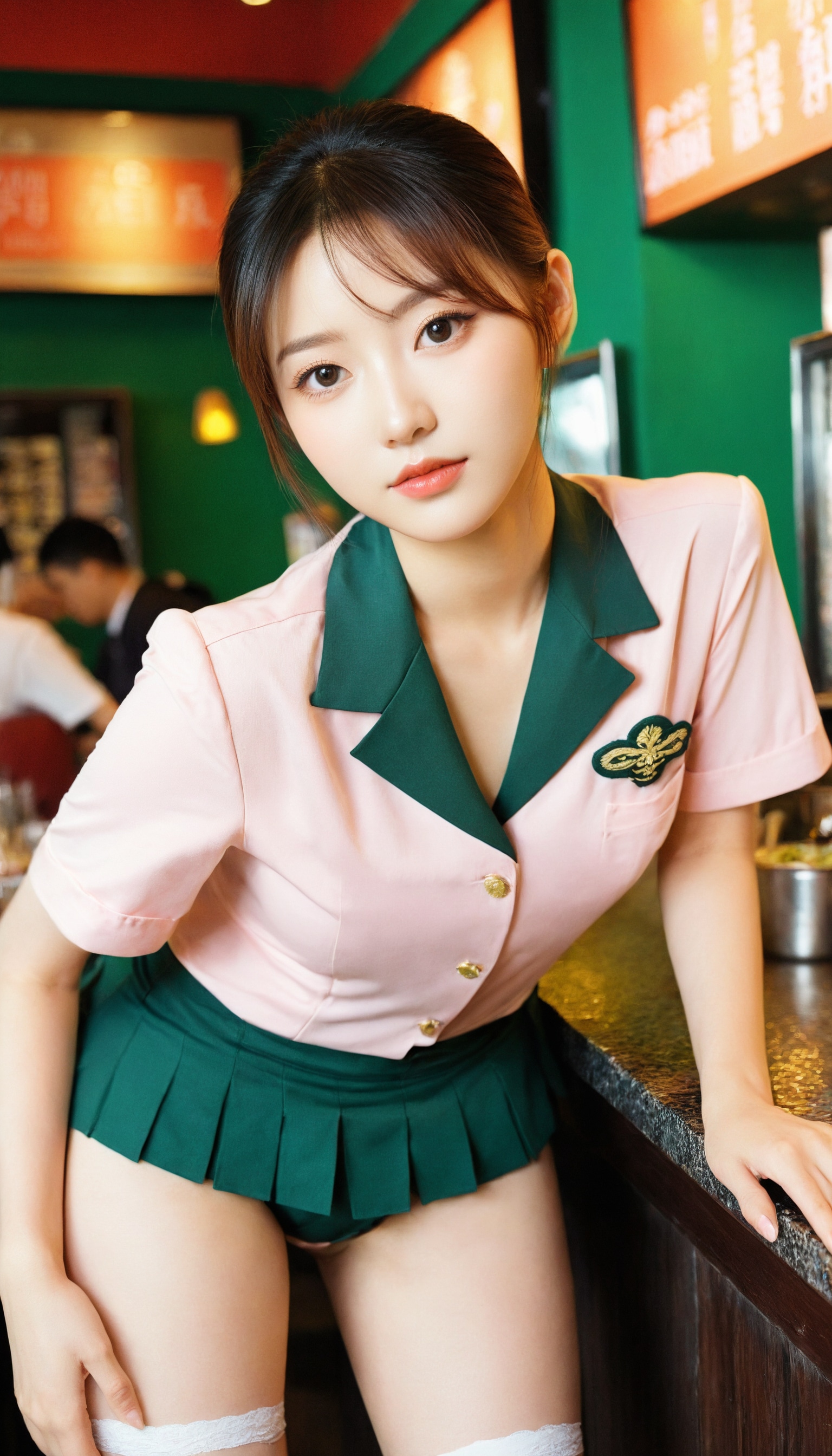 {"3": {"inputs": {"seed": 182965119668024, "steps": 64, "cfg": 6.48, "sampler_name": "dpmpp_2m", "scheduler": "karras", "denoise": 1.0, "model": ["27", 0], "positive": ["6", 0], "negative": ["7", 0], "latent_image": ["5", 0]}, "class_type": "KSampler"}, "4": {"inputs": {"ckpt_name": "leosamsHelloworldSDXL_helloworldSDXL32DPO.safetensors"}, "class_type": "CheckpointLoaderSimple"}, "5": {"inputs": {"width": 768, "height": 1344, "batch_size": 1}, "class_type": "EmptyLatentImage"}, "6": {"inputs": {"text": "22 year old girl, (taiwanese:1.14), (irish:1.11), (blush:1.14), (beautiful eyes:0.96), (double eyelids:1.11), (slim:1.10), (sexy lips:1.08), (seductive facial expression:0.96), (temptress:1.04), (detailed face:0.97), (idol:1.06), (eyelashes:1.06), (seductive pose:1.11), (cute:1.07), (pale skin:0.95), (perky ass:1.03), (exposed ass:1.11), (looking back:1.10), (sexy ass:1.08), (thigh gap:1.03), (a waitress in uniform:1.02) working at a restaurant, (RAW:1.05), (candid cinema:1.03), (soft lighting:1.09), (portra:1.01), (textured skin:1.06), (detailed skin:1.03), (skin fuzz:1.07), (natural looking skin:1.06), (film:1.06)", "clip": ["27", 1]}, "class_type": "CLIPTextEncode"}, "7": {"inputs": {"text": "(distorted:1.09), (watermark:1.09), (worst quality:1.09), (open mouth:1.13), (low resolution:1.07), (twisted:1.09), (bad hands:1.05)", "clip": ["27", 1]}, "class_type": "CLIPTextEncode"}, "8": {"inputs": {"samples": ["3", 0], "vae": ["4", 2]}, "class_type": "VAEDecode"}, "25": {"inputs": {"lora_name": "nudify_xl.safetensors", "strength_model": 0.39, "strength_clip": 0.29, "model": ["4", 0], "clip": ["4", 1]}, "class_type": "LoraLoader"}, "26": {"inputs": {"lora_name": "shirtlift_SDXL_v2.safetensors", "strength_model": 0.15, "strength_clip": 0.01, "model": ["25", 0], "clip": ["25", 1]}, "class_type": "LoraLoader"}, "27": {"inputs": {"lora_name": "PerfectEyesXL.safetensors", "strength_model": 0.13, "strength_clip": 0.06, "model": ["26", 0], "clip": ["26", 1]}, "class_type": "LoraLoader"}, "30": {"inputs": {"model_name": "4x_NMKD-Superscale-SP_178000_G.pth"}, "class_type": "UpscaleModelLoader"}, "31": {"inputs": {"upscale_model": ["30", 0], "image": ["8", 0]}, "class_type": "ImageUpscaleWithModel"}, "32": {"inputs": {"upscale_method": "lanczos", "scale_by": 0.5, "image": ["31", 0]}, "class_type": "ImageScaleBy"}, "33": {"inputs": {"pixels": ["32", 0], "vae": ["4", 2]}, "class_type": "VAEEncode"}, "34": {"inputs": {"seed": 182965119668024, "steps": 64, "cfg": 6.48, "sampler_name": "dpmpp_2m", "scheduler": "karras", "denoise": 0.3, "model": ["27", 0], "positive": ["6", 0], "negative": ["7", 0], "latent_image": ["33", 0]}, "class_type": "KSampler"}, "36": {"inputs": {"samples": ["34", 0], "vae": ["4", 2]}, "class_type": "VAEDecode"}, "39": {"inputs": {"filename_prefix": "comfyapi-1707989424483", "images": ["36", 0]}, "class_type": "SaveImage"}}
