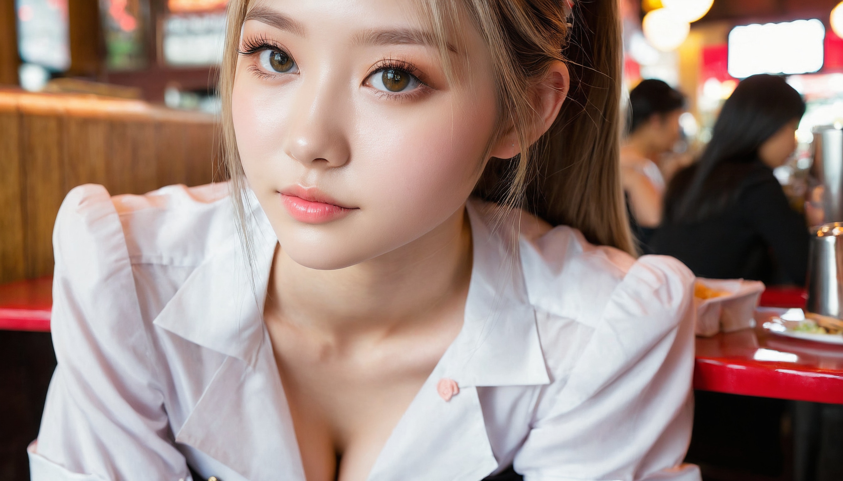 {"3": {"inputs": {"seed": 268998187488387, "steps": 64, "cfg": 7.03, "sampler_name": "dpmpp_2m", "scheduler": "karras", "denoise": 1.0, "model": ["27", 0], "positive": ["6", 0], "negative": ["7", 0], "latent_image": ["5", 0]}, "class_type": "KSampler"}, "4": {"inputs": {"ckpt_name": "juggernautxl.safetensors"}, "class_type": "CheckpointLoaderSimple"}, "5": {"inputs": {"width": 1344, "height": 768, "batch_size": 1}, "class_type": "EmptyLatentImage"}, "6": {"inputs": {"text": "19 year old girl, (blush:0.99), (eyelashes:1.09), (seductive facial expression:1.10), (double eyelids:1.13), (temptress:0.96), (seductive pose:1.14), (slim:0.97), (pale skin:1.02), (detailed face:1.00), (cute:1.14), (idol:1.07), (beautiful eyes:1.03), (sexy lips:1.01), (perky ass:1.10), (exposed ass:1.02), (looking back:1.10), (sexy ass:1.09), (thigh gap:1.04), (a waitress in uniform:1.00) working at a restaurant, (detailed skin:1.04), (portra:1.00), (textured skin:1.04), (candid cinema:1.08), (film:1.06), (RAW:1.07), (natural looking skin:1.07), (soft lighting:1.03), (skin fuzz:1.02)", "clip": ["27", 1]}, "class_type": "CLIPTextEncode"}, "7": {"inputs": {"text": "(distorted:1.10), (open mouth:1.12), (watermark:1.10), (twisted:1.05), (bad hands:1.05), (worst quality:1.12), (low resolution:1.07)", "clip": ["27", 1]}, "class_type": "CLIPTextEncode"}, "8": {"inputs": {"samples": ["3", 0], "vae": ["4", 2]}, "class_type": "VAEDecode"}, "25": {"inputs": {"lora_name": "nudify_xl.safetensors", "strength_model": 0.0, "strength_clip": 0.08, "model": ["4", 0], "clip": ["4", 1]}, "class_type": "LoraLoader"}, "26": {"inputs": {"lora_name": "shirtlift_SDXL_v2.safetensors", "strength_model": 0.09, "strength_clip": 0.16, "model": ["25", 0], "clip": ["25", 1]}, "class_type": "LoraLoader"}, "27": {"inputs": {"lora_name": "PerfectEyesXL.safetensors", "strength_model": 0.0, "strength_clip": 0.02, "model": ["26", 0], "clip": ["26", 1]}, "class_type": "LoraLoader"}, "30": {"inputs": {"model_name": "4x_NMKD-Superscale-SP_178000_G.pth"}, "class_type": "UpscaleModelLoader"}, "31": {"inputs": {"upscale_model": ["30", 0], "image": ["8", 0]}, "class_type": "ImageUpscaleWithModel"}, "32": {"inputs": {"upscale_method": "lanczos", "scale_by": 0.5, "image": ["31", 0]}, "class_type": "ImageScaleBy"}, "33": {"inputs": {"pixels": ["32", 0], "vae": ["4", 2]}, "class_type": "VAEEncode"}, "34": {"inputs": {"seed": 268998187488387, "steps": 64, "cfg": 7.03, "sampler_name": "dpmpp_2m", "scheduler": "karras", "denoise": 0.3, "model": ["27", 0], "positive": ["6", 0], "negative": ["7", 0], "latent_image": ["33", 0]}, "class_type": "KSampler"}, "36": {"inputs": {"samples": ["34", 0], "vae": ["4", 2]}, "class_type": "VAEDecode"}, "39": {"inputs": {"filename_prefix": "comfyapi-1724545788845", "images": ["36", 0]}, "class_type": "SaveImage"}}