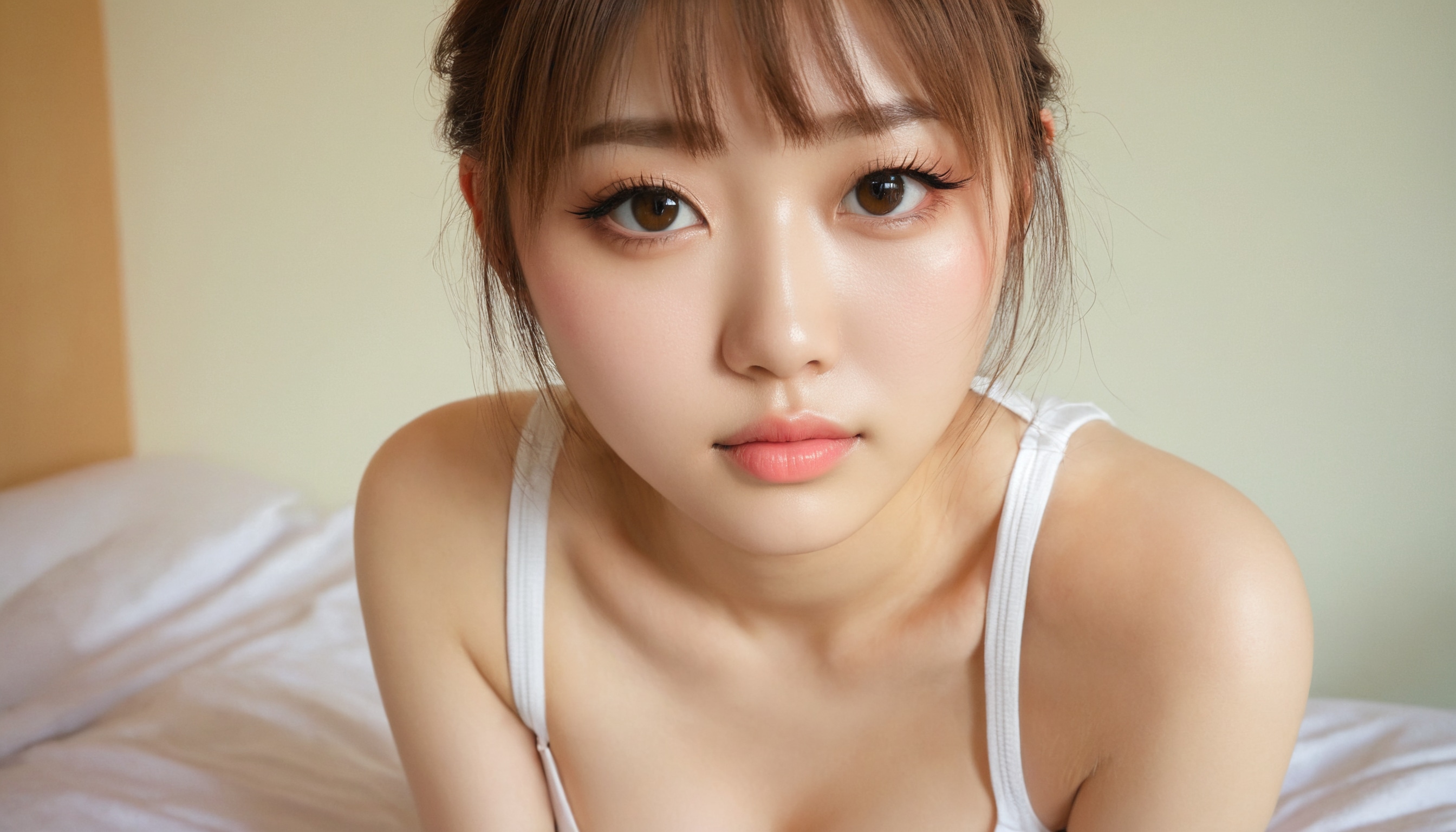 {"3": {"inputs": {"seed": 443867414929909, "steps": 64, "cfg": 5.11, "sampler_name": "dpmpp_2m", "scheduler": "karras", "denoise": 1.0, "model": ["27", 0], "positive": ["6", 0], "negative": ["7", 0], "latent_image": ["5", 0]}, "class_type": "KSampler"}, "4": {"inputs": {"ckpt_name": "juggernautxl.safetensors"}, "class_type": "CheckpointLoaderSimple"}, "5": {"inputs": {"width": 1344, "height": 768, "batch_size": 1}, "class_type": "EmptyLatentImage"}, "6": {"inputs": {"text": "18 year old girl, (japanese:1.06), (eyelashes:1.00), (double eyelids:0.98), (sexy lips:0.97), (cute:0.96), (seductive pose:1.03), (beautiful eyes:1.01), (temptress:1.05), (seductive facial expression:0.99), (detailed face:1.08), (slim:1.07), (idol:1.04), (blush:0.96), (pale skin:1.10), (in a seductive pose:1.14), (large perky breasts:0.99), (cleavage:1.05), (thigh gap:1.11), (white tanktop:1.03), busy street, (film:1.04), (candid cinema:1.03), (detailed skin:1.07), (soft lighting:1.02), (textured skin:1.09), (RAW:1.05), (skin fuzz:1.08), (portra:1.05), (natural looking skin:1.04)", "clip": ["27", 1]}, "class_type": "CLIPTextEncode"}, "7": {"inputs": {"text": "(open mouth:1.11), (watermark:1.07), (twisted:1.08), (low resolution:1.06), (worst quality:1.05), (bad hands:1.06), (distorted:1.12)", "clip": ["27", 1]}, "class_type": "CLIPTextEncode"}, "8": {"inputs": {"samples": ["3", 0], "vae": ["4", 2]}, "class_type": "VAEDecode"}, "25": {"inputs": {"lora_name": "nudify_xl.safetensors", "strength_model": 0.3, "strength_clip": 0.12, "model": ["4", 0], "clip": ["4", 1]}, "class_type": "LoraLoader"}, "26": {"inputs": {"lora_name": "shirtlift_SDXL_v2.safetensors", "strength_model": 0.01, "strength_clip": 0.07, "model": ["25", 0], "clip": ["25", 1]}, "class_type": "LoraLoader"}, "27": {"inputs": {"lora_name": "PerfectEyesXL.safetensors", "strength_model": 0.11, "strength_clip": 0.05, "model": ["26", 0], "clip": ["26", 1]}, "class_type": "LoraLoader"}, "30": {"inputs": {"model_name": "4x_NMKD-Superscale-SP_178000_G.pth"}, "class_type": "UpscaleModelLoader"}, "31": {"inputs": {"upscale_model": ["30", 0], "image": ["8", 0]}, "class_type": "ImageUpscaleWithModel"}, "32": {"inputs": {"upscale_method": "lanczos", "scale_by": 0.5, "image": ["31", 0]}, "class_type": "ImageScaleBy"}, "33": {"inputs": {"pixels": ["32", 0], "vae": ["4", 2]}, "class_type": "VAEEncode"}, "34": {"inputs": {"seed": 443867414929909, "steps": 64, "cfg": 5.11, "sampler_name": "dpmpp_2m", "scheduler": "karras", "denoise": 0.3, "model": ["27", 0], "positive": ["6", 0], "negative": ["7", 0], "latent_image": ["33", 0]}, "class_type": "KSampler"}, "36": {"inputs": {"samples": ["34", 0], "vae": ["4", 2]}, "class_type": "VAEDecode"}, "39": {"inputs": {"filename_prefix": "comfyapi-1735524745843", "images": ["36", 0]}, "class_type": "SaveImage"}}