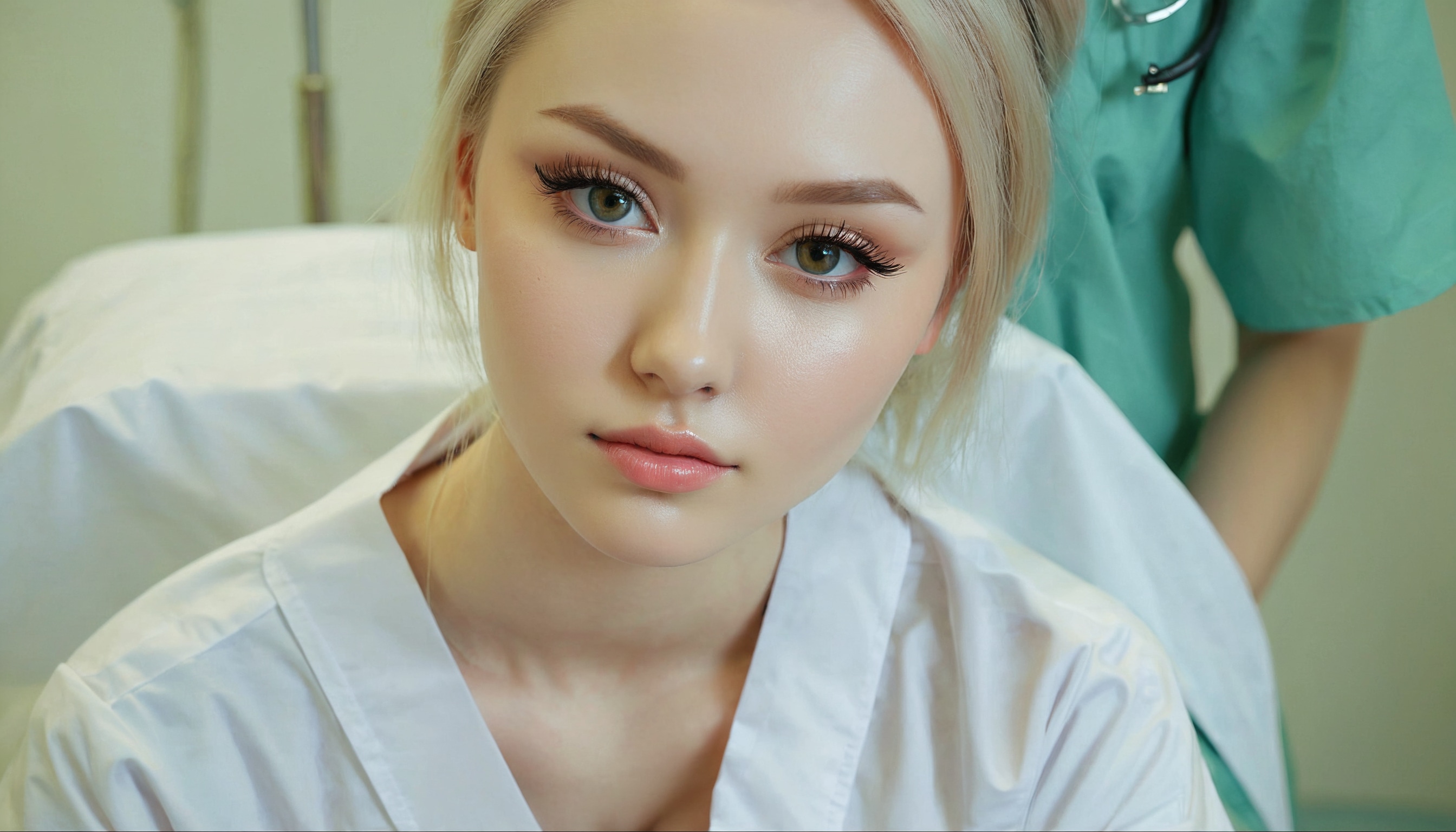 {"3": {"inputs": {"seed": 804083818244253, "steps": 64, "cfg": 7.83, "sampler_name": "dpmpp_2m", "scheduler": "karras", "denoise": 1.0, "model": ["27", 0], "positive": ["6", 0], "negative": ["7", 0], "latent_image": ["5", 0]}, "class_type": "KSampler"}, "4": {"inputs": {"ckpt_name": "juggernautxl.safetensors"}, "class_type": "CheckpointLoaderSimple"}, "5": {"inputs": {"width": 1344, "height": 768, "batch_size": 1}, "class_type": "EmptyLatentImage"}, "6": {"inputs": {"text": "24 year old girl, (ukrainian:1.04), (detailed face:1.09), (cute:0.95), (seductive pose:1.08), (sexy lips:1.06), (eyelashes:1.14), (beautiful eyes:1.03), (double eyelids:1.07), (pale skin:1.08), (slim:1.03), (temptress:0.98), (idol:0.97), (in a seductive pose:0.96), (large perky breasts:1.03), (cleavage:1.12), (thigh gap:1.14), (nurse in uniform:1.04) working in a hospital ward, (soft lighting:1.08), (natural looking skin:1.01), (candid cinema:1.03), (textured skin:1.09), (portra:1.06), (detailed skin:1.02), (film:1.09), (RAW:1.09)", "clip": ["27", 1]}, "class_type": "CLIPTextEncode"}, "7": {"inputs": {"text": "(bad hands:1.08), (worst quality:1.14), (open mouth:1.05), (watermark:1.10), (distorted:1.05), (twisted:1.11), (low resolution:1.11)", "clip": ["27", 1]}, "class_type": "CLIPTextEncode"}, "8": {"inputs": {"samples": ["3", 0], "vae": ["4", 2]}, "class_type": "VAEDecode"}, "25": {"inputs": {"lora_name": "nudify_xl.safetensors", "strength_model": 0.13, "strength_clip": 0.09, "model": ["4", 0], "clip": ["4", 1]}, "class_type": "LoraLoader"}, "26": {"inputs": {"lora_name": "shirtlift_SDXL_v2.safetensors", "strength_model": 0.05, "strength_clip": 0.11, "model": ["25", 0], "clip": ["25", 1]}, "class_type": "LoraLoader"}, "27": {"inputs": {"lora_name": "PerfectEyesXL.safetensors", "strength_model": 0.18, "strength_clip": 0.13, "model": ["26", 0], "clip": ["26", 1]}, "class_type": "LoraLoader"}, "30": {"inputs": {"model_name": "4x_NMKD-Superscale-SP_178000_G.pth"}, "class_type": "UpscaleModelLoader"}, "31": {"inputs": {"upscale_model": ["30", 0], "image": ["8", 0]}, "class_type": "ImageUpscaleWithModel"}, "32": {"inputs": {"upscale_method": "lanczos", "scale_by": 0.5, "image": ["31", 0]}, "class_type": "ImageScaleBy"}, "33": {"inputs": {"pixels": ["32", 0], "vae": ["4", 2]}, "class_type": "VAEEncode"}, "34": {"inputs": {"seed": 804083818244253, "steps": 64, "cfg": 7.83, "sampler_name": "dpmpp_2m", "scheduler": "karras", "denoise": 0.3, "model": ["27", 0], "positive": ["6", 0], "negative": ["7", 0], "latent_image": ["33", 0]}, "class_type": "KSampler"}, "36": {"inputs": {"samples": ["34", 0], "vae": ["4", 2]}, "class_type": "VAEDecode"}, "39": {"inputs": {"filename_prefix": "comfyapi-1718151047209", "images": ["36", 0]}, "class_type": "SaveImage"}}