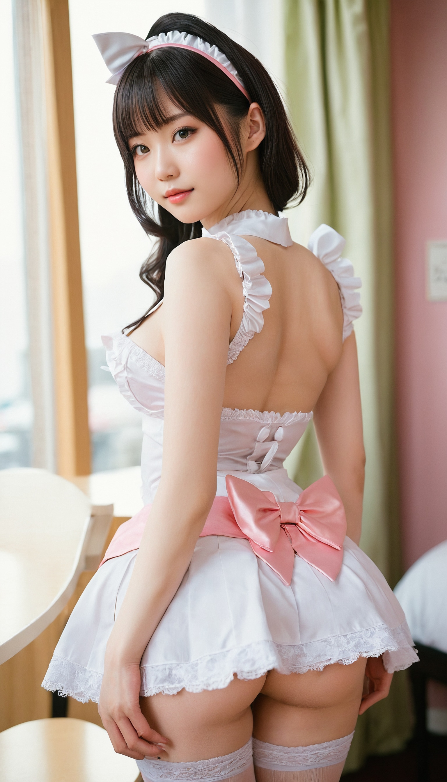 {"3": {"inputs": {"seed": 155333289415804, "steps": 64, "cfg": 7.2, "sampler_name": "dpmpp_2m", "scheduler": "karras", "denoise": 1.0, "model": ["27", 0], "positive": ["6", 0], "negative": ["7", 0], "latent_image": ["5", 0]}, "class_type": "KSampler"}, "4": {"inputs": {"ckpt_name": "juggernautxl.safetensors"}, "class_type": "CheckpointLoaderSimple"}, "5": {"inputs": {"width": 768, "height": 1344, "batch_size": 1}, "class_type": "EmptyLatentImage"}, "6": {"inputs": {"text": "25 year old girl, (japanese:1.06), (russian:0.98), (blush:1.09), (slim:1.07), (sexy lips:1.06), (cute:1.02), (seductive pose:1.12), (beautiful eyes:1.06), (idol:1.03), (detailed face:1.04), (temptress:1.01), (pale skin:1.00), (seductive facial expression:0.97), (eyelashes:1.00), (on all fours:1.06), (spreading ass cheeks:1.10), (from behind:1.08), (backboob:0.97), in a (skimpy maid costume:1.02) working at a maid cafe, choker, bowtie, headband, pleated skirt, (detailed skin:1.04), (portra:1.05), (textured skin:1.07), (soft lighting:1.09), (natural looking skin:1.03), (RAW:1.09), (skin fuzz:1.08), (film:1.05), (candid cinema:1.07)", "clip": ["27", 1]}, "class_type": "CLIPTextEncode"}, "7": {"inputs": {"text": "(distorted:1.09), (low resolution:1.13), (open mouth:1.07), (watermark:1.10), (bad hands:1.12), (twisted:1.13), (worst quality:1.05)", "clip": ["27", 1]}, "class_type": "CLIPTextEncode"}, "8": {"inputs": {"samples": ["3", 0], "vae": ["4", 2]}, "class_type": "VAEDecode"}, "25": {"inputs": {"lora_name": "nudify_xl.safetensors", "strength_model": 0.0, "strength_clip": 0.3, "model": ["4", 0], "clip": ["4", 1]}, "class_type": "LoraLoader"}, "26": {"inputs": {"lora_name": "shirtlift_SDXL_v2.safetensors", "strength_model": 0.15, "strength_clip": 0.12, "model": ["25", 0], "clip": ["25", 1]}, "class_type": "LoraLoader"}, "27": {"inputs": {"lora_name": "PerfectEyesXL.safetensors", "strength_model": 0.09, "strength_clip": 0.0, "model": ["26", 0], "clip": ["26", 1]}, "class_type": "LoraLoader"}, "30": {"inputs": {"model_name": "4x_NMKD-Superscale-SP_178000_G.pth"}, "class_type": "UpscaleModelLoader"}, "31": {"inputs": {"upscale_model": ["30", 0], "image": ["8", 0]}, "class_type": "ImageUpscaleWithModel"}, "32": {"inputs": {"upscale_method": "lanczos", "scale_by": 0.5, "image": ["31", 0]}, "class_type": "ImageScaleBy"}, "33": {"inputs": {"pixels": ["32", 0], "vae": ["4", 2]}, "class_type": "VAEEncode"}, "34": {"inputs": {"seed": 155333289415804, "steps": 64, "cfg": 7.2, "sampler_name": "dpmpp_2m", "scheduler": "karras", "denoise": 0.3, "model": ["27", 0], "positive": ["6", 0], "negative": ["7", 0], "latent_image": ["33", 0]}, "class_type": "KSampler"}, "36": {"inputs": {"samples": ["34", 0], "vae": ["4", 2]}, "class_type": "VAEDecode"}, "39": {"inputs": {"filename_prefix": "comfyapi-1715988269921", "images": ["36", 0]}, "class_type": "SaveImage"}}