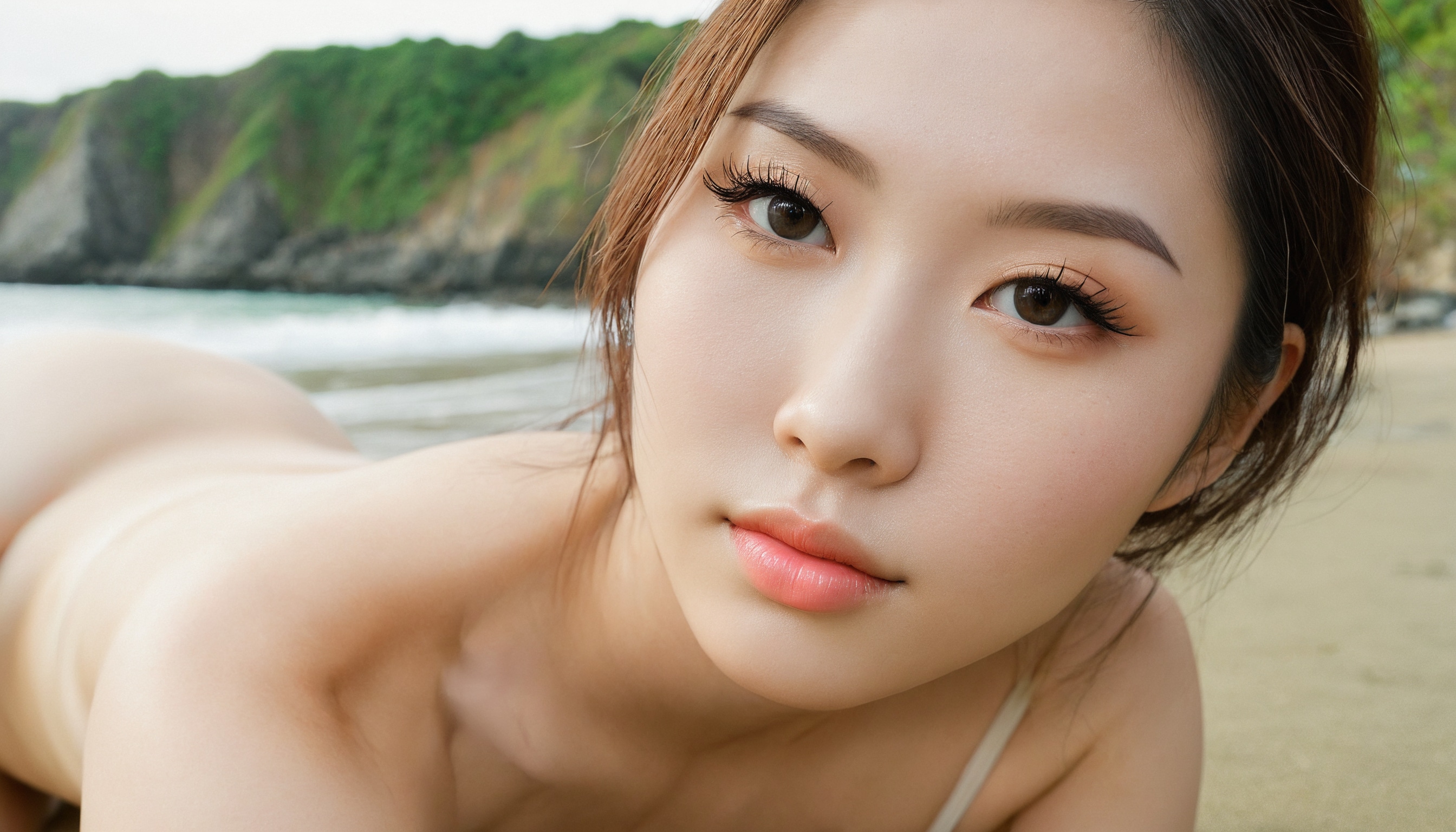 {"3": {"inputs": {"seed": 914045593525949, "steps": 32, "cfg": 5.27, "sampler_name": "dpmpp_2m", "scheduler": "karras", "denoise": 1.0, "model": ["27", 0], "positive": ["6", 0], "negative": ["7", 0], "latent_image": ["5", 0]}, "class_type": "KSampler"}, "4": {"inputs": {"ckpt_name": "juggernautxl.safetensors"}, "class_type": "CheckpointLoaderSimple"}, "5": {"inputs": {"width": 1344, "height": 768, "batch_size": 1}, "class_type": "EmptyLatentImage"}, "6": {"inputs": {"text": "28 year old girl, (taiwanese:0.98), (irish:0.97), (temptress:1.11), (sexy lips:1.01), (beautiful eyes:1.09), (detailed face:1.05), (idol:1.01), (slim:1.14), (eyelashes:1.09), (seductive facial expression:0.96), (double eyelids:1.14), (pale skin:1.06), (blush:1.04), (cute:1.13), (seductive pose:1.01), (on all fours:1.07), (spreading ass cheeks:1.08), (from behind:0.97), (backboob:1.03), strolling (nude:0.97) at a beach, (candid cinema:1.02), (film:1.05), (portra:1.03), (skin fuzz:1.00), (natural looking skin:1.05), (detailed skin:1.00), (soft lighting:1.00), (textured skin:1.00), (RAW:1.07)", "clip": ["27", 1]}, "class_type": "CLIPTextEncode"}, "7": {"inputs": {"text": "(open mouth:1.06), (distorted:1.09), (twisted:1.14), (worst quality:1.13), (watermark:1.08), (low resolution:1.10), (bad hands:1.08)", "clip": ["27", 1]}, "class_type": "CLIPTextEncode"}, "8": {"inputs": {"samples": ["3", 0], "vae": ["4", 2]}, "class_type": "VAEDecode"}, "25": {"inputs": {"lora_name": "nudify_xl.safetensors", "strength_model": 0.09, "strength_clip": 0.21, "model": ["4", 0], "clip": ["4", 1]}, "class_type": "LoraLoader"}, "26": {"inputs": {"lora_name": "shirtlift_SDXL_v2.safetensors", "strength_model": 0.1, "strength_clip": 0.04, "model": ["25", 0], "clip": ["25", 1]}, "class_type": "LoraLoader"}, "27": {"inputs": {"lora_name": "PerfectEyesXL.safetensors", "strength_model": 0.16, "strength_clip": 0.18, "model": ["26", 0], "clip": ["26", 1]}, "class_type": "LoraLoader"}, "30": {"inputs": {"model_name": "4x_NMKD-Superscale-SP_178000_G.pth"}, "class_type": "UpscaleModelLoader"}, "31": {"inputs": {"upscale_model": ["30", 0], "image": ["8", 0]}, "class_type": "ImageUpscaleWithModel"}, "32": {"inputs": {"upscale_method": "lanczos", "scale_by": 0.5, "image": ["31", 0]}, "class_type": "ImageScaleBy"}, "33": {"inputs": {"pixels": ["32", 0], "vae": ["4", 2]}, "class_type": "VAEEncode"}, "34": {"inputs": {"seed": 914045593525949, "steps": 32, "cfg": 5.27, "sampler_name": "dpmpp_2m", "scheduler": "karras", "denoise": 0.3, "model": ["27", 0], "positive": ["6", 0], "negative": ["7", 0], "latent_image": ["33", 0]}, "class_type": "KSampler"}, "36": {"inputs": {"samples": ["34", 0], "vae": ["4", 2]}, "class_type": "VAEDecode"}, "39": {"inputs": {"filename_prefix": "comfyapi-1717230381961", "images": ["36", 0]}, "class_type": "SaveImage"}}