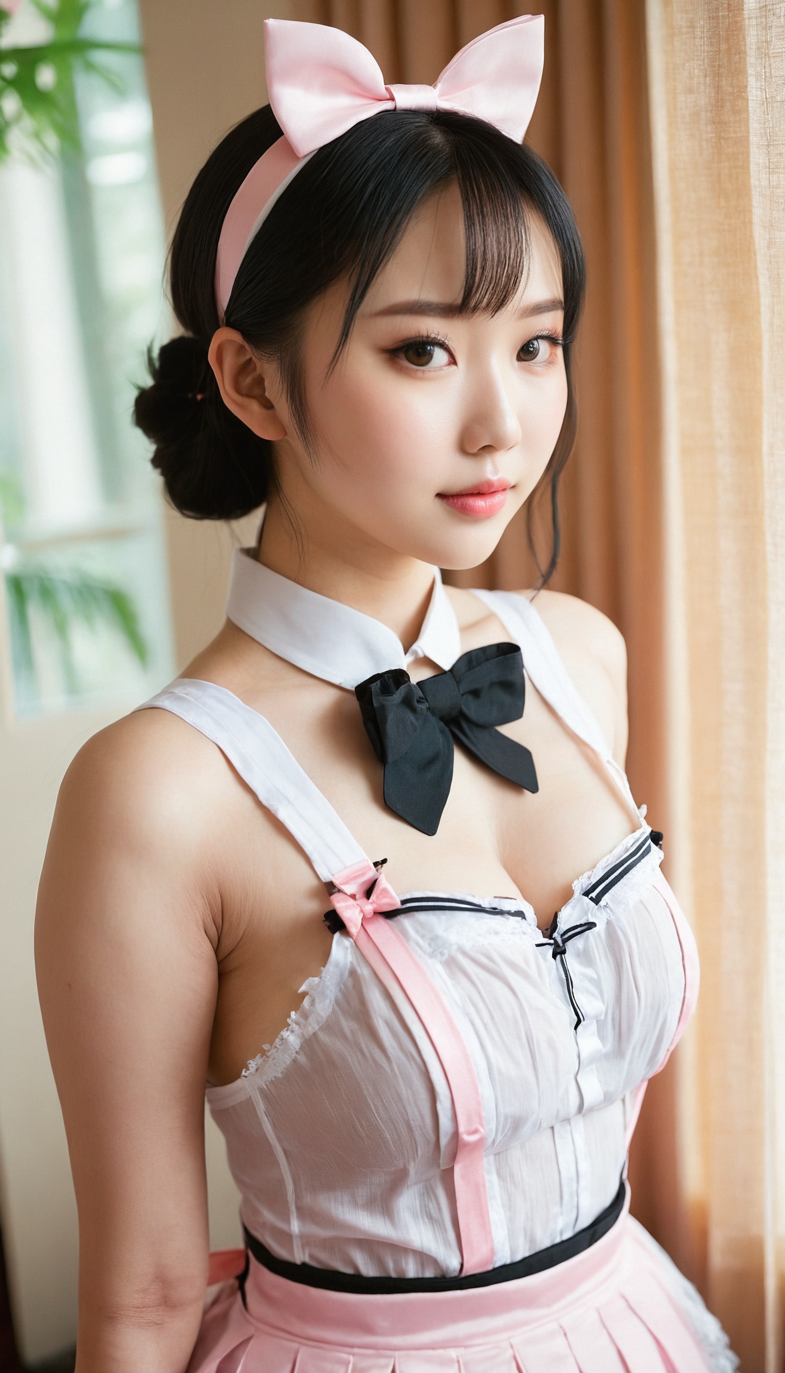 {"3": {"inputs": {"seed": 694722396499764, "steps": 32, "cfg": 6.88, "sampler_name": "dpmpp_2m", "scheduler": "karras", "denoise": 1.0, "model": ["27", 0], "positive": ["6", 0], "negative": ["7", 0], "latent_image": ["5", 0]}, "class_type": "KSampler"}, "4": {"inputs": {"ckpt_name": "juggernautxl.safetensors"}, "class_type": "CheckpointLoaderSimple"}, "5": {"inputs": {"width": 768, "height": 1344, "batch_size": 1}, "class_type": "EmptyLatentImage"}, "6": {"inputs": {"text": "24 year old girl, (chinese:1.12), (sexy lips:1.10), (seductive facial expression:1.14), (idol:1.07), (beautiful eyes:0.95), (blush:1.05), (pale skin:1.05), (double eyelids:1.02), (detailed face:1.04), (temptress:0.95), (slim:0.98), (cute:0.97), (seductive pose:1.02), (eyelashes:1.03), (on all fours:1.02), (spreading ass cheeks:1.07), (from behind:1.10), (backboob:0.98), in a (skimpy maid costume:1.06) working at a maid cafe, choker, bowtie, headband, pleated skirt, (RAW:1.05), (film:1.05), (soft lighting:1.03), (skin fuzz:1.01), (natural looking skin:1.02), (portra:1.05), (textured skin:1.03), (candid cinema:1.04), (detailed skin:1.05)", "clip": ["27", 1]}, "class_type": "CLIPTextEncode"}, "7": {"inputs": {"text": "(worst quality:1.10), (bad hands:1.10), (watermark:1.09), (open mouth:1.06), (twisted:1.05), (distorted:1.11), (low resolution:1.06)", "clip": ["27", 1]}, "class_type": "CLIPTextEncode"}, "8": {"inputs": {"samples": ["3", 0], "vae": ["4", 2]}, "class_type": "VAEDecode"}, "25": {"inputs": {"lora_name": "nudify_xl.safetensors", "strength_model": 0.38, "strength_clip": 0.2, "model": ["4", 0], "clip": ["4", 1]}, "class_type": "LoraLoader"}, "26": {"inputs": {"lora_name": "shirtlift_SDXL_v2.safetensors", "strength_model": 0.02, "strength_clip": 0.04, "model": ["25", 0], "clip": ["25", 1]}, "class_type": "LoraLoader"}, "27": {"inputs": {"lora_name": "PerfectEyesXL.safetensors", "strength_model": 0.08, "strength_clip": 0.06, "model": ["26", 0], "clip": ["26", 1]}, "class_type": "LoraLoader"}, "30": {"inputs": {"model_name": "4x_NMKD-Superscale-SP_178000_G.pth"}, "class_type": "UpscaleModelLoader"}, "31": {"inputs": {"upscale_model": ["30", 0], "image": ["8", 0]}, "class_type": "ImageUpscaleWithModel"}, "32": {"inputs": {"upscale_method": "lanczos", "scale_by": 0.5, "image": ["31", 0]}, "class_type": "ImageScaleBy"}, "33": {"inputs": {"pixels": ["32", 0], "vae": ["4", 2]}, "class_type": "VAEEncode"}, "34": {"inputs": {"seed": 694722396499764, "steps": 32, "cfg": 6.88, "sampler_name": "dpmpp_2m", "scheduler": "karras", "denoise": 0.3, "model": ["27", 0], "positive": ["6", 0], "negative": ["7", 0], "latent_image": ["33", 0]}, "class_type": "KSampler"}, "36": {"inputs": {"samples": ["34", 0], "vae": ["4", 2]}, "class_type": "VAEDecode"}, "39": {"inputs": {"filename_prefix": "comfyapi-1715026162358", "images": ["36", 0]}, "class_type": "SaveImage"}}