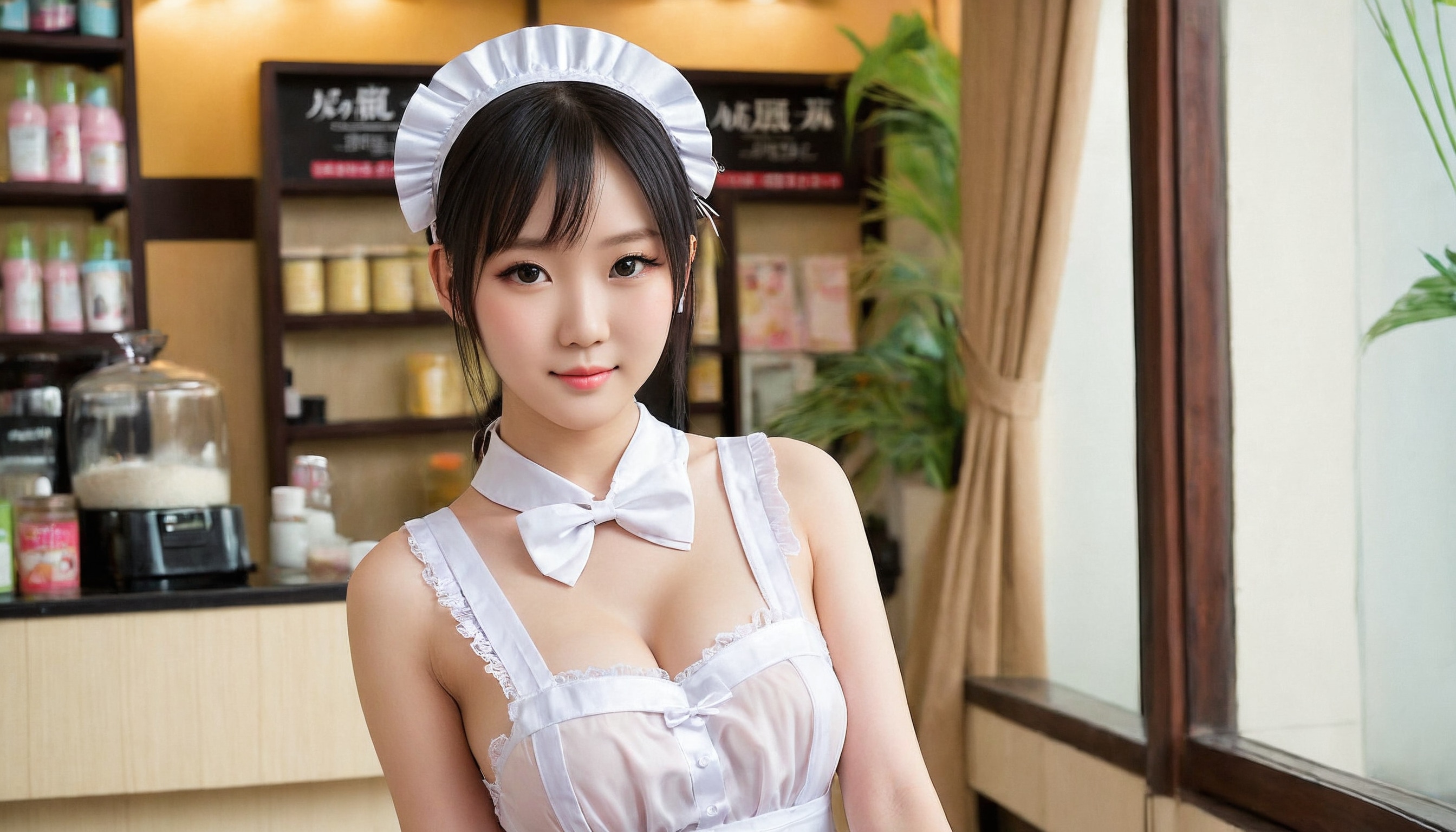 {"3": {"inputs": {"seed": 160488399672297, "steps": 32, "cfg": 7.01, "sampler_name": "dpmpp_2m", "scheduler": "karras", "denoise": 1.0, "model": ["27", 0], "positive": ["6", 0], "negative": ["7", 0], "latent_image": ["5", 0]}, "class_type": "KSampler"}, "4": {"inputs": {"ckpt_name": "juggernautXL_v8Rundiffusion.safetensors"}, "class_type": "CheckpointLoaderSimple"}, "5": {"inputs": {"width": 1344, "height": 768, "batch_size": 1}, "class_type": "EmptyLatentImage"}, "6": {"inputs": {"text": "22 year old girl, (chinese:1.10), (blush:0.95), (cute:0.96), (eyelashes:1.07), (seductive pose:1.05), (beautiful eyes:0.97), (slim:1.13), (double eyelids:1.05), (sexy lips:1.10), (pale skin:1.09), (temptress:0.96), (detailed face:0.99), (idol:1.07), (in a seductive pose:0.96), (large perky breasts:1.06), (cleavage:1.04), (thigh gap:1.04), in a (skimpy maid costume:1.09) working at a maid cafe, choker, bowtie, headband, pleated skirt, (detailed skin:1.08), (candid cinema:1.06), (film:1.06), (textured skin:1.09), (soft lighting:1.02), (portra:1.06), (RAW:1.06), (skin fuzz:1.03), (natural looking skin:1.07)", "clip": ["27", 1]}, "class_type": "CLIPTextEncode"}, "7": {"inputs": {"text": "(twisted:1.14), (watermark:1.09), (open mouth:1.08), (distorted:1.11), (worst quality:1.09), (bad hands:1.12), (low resolution:1.07)", "clip": ["27", 1]}, "class_type": "CLIPTextEncode"}, "8": {"inputs": {"samples": ["3", 0], "vae": ["4", 2]}, "class_type": "VAEDecode"}, "25": {"inputs": {"lora_name": "nudify_xl.safetensors", "strength_model": 0.13, "strength_clip": 0.01, "model": ["4", 0], "clip": ["4", 1]}, "class_type": "LoraLoader"}, "26": {"inputs": {"lora_name": "shirtlift_SDXL_v2.safetensors", "strength_model": 0.01, "strength_clip": 0.0, "model": ["25", 0], "clip": ["25", 1]}, "class_type": "LoraLoader"}, "27": {"inputs": {"lora_name": "PerfectEyesXL.safetensors", "strength_model": 0.11, "strength_clip": 0.0, "model": ["26", 0], "clip": ["26", 1]}, "class_type": "LoraLoader"}, "30": {"inputs": {"model_name": "4x_NMKD-Superscale-SP_178000_G.pth"}, "class_type": "UpscaleModelLoader"}, "31": {"inputs": {"upscale_model": ["30", 0], "image": ["8", 0]}, "class_type": "ImageUpscaleWithModel"}, "32": {"inputs": {"upscale_method": "lanczos", "scale_by": 0.5, "image": ["31", 0]}, "class_type": "ImageScaleBy"}, "33": {"inputs": {"pixels": ["32", 0], "vae": ["4", 2]}, "class_type": "VAEEncode"}, "34": {"inputs": {"seed": 160488399672297, "steps": 32, "cfg": 7.01, "sampler_name": "dpmpp_2m", "scheduler": "karras", "denoise": 0.3, "model": ["27", 0], "positive": ["6", 0], "negative": ["7", 0], "latent_image": ["33", 0]}, "class_type": "KSampler"}, "36": {"inputs": {"samples": ["34", 0], "vae": ["4", 2]}, "class_type": "VAEDecode"}, "39": {"inputs": {"filename_prefix": "comfyapi-1707919474727", "images": ["36", 0]}, "class_type": "SaveImage"}}