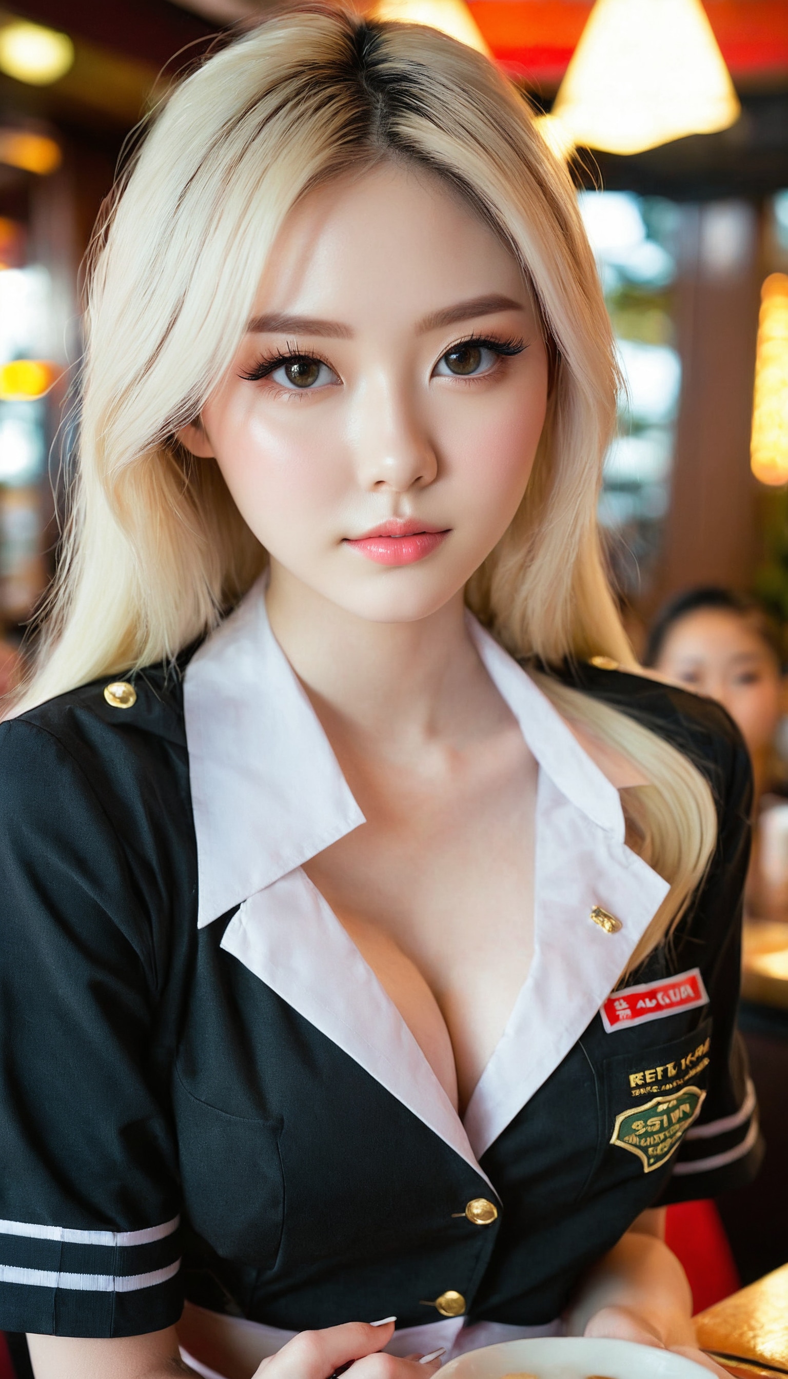 {"3": {"inputs": {"seed": 562144132912365, "steps": 64, "cfg": 6.31, "sampler_name": "dpmpp_2m", "scheduler": "karras", "denoise": 1.0, "model": ["27", 0], "positive": ["6", 0], "negative": ["7", 0], "latent_image": ["5", 0]}, "class_type": "KSampler"}, "4": {"inputs": {"ckpt_name": "juggernautxl.safetensors"}, "class_type": "CheckpointLoaderSimple"}, "5": {"inputs": {"width": 768, "height": 1344, "batch_size": 1}, "class_type": "EmptyLatentImage"}, "6": {"inputs": {"text": "21 year old girl, (seductive facial expression:1.11), (sexy lips:0.98), (idol:1.04), (seductive pose:1.13), (double eyelids:1.12), (eyelashes:1.14), (temptress:0.99), (blush:1.12), (beautiful eyes:1.11), (detailed face:1.12), (pale skin:1.09), (slim:1.06), (in a seductive pose:0.98), (large perky breasts:0.96), (cleavage:1.13), (thigh gap:1.01), (a waitress in uniform:1.14) working at a restaurant, (detailed skin:1.09), (soft lighting:1.09), (textured skin:1.00), (natural looking skin:1.02), (RAW:1.05), (film:1.04), (skin fuzz:1.06), (portra:1.09), (candid cinema:1.07)", "clip": ["27", 1]}, "class_type": "CLIPTextEncode"}, "7": {"inputs": {"text": "(twisted:1.06), (bad hands:1.05), (watermark:1.12), (worst quality:1.11), (open mouth:1.08), (distorted:1.07), (low resolution:1.12)", "clip": ["27", 1]}, "class_type": "CLIPTextEncode"}, "8": {"inputs": {"samples": ["3", 0], "vae": ["4", 2]}, "class_type": "VAEDecode"}, "25": {"inputs": {"lora_name": "nudify_xl.safetensors", "strength_model": 0.11, "strength_clip": 0.33, "model": ["4", 0], "clip": ["4", 1]}, "class_type": "LoraLoader"}, "26": {"inputs": {"lora_name": "shirtlift_SDXL_v2.safetensors", "strength_model": 0.04, "strength_clip": 0.12, "model": ["25", 0], "clip": ["25", 1]}, "class_type": "LoraLoader"}, "27": {"inputs": {"lora_name": "PerfectEyesXL.safetensors", "strength_model": 0.07, "strength_clip": 0.06, "model": ["26", 0], "clip": ["26", 1]}, "class_type": "LoraLoader"}, "30": {"inputs": {"model_name": "4x_NMKD-Superscale-SP_178000_G.pth"}, "class_type": "UpscaleModelLoader"}, "31": {"inputs": {"upscale_model": ["30", 0], "image": ["8", 0]}, "class_type": "ImageUpscaleWithModel"}, "32": {"inputs": {"upscale_method": "lanczos", "scale_by": 0.5, "image": ["31", 0]}, "class_type": "ImageScaleBy"}, "33": {"inputs": {"pixels": ["32", 0], "vae": ["4", 2]}, "class_type": "VAEEncode"}, "34": {"inputs": {"seed": 562144132912365, "steps": 64, "cfg": 6.31, "sampler_name": "dpmpp_2m", "scheduler": "karras", "denoise": 0.3, "model": ["27", 0], "positive": ["6", 0], "negative": ["7", 0], "latent_image": ["33", 0]}, "class_type": "KSampler"}, "36": {"inputs": {"samples": ["34", 0], "vae": ["4", 2]}, "class_type": "VAEDecode"}, "39": {"inputs": {"filename_prefix": "comfyapi-1731485237909", "images": ["36", 0]}, "class_type": "SaveImage"}}