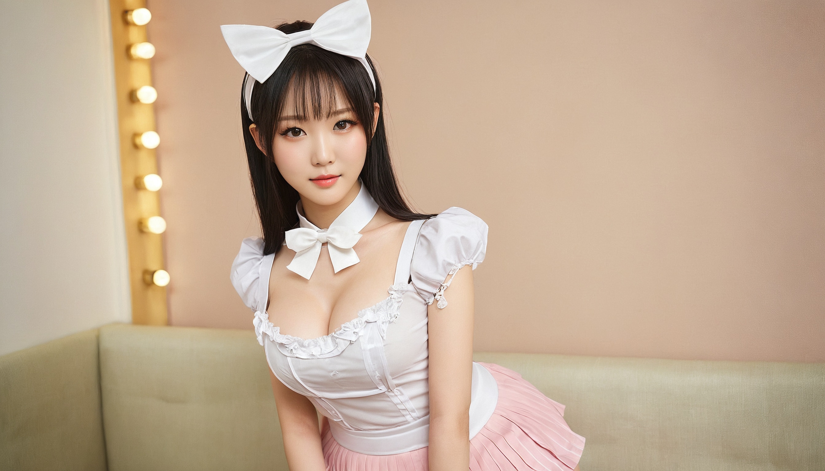{"3": {"inputs": {"seed": 354603256679416, "steps": 32, "cfg": 5.43, "sampler_name": "dpmpp_2m", "scheduler": "karras", "denoise": 1.0, "model": ["27", 0], "positive": ["6", 0], "negative": ["7", 0], "latent_image": ["5", 0]}, "class_type": "KSampler"}, "4": {"inputs": {"ckpt_name": "juggernautxl.safetensors"}, "class_type": "CheckpointLoaderSimple"}, "5": {"inputs": {"width": 1344, "height": 768, "batch_size": 1}, "class_type": "EmptyLatentImage"}, "6": {"inputs": {"text": "22 year old girl, (chinese:1.08), (cute:0.96), (idol:1.03), (seductive pose:0.97), (beautiful eyes:0.99), (slim:0.97), (detailed face:1.13), (blush:1.11), (sexy lips:1.14), (temptress:1.07), (eyelashes:0.96), (seductive facial expression:1.10), (double eyelids:0.95), (pale skin:1.01), (in a seductive pose:0.96), (large perky breasts:1.13), (cleavage:1.03), (thigh gap:1.10), in a (skimpy maid costume:1.01) working at a maid cafe, choker, bowtie, headband, pleated skirt, (soft lighting:1.01), (RAW:1.03), (film:1.06), (portra:1.05), (natural looking skin:1.03), (textured skin:1.02), (detailed skin:1.01), (skin fuzz:1.01), (candid cinema:1.03)", "clip": ["27", 1]}, "class_type": "CLIPTextEncode"}, "7": {"inputs": {"text": "(watermark:1.06), (worst quality:1.07), (twisted:1.11), (open mouth:1.12), (bad hands:1.05), (low resolution:1.08), (distorted:1.07)", "clip": ["27", 1]}, "class_type": "CLIPTextEncode"}, "8": {"inputs": {"samples": ["3", 0], "vae": ["4", 2]}, "class_type": "VAEDecode"}, "25": {"inputs": {"lora_name": "nudify_xl.safetensors", "strength_model": 0.0, "strength_clip": 0.06, "model": ["4", 0], "clip": ["4", 1]}, "class_type": "LoraLoader"}, "26": {"inputs": {"lora_name": "shirtlift_SDXL_v2.safetensors", "strength_model": 0.19, "strength_clip": 0.18, "model": ["25", 0], "clip": ["25", 1]}, "class_type": "LoraLoader"}, "27": {"inputs": {"lora_name": "PerfectEyesXL.safetensors", "strength_model": 0.12, "strength_clip": 0.08, "model": ["26", 0], "clip": ["26", 1]}, "class_type": "LoraLoader"}, "30": {"inputs": {"model_name": "4x_NMKD-Superscale-SP_178000_G.pth"}, "class_type": "UpscaleModelLoader"}, "31": {"inputs": {"upscale_model": ["30", 0], "image": ["8", 0]}, "class_type": "ImageUpscaleWithModel"}, "32": {"inputs": {"upscale_method": "lanczos", "scale_by": 0.5, "image": ["31", 0]}, "class_type": "ImageScaleBy"}, "33": {"inputs": {"pixels": ["32", 0], "vae": ["4", 2]}, "class_type": "VAEEncode"}, "34": {"inputs": {"seed": 354603256679416, "steps": 32, "cfg": 5.43, "sampler_name": "dpmpp_2m", "scheduler": "karras", "denoise": 0.3, "model": ["27", 0], "positive": ["6", 0], "negative": ["7", 0], "latent_image": ["33", 0]}, "class_type": "KSampler"}, "36": {"inputs": {"samples": ["34", 0], "vae": ["4", 2]}, "class_type": "VAEDecode"}, "39": {"inputs": {"filename_prefix": "comfyapi-1733674661746", "images": ["36", 0]}, "class_type": "SaveImage"}}