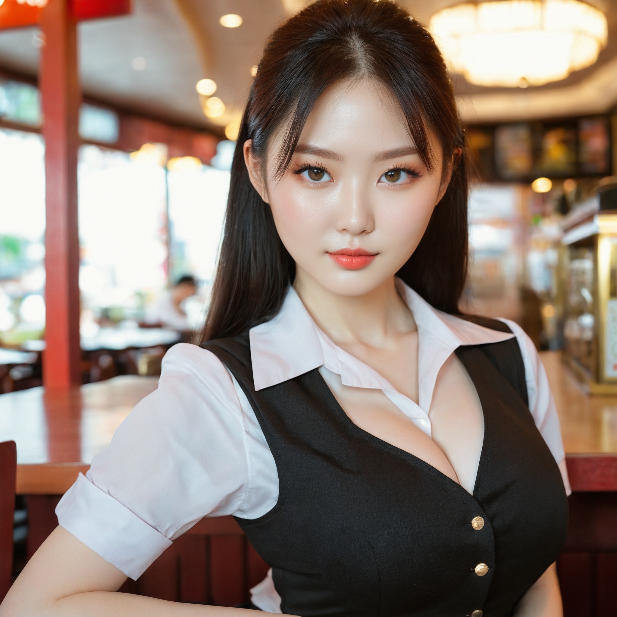{"3": {"inputs": {"seed": 189794831849806, "steps": 64, "cfg": 5.49, "sampler_name": "dpmpp_2m", "scheduler": "karras", "denoise": 1.0, "model": ["27", 0], "positive": ["6", 0], "negative": ["7", 0], "latent_image": ["5", 0]}, "class_type": "KSampler"}, "4": {"inputs": {"ckpt_name": "juggernautxl.safetensors"}, "class_type": "CheckpointLoaderSimple"}, "5": {"inputs": {"width": 1024, "height": 1024, "batch_size": 1}, "class_type": "EmptyLatentImage"}, "6": {"inputs": {"text": "26 year old girl, (korean:1.06), (russian:0.95), (temptress:1.08), (pale skin:1.06), (blush:1.01), (beautiful eyes:0.95), (double eyelids:0.98), (idol:1.07), (cute:1.09), (eyelashes:1.12), (slim:0.99), (detailed face:1.06), (seductive pose:1.06), (seductive facial expression:1.07), (sexy lips:1.14), (in a seductive pose:0.95), (large perky breasts:1.05), (cleavage:1.04), (thigh gap:1.01), (a waitress in uniform:1.06) working at a restaurant, (candid cinema:1.03), (RAW:1.07), (textured skin:1.08), (soft lighting:1.05), (skin fuzz:1.03), (detailed skin:1.09), (portra:1.07), (natural looking skin:1.03), (film:1.03)", "clip": ["27", 1]}, "class_type": "CLIPTextEncode"}, "7": {"inputs": {"text": "(low resolution:1.05), (watermark:1.06), (worst quality:1.10), (open mouth:1.05), (twisted:1.10), (distorted:1.08), (bad hands:1.13)", "clip": ["27", 1]}, "class_type": "CLIPTextEncode"}, "8": {"inputs": {"samples": ["3", 0], "vae": ["4", 2]}, "class_type": "VAEDecode"}, "25": {"inputs": {"lora_name": "nudify_xl.safetensors", "strength_model": 0.25, "strength_clip": 0.21, "model": ["4", 0], "clip": ["4", 1]}, "class_type": "LoraLoader"}, "26": {"inputs": {"lora_name": "shirtlift_SDXL_v2.safetensors", "strength_model": 0.05, "strength_clip": 0.15, "model": ["25", 0], "clip": ["25", 1]}, "class_type": "LoraLoader"}, "27": {"inputs": {"lora_name": "PerfectEyesXL.safetensors", "strength_model": 0.19, "strength_clip": 0.07, "model": ["26", 0], "clip": ["26", 1]}, "class_type": "LoraLoader"}, "30": {"inputs": {"model_name": "4x_NMKD-Superscale-SP_178000_G.pth"}, "class_type": "UpscaleModelLoader"}, "31": {"inputs": {"upscale_model": ["30", 0], "image": ["8", 0]}, "class_type": "ImageUpscaleWithModel"}, "32": {"inputs": {"upscale_method": "lanczos", "scale_by": 0.5, "image": ["31", 0]}, "class_type": "ImageScaleBy"}, "33": {"inputs": {"pixels": ["32", 0], "vae": ["4", 2]}, "class_type": "VAEEncode"}, "34": {"inputs": {"seed": 189794831849806, "steps": 64, "cfg": 5.49, "sampler_name": "dpmpp_2m", "scheduler": "karras", "denoise": 0.3, "model": ["27", 0], "positive": ["6", 0], "negative": ["7", 0], "latent_image": ["33", 0]}, "class_type": "KSampler"}, "36": {"inputs": {"samples": ["34", 0], "vae": ["4", 2]}, "class_type": "VAEDecode"}, "39": {"inputs": {"filename_prefix": "comfyapi-1730444943860", "images": ["36", 0]}, "class_type": "SaveImage"}}