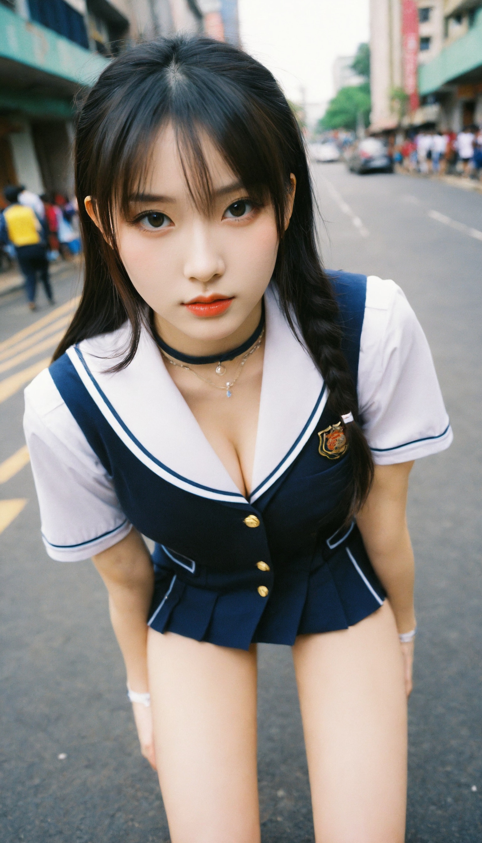 {"3": {"inputs": {"seed": 867092270731092, "steps": 64, "cfg": 5.07, "sampler_name": "dpmpp_2m", "scheduler": "karras", "denoise": 1.0, "model": ["27", 0], "positive": ["6", 0], "negative": ["7", 0], "latent_image": ["5", 0]}, "class_type": "KSampler"}, "4": {"inputs": {"ckpt_name": "helloworldxl.safetensors"}, "class_type": "CheckpointLoaderSimple"}, "5": {"inputs": {"width": 768, "height": 1344, "batch_size": 1}, "class_type": "EmptyLatentImage"}, "6": {"inputs": {"text": "24 year old girl, (chinese:1.12), (sexy lips:1.07), (temptress:1.04), (seductive pose:1.05), (double eyelids:0.96), (pale skin:0.98), (cute:1.06), (seductive facial expression:0.97), (slim:1.14), (blush:1.06), (detailed face:1.11), (idol:1.06), (eyelashes:0.95), (beautiful eyes:1.07), (in a seductive pose:1.12), (large perky breasts:1.08), (cleavage:1.06), (thigh gap:1.14), (school uniform:1.09), choker, busy street, (skin fuzz:1.04), (film:1.03), (soft lighting:1.02), (RAW:1.01), (natural looking skin:1.07), (detailed skin:1.07), (portra:1.00), (textured skin:1.04), (candid cinema:1.04)", "clip": ["27", 1]}, "class_type": "CLIPTextEncode"}, "7": {"inputs": {"text": "(distorted:1.10), (low resolution:1.12), (bad hands:1.11), (worst quality:1.09), (watermark:1.11), (twisted:1.06), (open mouth:1.07)", "clip": ["27", 1]}, "class_type": "CLIPTextEncode"}, "8": {"inputs": {"samples": ["3", 0], "vae": ["4", 2]}, "class_type": "VAEDecode"}, "25": {"inputs": {"lora_name": "nudify_xl.safetensors", "strength_model": 0.22, "strength_clip": 0.22, "model": ["4", 0], "clip": ["4", 1]}, "class_type": "LoraLoader"}, "26": {"inputs": {"lora_name": "shirtlift_SDXL_v2.safetensors", "strength_model": 0.11, "strength_clip": 0.14, "model": ["25", 0], "clip": ["25", 1]}, "class_type": "LoraLoader"}, "27": {"inputs": {"lora_name": "PerfectEyesXL.safetensors", "strength_model": 0.15, "strength_clip": 0.11, "model": ["26", 0], "clip": ["26", 1]}, "class_type": "LoraLoader"}, "30": {"inputs": {"model_name": "4x_NMKD-Superscale-SP_178000_G.pth"}, "class_type": "UpscaleModelLoader"}, "31": {"inputs": {"upscale_model": ["30", 0], "image": ["8", 0]}, "class_type": "ImageUpscaleWithModel"}, "32": {"inputs": {"upscale_method": "lanczos", "scale_by": 0.5, "image": ["31", 0]}, "class_type": "ImageScaleBy"}, "33": {"inputs": {"pixels": ["32", 0], "vae": ["4", 2]}, "class_type": "VAEEncode"}, "34": {"inputs": {"seed": 867092270731092, "steps": 64, "cfg": 5.07, "sampler_name": "dpmpp_2m", "scheduler": "karras", "denoise": 0.3, "model": ["27", 0], "positive": ["6", 0], "negative": ["7", 0], "latent_image": ["33", 0]}, "class_type": "KSampler"}, "36": {"inputs": {"samples": ["34", 0], "vae": ["4", 2]}, "class_type": "VAEDecode"}, "39": {"inputs": {"filename_prefix": "comfyapi-1713235131001", "images": ["36", 0]}, "class_type": "SaveImage"}}