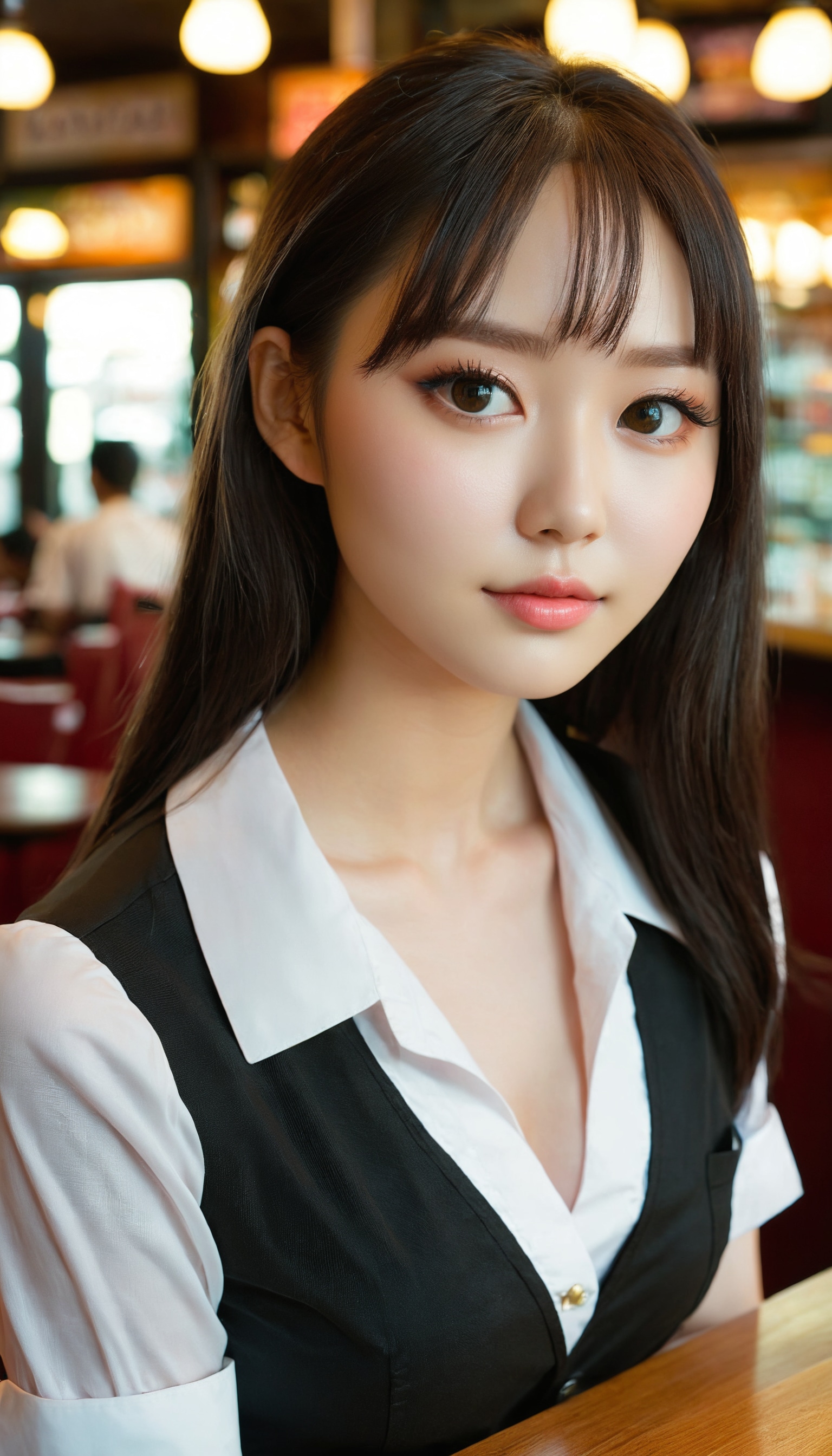 {"3": {"inputs": {"seed": 447812165556270, "steps": 64, "cfg": 6.49, "sampler_name": "dpmpp_2m", "scheduler": "karras", "denoise": 1.0, "model": ["27", 0], "positive": ["6", 0], "negative": ["7", 0], "latent_image": ["5", 0]}, "class_type": "KSampler"}, "4": {"inputs": {"ckpt_name": "juggernautxl.safetensors"}, "class_type": "CheckpointLoaderSimple"}, "5": {"inputs": {"width": 768, "height": 1344, "batch_size": 1}, "class_type": "EmptyLatentImage"}, "6": {"inputs": {"text": "27 year old girl, (seductive facial expression:0.95), (seductive pose:0.98), (cute:1.07), (double eyelids:1.09), (idol:1.08), (blush:1.08), (beautiful eyes:0.99), (temptress:1.06), (detailed face:0.97), (slim:1.08), (pale skin:1.12), (sexy lips:1.03), (eyelashes:1.00), (in a seductive pose:1.00), (large perky breasts:0.96), (cleavage:1.13), (thigh gap:1.12), (a waitress in uniform:1.02) working at a restaurant, (soft lighting:1.04), (candid cinema:1.05), (skin fuzz:1.06), (textured skin:1.06), (film:1.00), (detailed skin:1.05), (natural looking skin:1.08), (RAW:1.08), (portra:1.09)", "clip": ["27", 1]}, "class_type": "CLIPTextEncode"}, "7": {"inputs": {"text": "(bad hands:1.09), (open mouth:1.09), (watermark:1.13), (twisted:1.10), (worst quality:1.09), (distorted:1.05)", "clip": ["27", 1]}, "class_type": "CLIPTextEncode"}, "8": {"inputs": {"samples": ["3", 0], "vae": ["4", 2]}, "class_type": "VAEDecode"}, "25": {"inputs": {"lora_name": "nudify_xl.safetensors", "strength_model": 0.39, "strength_clip": 0.03, "model": ["4", 0], "clip": ["4", 1]}, "class_type": "LoraLoader"}, "26": {"inputs": {"lora_name": "shirtlift_SDXL_v2.safetensors", "strength_model": 0.07, "strength_clip": 0.19, "model": ["25", 0], "clip": ["25", 1]}, "class_type": "LoraLoader"}, "27": {"inputs": {"lora_name": "PerfectEyesXL.safetensors", "strength_model": 0.12, "strength_clip": 0.14, "model": ["26", 0], "clip": ["26", 1]}, "class_type": "LoraLoader"}, "30": {"inputs": {"model_name": "4x_NMKD-Superscale-SP_178000_G.pth"}, "class_type": "UpscaleModelLoader"}, "31": {"inputs": {"upscale_model": ["30", 0], "image": ["8", 0]}, "class_type": "ImageUpscaleWithModel"}, "32": {"inputs": {"upscale_method": "lanczos", "scale_by": 0.5, "image": ["31", 0]}, "class_type": "ImageScaleBy"}, "33": {"inputs": {"pixels": ["32", 0], "vae": ["4", 2]}, "class_type": "VAEEncode"}, "34": {"inputs": {"seed": 447812165556270, "steps": 64, "cfg": 6.49, "sampler_name": "dpmpp_2m", "scheduler": "karras", "denoise": 0.3, "model": ["27", 0], "positive": ["6", 0], "negative": ["7", 0], "latent_image": ["33", 0]}, "class_type": "KSampler"}, "36": {"inputs": {"samples": ["34", 0], "vae": ["4", 2]}, "class_type": "VAEDecode"}, "39": {"inputs": {"filename_prefix": "comfyapi-1735063665820", "images": ["36", 0]}, "class_type": "SaveImage"}}