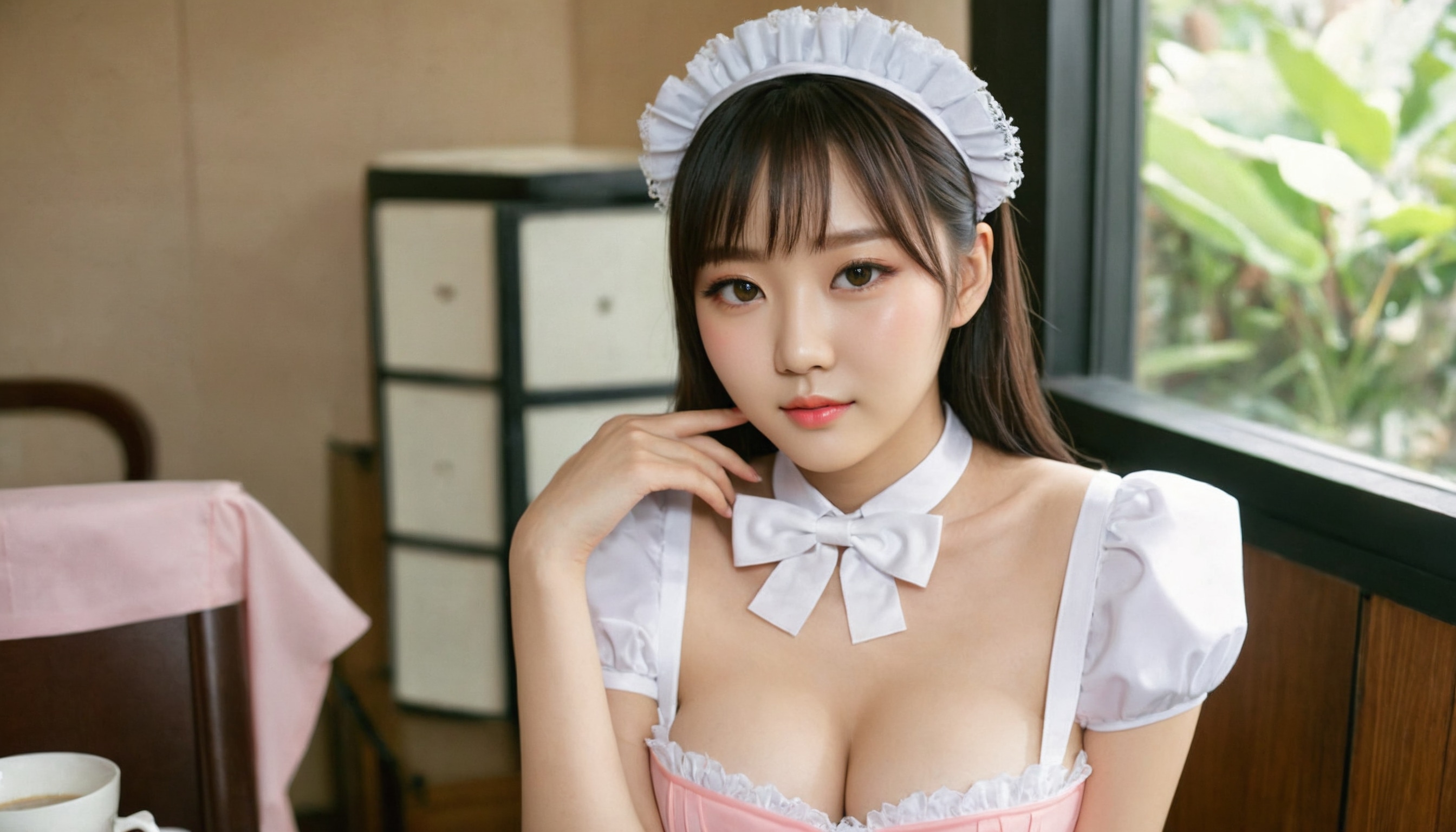 {"3": {"inputs": {"seed": 928529267383227, "steps": 32, "cfg": 7.89, "sampler_name": "dpmpp_2m", "scheduler": "karras", "denoise": 1.0, "model": ["27", 0], "positive": ["6", 0], "negative": ["7", 0], "latent_image": ["5", 0]}, "class_type": "KSampler"}, "4": {"inputs": {"ckpt_name": "juggernautXL_v8Rundiffusion.safetensors"}, "class_type": "CheckpointLoaderSimple"}, "5": {"inputs": {"width": 1344, "height": 768, "batch_size": 1}, "class_type": "EmptyLatentImage"}, "6": {"inputs": {"text": "25 year old girl, (korean:1.07), (japanese:1.08), (chinese:1.14), (double eyelids:1.06), (seductive pose:1.09), (blush:0.97), (beautiful eyes:1.12), (slim:1.02), (idol:1.03), (detailed face:1.04), (pale skin:1.03), (sexy lips:1.00), (temptress:1.09), (seductive facial expression:1.13), (eyelashes:1.14), (cute:1.01), (in a seductive pose:1.11), (large perky breasts:0.96), (cleavage:0.97), (thigh gap:1.09), in a (skimpy maid costume:1.03) working at a maid cafe, choker, bowtie, headband, pleated skirt, (natural looking skin:1.03), (portra:1.04), (RAW:1.08), (skin fuzz:1.07), (soft lighting:1.08), (textured skin:1.00), (film:1.00), (candid cinema:1.03), (detailed skin:1.00)", "clip": ["27", 1]}, "class_type": "CLIPTextEncode"}, "7": {"inputs": {"text": "(worst quality:1.05), (watermark:1.14), (bad hands:1.12), (open mouth:1.05), (twisted:1.07), (low resolution:1.11), (distorted:1.11)", "clip": ["27", 1]}, "class_type": "CLIPTextEncode"}, "8": {"inputs": {"samples": ["3", 0], "vae": ["4", 2]}, "class_type": "VAEDecode"}, "25": {"inputs": {"lora_name": "nudify_xl.safetensors", "strength_model": 0.13, "strength_clip": 0.23, "model": ["4", 0], "clip": ["4", 1]}, "class_type": "LoraLoader"}, "26": {"inputs": {"lora_name": "shirtlift_SDXL_v2.safetensors", "strength_model": 0.01, "strength_clip": 0.01, "model": ["25", 0], "clip": ["25", 1]}, "class_type": "LoraLoader"}, "27": {"inputs": {"lora_name": "PerfectEyesXL.safetensors", "strength_model": 0.12, "strength_clip": 0.01, "model": ["26", 0], "clip": ["26", 1]}, "class_type": "LoraLoader"}, "30": {"inputs": {"model_name": "4x_NMKD-Superscale-SP_178000_G.pth"}, "class_type": "UpscaleModelLoader"}, "31": {"inputs": {"upscale_model": ["30", 0], "image": ["8", 0]}, "class_type": "ImageUpscaleWithModel"}, "32": {"inputs": {"upscale_method": "lanczos", "scale_by": 0.5, "image": ["31", 0]}, "class_type": "ImageScaleBy"}, "33": {"inputs": {"pixels": ["32", 0], "vae": ["4", 2]}, "class_type": "VAEEncode"}, "34": {"inputs": {"seed": 928529267383227, "steps": 32, "cfg": 7.89, "sampler_name": "dpmpp_2m", "scheduler": "karras", "denoise": 0.3, "model": ["27", 0], "positive": ["6", 0], "negative": ["7", 0], "latent_image": ["33", 0]}, "class_type": "KSampler"}, "36": {"inputs": {"samples": ["34", 0], "vae": ["4", 2]}, "class_type": "VAEDecode"}, "39": {"inputs": {"filename_prefix": "comfyapi-1708154749190", "images": ["36", 0]}, "class_type": "SaveImage"}}