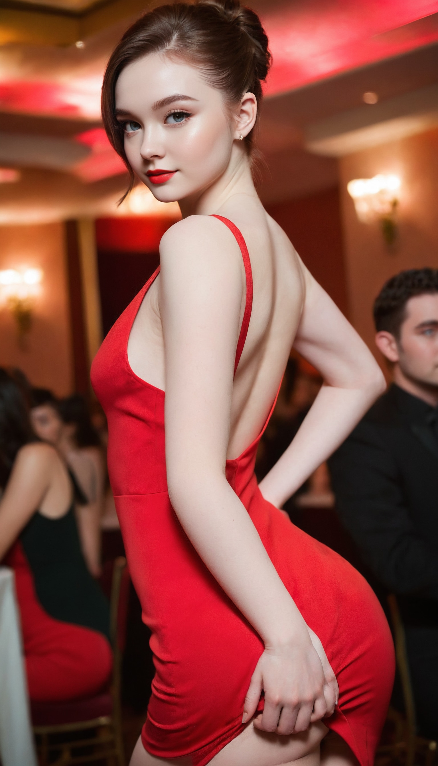 {"3": {"inputs": {"seed": 960358540161107, "steps": 32, "cfg": 6.44, "sampler_name": "dpmpp_2m", "scheduler": "karras", "denoise": 1.0, "model": ["27", 0], "positive": ["6", 0], "negative": ["7", 0], "latent_image": ["5", 0]}, "class_type": "KSampler"}, "4": {"inputs": {"ckpt_name": "juggernautXL_v8Rundiffusion.safetensors"}, "class_type": "CheckpointLoaderSimple"}, "5": {"inputs": {"width": 768, "height": 1344, "batch_size": 1}, "class_type": "EmptyLatentImage"}, "6": {"inputs": {"text": "22 year old girl, (russian:1.03), (irish:1.01), (blush:1.02), (slim:1.01), (detailed face:1.14), (seductive pose:1.04), (double eyelids:1.10), (sexy lips:1.14), (beautiful eyes:0.96), (temptress:1.06), (pale skin:1.12), (eyelashes:1.00), (seductive facial expression:1.13), (idol:1.12), (cute:0.95), (perky ass:1.02), (exposed ass:1.12), (looking back:0.95), (sexy ass:1.04), (thigh gap:1.05), (wearing a low-cut red dress:1.07) at a ballroom, (natural looking skin:1.05), (skin fuzz:1.04), (candid cinema:1.00), (portra:1.06), (RAW:1.05), (detailed skin:1.07), (soft lighting:1.06), (film:1.08), (textured skin:1.03)", "clip": ["27", 1]}, "class_type": "CLIPTextEncode"}, "7": {"inputs": {"text": "(watermark:1.09), (bad hands:1.08), (low resolution:1.11), (distorted:1.05), (open mouth:1.07), (twisted:1.12), (worst quality:1.11)", "clip": ["27", 1]}, "class_type": "CLIPTextEncode"}, "8": {"inputs": {"samples": ["3", 0], "vae": ["4", 2]}, "class_type": "VAEDecode"}, "25": {"inputs": {"lora_name": "nudify_xl.safetensors", "strength_model": 0.24, "strength_clip": 0.38, "model": ["4", 0], "clip": ["4", 1]}, "class_type": "LoraLoader"}, "26": {"inputs": {"lora_name": "shirtlift_SDXL_v2.safetensors", "strength_model": 0.07, "strength_clip": 0.16, "model": ["25", 0], "clip": ["25", 1]}, "class_type": "LoraLoader"}, "27": {"inputs": {"lora_name": "PerfectEyesXL.safetensors", "strength_model": 0.13, "strength_clip": 0.09, "model": ["26", 0], "clip": ["26", 1]}, "class_type": "LoraLoader"}, "30": {"inputs": {"model_name": "4x_NMKD-Superscale-SP_178000_G.pth"}, "class_type": "UpscaleModelLoader"}, "31": {"inputs": {"upscale_model": ["30", 0], "image": ["8", 0]}, "class_type": "ImageUpscaleWithModel"}, "32": {"inputs": {"upscale_method": "lanczos", "scale_by": 0.5, "image": ["31", 0]}, "class_type": "ImageScaleBy"}, "33": {"inputs": {"pixels": ["32", 0], "vae": ["4", 2]}, "class_type": "VAEEncode"}, "34": {"inputs": {"seed": 960358540161107, "steps": 32, "cfg": 6.44, "sampler_name": "dpmpp_2m", "scheduler": "karras", "denoise": 0.3, "model": ["27", 0], "positive": ["6", 0], "negative": ["7", 0], "latent_image": ["33", 0]}, "class_type": "KSampler"}, "36": {"inputs": {"samples": ["34", 0], "vae": ["4", 2]}, "class_type": "VAEDecode"}, "39": {"inputs": {"filename_prefix": "comfyapi-1708168746582", "images": ["36", 0]}, "class_type": "SaveImage"}}
