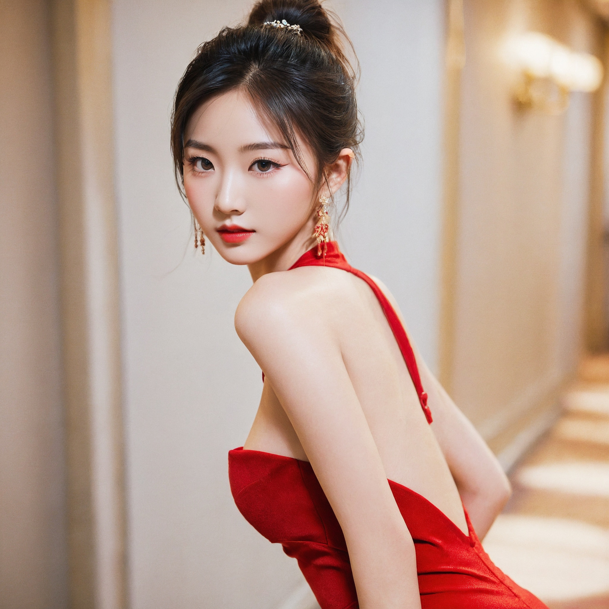 {"3": {"inputs": {"seed": 579391289571591, "steps": 32, "cfg": 6.98, "sampler_name": "dpmpp_2m", "scheduler": "karras", "denoise": 1.0, "model": ["27", 0], "positive": ["6", 0], "negative": ["7", 0], "latent_image": ["5", 0]}, "class_type": "KSampler"}, "4": {"inputs": {"ckpt_name": "leosamsHelloworldSDXL_helloworldSDXL32DPO.safetensors"}, "class_type": "CheckpointLoaderSimple"}, "5": {"inputs": {"width": 1024, "height": 1024, "batch_size": 1}, "class_type": "EmptyLatentImage"}, "6": {"inputs": {"text": "21 year old girl, (chinese:1.05), (eyelashes:1.11), (seductive pose:0.95), (slim:1.08), (sexy lips:0.96), (double eyelids:1.09), (seductive facial expression:0.95), (beautiful eyes:1.13), (detailed face:1.08), (blush:0.98), (temptress:1.06), (idol:1.00), (cute:0.97), (perky ass:1.11), (exposed ass:1.02), (looking back:1.13), (sexy ass:0.98), (thigh gap:0.99), (wearing a low-cut red dress:1.14) at a ballroom, (portra:1.02), (natural looking skin:1.03), (film:1.04), (RAW:1.09), (textured skin:1.02), (soft lighting:1.09), (candid cinema:1.06), (skin fuzz:1.04), (detailed skin:1.03)", "clip": ["27", 1]}, "class_type": "CLIPTextEncode"}, "7": {"inputs": {"text": "(worst quality:1.14), (low resolution:1.08), (bad hands:1.13), (watermark:1.08), (twisted:1.12), (distorted:1.08), (open mouth:1.11)", "clip": ["27", 1]}, "class_type": "CLIPTextEncode"}, "8": {"inputs": {"samples": ["3", 0], "vae": ["4", 2]}, "class_type": "VAEDecode"}, "25": {"inputs": {"lora_name": "nudify_xl.safetensors", "strength_model": 0.03, "strength_clip": 0.07, "model": ["4", 0], "clip": ["4", 1]}, "class_type": "LoraLoader"}, "26": {"inputs": {"lora_name": "shirtlift_SDXL_v2.safetensors", "strength_model": 0.12, "strength_clip": 0.04, "model": ["25", 0], "clip": ["25", 1]}, "class_type": "LoraLoader"}, "27": {"inputs": {"lora_name": "PerfectEyesXL.safetensors", "strength_model": 0.0, "strength_clip": 0.03, "model": ["26", 0], "clip": ["26", 1]}, "class_type": "LoraLoader"}, "30": {"inputs": {"model_name": "4x_NMKD-Superscale-SP_178000_G.pth"}, "class_type": "UpscaleModelLoader"}, "31": {"inputs": {"upscale_model": ["30", 0], "image": ["8", 0]}, "class_type": "ImageUpscaleWithModel"}, "32": {"inputs": {"upscale_method": "lanczos", "scale_by": 0.5, "image": ["31", 0]}, "class_type": "ImageScaleBy"}, "33": {"inputs": {"pixels": ["32", 0], "vae": ["4", 2]}, "class_type": "VAEEncode"}, "34": {"inputs": {"seed": 579391289571591, "steps": 32, "cfg": 6.98, "sampler_name": "dpmpp_2m", "scheduler": "karras", "denoise": 0.3, "model": ["27", 0], "positive": ["6", 0], "negative": ["7", 0], "latent_image": ["33", 0]}, "class_type": "KSampler"}, "36": {"inputs": {"samples": ["34", 0], "vae": ["4", 2]}, "class_type": "VAEDecode"}, "39": {"inputs": {"filename_prefix": "comfyapi-1707475197597", "images": ["36", 0]}, "class_type": "SaveImage"}}