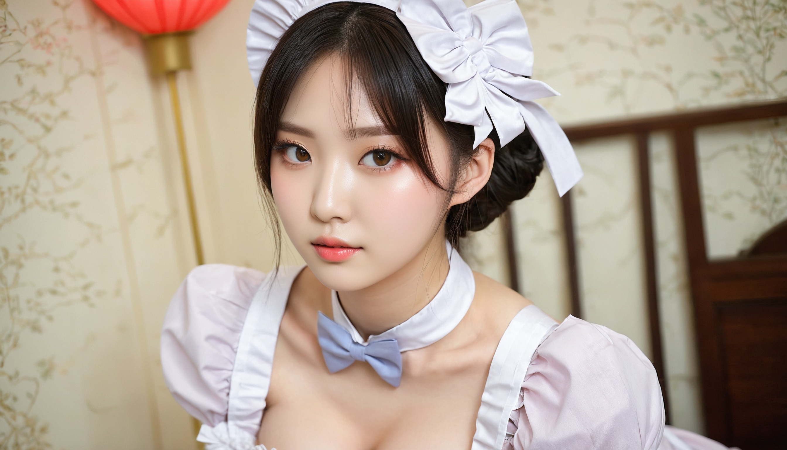{"3": {"inputs": {"seed": 132786190710485, "steps": 64, "cfg": 7.62, "sampler_name": "dpmpp_2m", "scheduler": "karras", "denoise": 1.0, "model": ["27", 0], "positive": ["6", 0], "negative": ["7", 0], "latent_image": ["5", 0]}, "class_type": "KSampler"}, "4": {"inputs": {"ckpt_name": "juggernautxl.safetensors"}, "class_type": "CheckpointLoaderSimple"}, "5": {"inputs": {"width": 1344, "height": 768, "batch_size": 1}, "class_type": "EmptyLatentImage"}, "6": {"inputs": {"text": "21 year old girl, (korean:1.09), (chinese:1.08), (russian:0.99), (taiwanese:0.98), (cute:0.98), (beautiful eyes:1.03), (seductive pose:1.09), (double eyelids:1.07), (detailed face:0.99), (pale skin:1.08), (seductive facial expression:1.10), (slim:1.00), (sexy lips:0.98), (blush:1.06), (temptress:0.96), (eyelashes:1.02), (idol:1.06), (on all fours:0.99), (spreading ass cheeks:0.96), (from behind:1.14), (backboob:1.01), in a (skimpy maid costume:1.13) working at a maid cafe, choker, bowtie, headband, pleated skirt, (portra:1.09), (skin fuzz:1.08), (candid cinema:1.03), (RAW:1.07), (textured skin:1.09), (detailed skin:1.03), (soft lighting:1.05), (film:1.01), (natural looking skin:1.05)", "clip": ["27", 1]}, "class_type": "CLIPTextEncode"}, "7": {"inputs": {"text": "(watermark:1.11), (open mouth:1.13), (distorted:1.14), (twisted:1.12), (low resolution:1.09), (worst quality:1.09), (bad hands:1.06)", "clip": ["27", 1]}, "class_type": "CLIPTextEncode"}, "8": {"inputs": {"samples": ["3", 0], "vae": ["4", 2]}, "class_type": "VAEDecode"}, "25": {"inputs": {"lora_name": "nudify_xl.safetensors", "strength_model": 0.32, "strength_clip": 0.01, "model": ["4", 0], "clip": ["4", 1]}, "class_type": "LoraLoader"}, "26": {"inputs": {"lora_name": "shirtlift_SDXL_v2.safetensors", "strength_model": 0.12, "strength_clip": 0.0, "model": ["25", 0], "clip": ["25", 1]}, "class_type": "LoraLoader"}, "27": {"inputs": {"lora_name": "PerfectEyesXL.safetensors", "strength_model": 0.15, "strength_clip": 0.19, "model": ["26", 0], "clip": ["26", 1]}, "class_type": "LoraLoader"}, "30": {"inputs": {"model_name": "4x_NMKD-Superscale-SP_178000_G.pth"}, "class_type": "UpscaleModelLoader"}, "31": {"inputs": {"upscale_model": ["30", 0], "image": ["8", 0]}, "class_type": "ImageUpscaleWithModel"}, "32": {"inputs": {"upscale_method": "lanczos", "scale_by": 0.5, "image": ["31", 0]}, "class_type": "ImageScaleBy"}, "33": {"inputs": {"pixels": ["32", 0], "vae": ["4", 2]}, "class_type": "VAEEncode"}, "34": {"inputs": {"seed": 132786190710485, "steps": 64, "cfg": 7.62, "sampler_name": "dpmpp_2m", "scheduler": "karras", "denoise": 0.3, "model": ["27", 0], "positive": ["6", 0], "negative": ["7", 0], "latent_image": ["33", 0]}, "class_type": "KSampler"}, "36": {"inputs": {"samples": ["34", 0], "vae": ["4", 2]}, "class_type": "VAEDecode"}, "39": {"inputs": {"filename_prefix": "comfyapi-1714515606058", "images": ["36", 0]}, "class_type": "SaveImage"}}