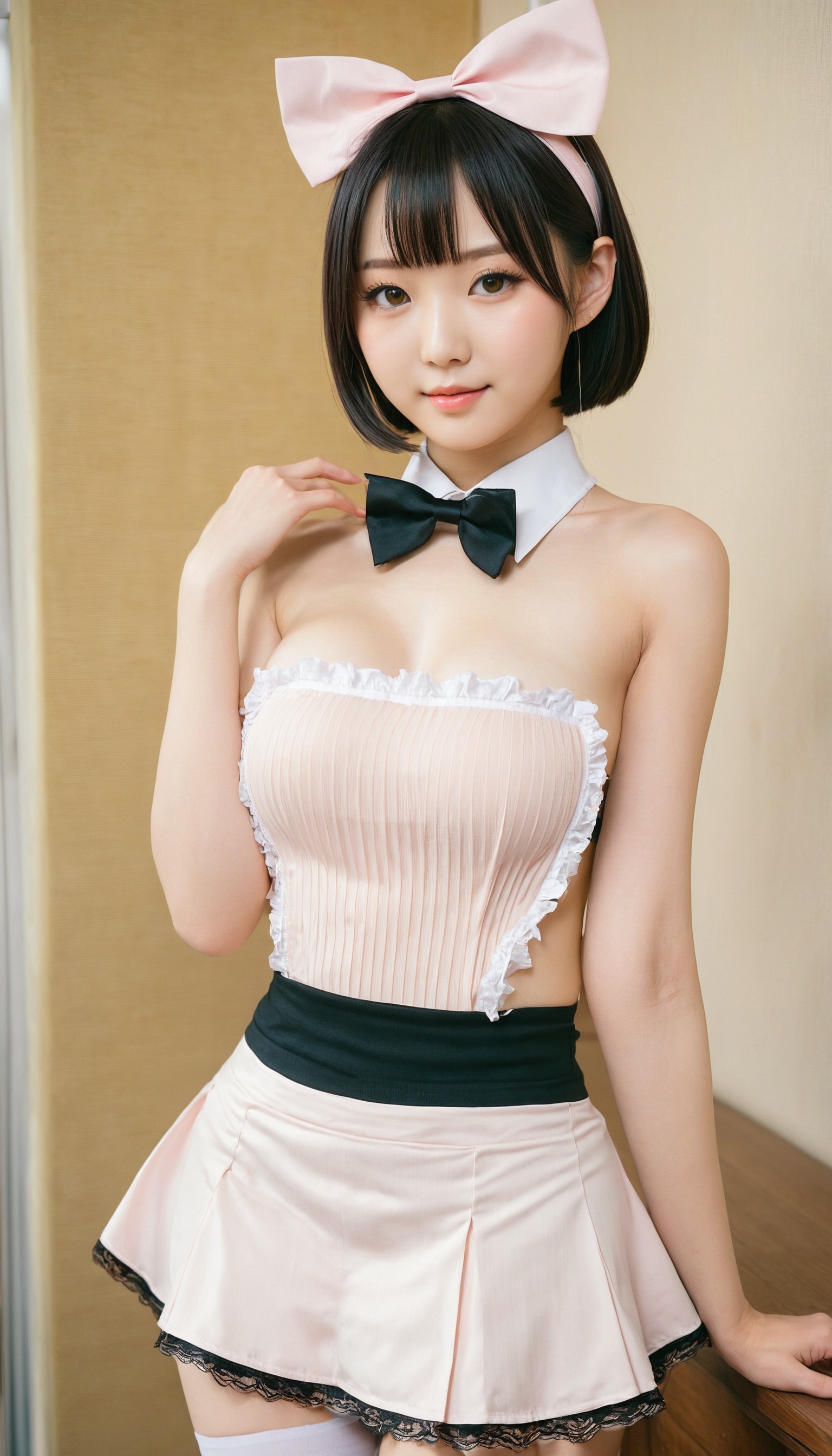 {"3": {"inputs": {"seed": 316952865863803, "steps": 32, "cfg": 7.63, "sampler_name": "dpmpp_2m", "scheduler": "karras", "denoise": 1.0, "model": ["27", 0], "positive": ["6", 0], "negative": ["7", 0], "latent_image": ["5", 0]}, "class_type": "KSampler"}, "4": {"inputs": {"ckpt_name": "juggernautxl.safetensors"}, "class_type": "CheckpointLoaderSimple"}, "5": {"inputs": {"width": 768, "height": 1344, "batch_size": 1}, "class_type": "EmptyLatentImage"}, "6": {"inputs": {"text": "18 year old girl, (japanese:1.06), (seductive pose:1.09), (temptress:1.12), (cute:1.12), (seductive facial expression:1.10), (slim:1.11), (beautiful eyes:1.06), (detailed face:1.11), (sexy lips:1.07), (eyelashes:1.08), (blush:0.97), (double eyelids:0.99), (idol:0.98), (pale skin:0.95), (perky ass:0.98), (exposed ass:1.10), (looking back:0.98), (sexy ass:1.14), (thigh gap:1.10), in a (skimpy maid costume:0.95) working at a maid cafe, choker, bowtie, headband, pleated skirt, (detailed skin:1.06), (textured skin:1.05), (film:1.07), (RAW:1.06), (portra:1.01), (candid cinema:1.04), (soft lighting:1.00), (skin fuzz:1.07), (natural looking skin:1.04)", "clip": ["27", 1]}, "class_type": "CLIPTextEncode"}, "7": {"inputs": {"text": "(twisted:1.11), (watermark:1.06), (low resolution:1.14), (open mouth:1.12), (worst quality:1.10), (distorted:1.09), (bad hands:1.07)", "clip": ["27", 1]}, "class_type": "CLIPTextEncode"}, "8": {"inputs": {"samples": ["3", 0], "vae": ["4", 2]}, "class_type": "VAEDecode"}, "25": {"inputs": {"lora_name": "nudify_xl.safetensors", "strength_model": 0.08, "strength_clip": 0.32, "model": ["4", 0], "clip": ["4", 1]}, "class_type": "LoraLoader"}, "26": {"inputs": {"lora_name": "shirtlift_SDXL_v2.safetensors", "strength_model": 0.18, "strength_clip": 0.08, "model": ["25", 0], "clip": ["25", 1]}, "class_type": "LoraLoader"}, "27": {"inputs": {"lora_name": "PerfectEyesXL.safetensors", "strength_model": 0.09, "strength_clip": 0.06, "model": ["26", 0], "clip": ["26", 1]}, "class_type": "LoraLoader"}, "30": {"inputs": {"model_name": "4x_NMKD-Superscale-SP_178000_G.pth"}, "class_type": "UpscaleModelLoader"}, "31": {"inputs": {"upscale_model": ["30", 0], "image": ["8", 0]}, "class_type": "ImageUpscaleWithModel"}, "32": {"inputs": {"upscale_method": "lanczos", "scale_by": 0.5, "image": ["31", 0]}, "class_type": "ImageScaleBy"}, "33": {"inputs": {"pixels": ["32", 0], "vae": ["4", 2]}, "class_type": "VAEEncode"}, "34": {"inputs": {"seed": 316952865863803, "steps": 32, "cfg": 7.63, "sampler_name": "dpmpp_2m", "scheduler": "karras", "denoise": 0.3, "model": ["27", 0], "positive": ["6", 0], "negative": ["7", 0], "latent_image": ["33", 0]}, "class_type": "KSampler"}, "36": {"inputs": {"samples": ["34", 0], "vae": ["4", 2]}, "class_type": "VAEDecode"}, "39": {"inputs": {"filename_prefix": "comfyapi-1724256029229", "images": ["36", 0]}, "class_type": "SaveImage"}}