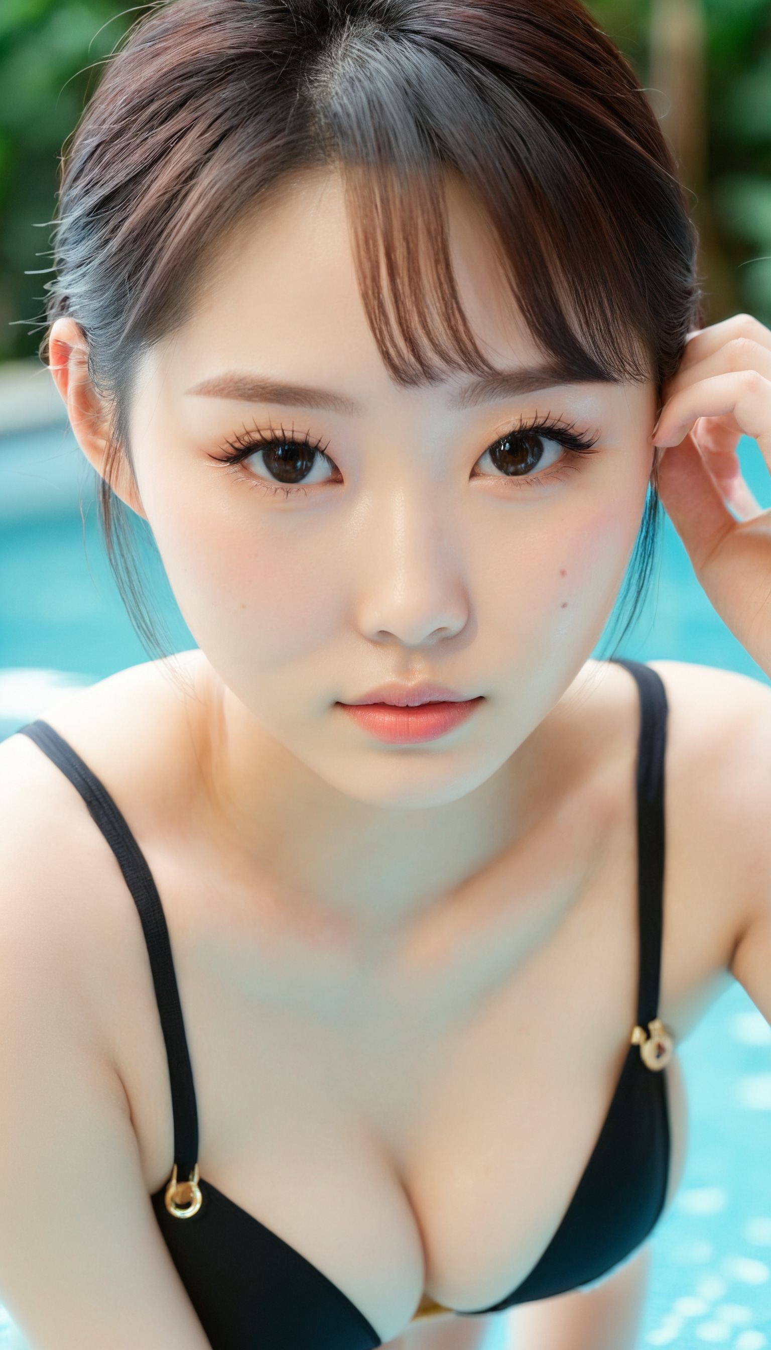 {"3": {"inputs": {"seed": 499879668574771, "steps": 64, "cfg": 7.2, "sampler_name": "dpmpp_2m", "scheduler": "karras", "denoise": 1.0, "model": ["27", 0], "positive": ["6", 0], "negative": ["7", 0], "latent_image": ["5", 0]}, "class_type": "KSampler"}, "4": {"inputs": {"ckpt_name": "juggernautxl.safetensors"}, "class_type": "CheckpointLoaderSimple"}, "5": {"inputs": {"width": 768, "height": 1344, "batch_size": 1}, "class_type": "EmptyLatentImage"}, "6": {"inputs": {"text": "18 year old girl, (taiwanese:1.11), (korean:1.13), (slim:1.05), (temptress:1.08), (eyelashes:1.02), (cute:1.08), (double eyelids:1.12), (blush:0.96), (beautiful eyes:0.96), (sexy lips:1.08), (pale skin:0.98), (idol:0.95), (seductive pose:1.06), (seductive facial expression:0.97), (detailed face:1.06), (in a seductive pose:1.06), (large perky breasts:0.95), (cleavage:0.95), (thigh gap:1.05), (in a swimsuit:0.97) at a pool, (candid cinema:1.06), (skin fuzz:1.02), (textured skin:1.01), (soft lighting:1.07), (RAW:1.03), (detailed skin:1.04), (natural looking skin:1.05), (portra:1.07), (film:1.01)", "clip": ["27", 1]}, "class_type": "CLIPTextEncode"}, "7": {"inputs": {"text": "(distorted:1.07), (watermark:1.06), (low resolution:1.06), (twisted:1.14), (bad hands:1.08), (open mouth:1.13), (worst quality:1.10)", "clip": ["27", 1]}, "class_type": "CLIPTextEncode"}, "8": {"inputs": {"samples": ["3", 0], "vae": ["4", 2]}, "class_type": "VAEDecode"}, "25": {"inputs": {"lora_name": "nudify_xl.safetensors", "strength_model": 0.31, "strength_clip": 0.0, "model": ["4", 0], "clip": ["4", 1]}, "class_type": "LoraLoader"}, "26": {"inputs": {"lora_name": "shirtlift_SDXL_v2.safetensors", "strength_model": 0.03, "strength_clip": 0.05, "model": ["25", 0], "clip": ["25", 1]}, "class_type": "LoraLoader"}, "27": {"inputs": {"lora_name": "PerfectEyesXL.safetensors", "strength_model": 0.06, "strength_clip": 0.07, "model": ["26", 0], "clip": ["26", 1]}, "class_type": "LoraLoader"}, "30": {"inputs": {"model_name": "4x_NMKD-Superscale-SP_178000_G.pth"}, "class_type": "UpscaleModelLoader"}, "31": {"inputs": {"upscale_model": ["30", 0], "image": ["8", 0]}, "class_type": "ImageUpscaleWithModel"}, "32": {"inputs": {"upscale_method": "lanczos", "scale_by": 0.5, "image": ["31", 0]}, "class_type": "ImageScaleBy"}, "33": {"inputs": {"pixels": ["32", 0], "vae": ["4", 2]}, "class_type": "VAEEncode"}, "34": {"inputs": {"seed": 499879668574771, "steps": 64, "cfg": 7.2, "sampler_name": "dpmpp_2m", "scheduler": "karras", "denoise": 0.3, "model": ["27", 0], "positive": ["6", 0], "negative": ["7", 0], "latent_image": ["33", 0]}, "class_type": "KSampler"}, "36": {"inputs": {"samples": ["34", 0], "vae": ["4", 2]}, "class_type": "VAEDecode"}, "39": {"inputs": {"filename_prefix": "comfyapi-1716750960042", "images": ["36", 0]}, "class_type": "SaveImage"}}