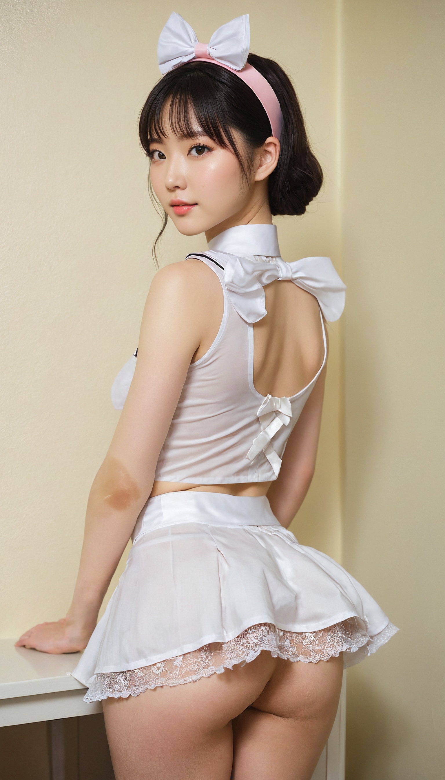 {"3": {"inputs": {"seed": 639214493653642, "steps": 64, "cfg": 7.05, "sampler_name": "dpmpp_2m", "scheduler": "karras", "denoise": 1.0, "model": ["27", 0], "positive": ["6", 0], "negative": ["7", 0], "latent_image": ["5", 0]}, "class_type": "KSampler"}, "4": {"inputs": {"ckpt_name": "juggernautxl.safetensors"}, "class_type": "CheckpointLoaderSimple"}, "5": {"inputs": {"width": 768, "height": 1344, "batch_size": 1}, "class_type": "EmptyLatentImage"}, "6": {"inputs": {"text": "24 year old girl, (korean:1.01), (ukrainian:1.10), (irish:0.96), (slim:1.07), (blush:1.02), (seductive facial expression:1.10), (sexy lips:1.02), (cute:1.12), (seductive pose:0.95), (temptress:1.14), (idol:1.06), (eyelashes:1.10), (detailed face:1.08), (pale skin:1.05), (beautiful eyes:1.03), (perky ass:1.09), (exposed ass:1.06), (looking back:1.08), (sexy ass:1.03), (thigh gap:1.03), in a (skimpy maid costume:1.05) working at a maid cafe, choker, bowtie, headband, pleated skirt, (natural looking skin:1.09), (skin fuzz:1.07), (portra:1.08), (soft lighting:1.07), (textured skin:1.01), (detailed skin:1.02), (film:1.00), (RAW:1.02), (candid cinema:1.07)", "clip": ["27", 1]}, "class_type": "CLIPTextEncode"}, "7": {"inputs": {"text": "(low resolution:1.08), (twisted:1.08), (worst quality:1.13), (watermark:1.07), (open mouth:1.14), (bad hands:1.13), (distorted:1.07)", "clip": ["27", 1]}, "class_type": "CLIPTextEncode"}, "8": {"inputs": {"samples": ["3", 0], "vae": ["4", 2]}, "class_type": "VAEDecode"}, "25": {"inputs": {"lora_name": "nudify_xl.safetensors", "strength_model": 0.01, "strength_clip": 0.35, "model": ["4", 0], "clip": ["4", 1]}, "class_type": "LoraLoader"}, "26": {"inputs": {"lora_name": "shirtlift_SDXL_v2.safetensors", "strength_model": 0.11, "strength_clip": 0.17, "model": ["25", 0], "clip": ["25", 1]}, "class_type": "LoraLoader"}, "27": {"inputs": {"lora_name": "PerfectEyesXL.safetensors", "strength_model": 0.14, "strength_clip": 0.1, "model": ["26", 0], "clip": ["26", 1]}, "class_type": "LoraLoader"}, "30": {"inputs": {"model_name": "4x_NMKD-Superscale-SP_178000_G.pth"}, "class_type": "UpscaleModelLoader"}, "31": {"inputs": {"upscale_model": ["30", 0], "image": ["8", 0]}, "class_type": "ImageUpscaleWithModel"}, "32": {"inputs": {"upscale_method": "lanczos", "scale_by": 0.5, "image": ["31", 0]}, "class_type": "ImageScaleBy"}, "33": {"inputs": {"pixels": ["32", 0], "vae": ["4", 2]}, "class_type": "VAEEncode"}, "34": {"inputs": {"seed": 639214493653642, "steps": 64, "cfg": 7.05, "sampler_name": "dpmpp_2m", "scheduler": "karras", "denoise": 0.3, "model": ["27", 0], "positive": ["6", 0], "negative": ["7", 0], "latent_image": ["33", 0]}, "class_type": "KSampler"}, "36": {"inputs": {"samples": ["34", 0], "vae": ["4", 2]}, "class_type": "VAEDecode"}, "39": {"inputs": {"filename_prefix": "comfyapi-1734585388976", "images": ["36", 0]}, "class_type": "SaveImage"}}
