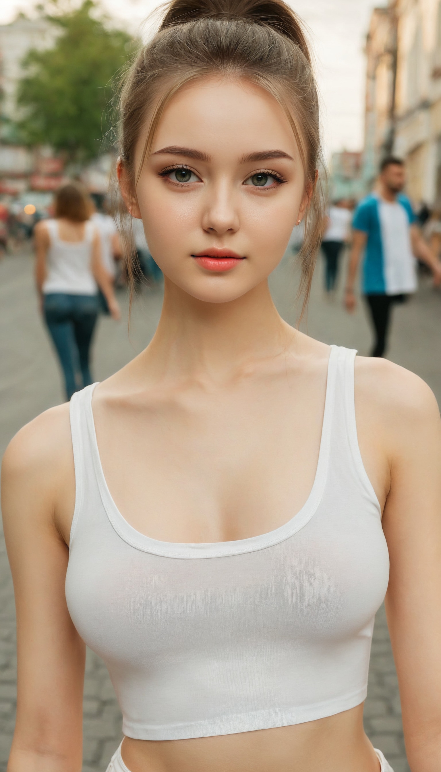 {"3": {"inputs": {"seed": 624987394013627, "steps": 32, "cfg": 5.97, "sampler_name": "dpmpp_2m", "scheduler": "karras", "denoise": 1.0, "model": ["27", 0], "positive": ["6", 0], "negative": ["7", 0], "latent_image": ["5", 0]}, "class_type": "KSampler"}, "4": {"inputs": {"ckpt_name": "juggernautXL_v8Rundiffusion.safetensors"}, "class_type": "CheckpointLoaderSimple"}, "5": {"inputs": {"width": 768, "height": 1344, "batch_size": 1}, "class_type": "EmptyLatentImage"}, "6": {"inputs": {"text": "20 year old girl, (russian:1.05), (ukrainian:1.12), (seductive facial expression:1.05), (slim:0.97), (temptress:0.99), (seductive pose:1.01), (cute:1.11), (detailed face:1.11), (beautiful eyes:1.03), (double eyelids:1.10), (pale skin:1.12), (eyelashes:1.03), (idol:1.01), (sexy lips:0.99), (perky ass:1.12), (exposed ass:1.06), (looking back:1.04), (sexy ass:1.06), (thigh gap:1.07), (white tanktop:1.10), busy street, (skin fuzz:1.01), (candid cinema:1.04), (film:1.01), (detailed skin:1.01), (portra:1.02), (soft lighting:1.08), (RAW:1.05), (textured skin:1.08), (natural looking skin:1.07)", "clip": ["27", 1]}, "class_type": "CLIPTextEncode"}, "7": {"inputs": {"text": "(distorted:1.10), (watermark:1.05), (low resolution:1.06), (twisted:1.14), (bad hands:1.09), (worst quality:1.08), (open mouth:1.10)", "clip": ["27", 1]}, "class_type": "CLIPTextEncode"}, "8": {"inputs": {"samples": ["3", 0], "vae": ["4", 2]}, "class_type": "VAEDecode"}, "25": {"inputs": {"lora_name": "nudify_xl.safetensors", "strength_model": 0.38, "strength_clip": 0.1, "model": ["4", 0], "clip": ["4", 1]}, "class_type": "LoraLoader"}, "26": {"inputs": {"lora_name": "shirtlift_SDXL_v2.safetensors", "strength_model": 0.03, "strength_clip": 0.06, "model": ["25", 0], "clip": ["25", 1]}, "class_type": "LoraLoader"}, "27": {"inputs": {"lora_name": "PerfectEyesXL.safetensors", "strength_model": 0.17, "strength_clip": 0.14, "model": ["26", 0], "clip": ["26", 1]}, "class_type": "LoraLoader"}, "30": {"inputs": {"model_name": "4x_NMKD-Superscale-SP_178000_G.pth"}, "class_type": "UpscaleModelLoader"}, "31": {"inputs": {"upscale_model": ["30", 0], "image": ["8", 0]}, "class_type": "ImageUpscaleWithModel"}, "32": {"inputs": {"upscale_method": "lanczos", "scale_by": 0.5, "image": ["31", 0]}, "class_type": "ImageScaleBy"}, "33": {"inputs": {"pixels": ["32", 0], "vae": ["4", 2]}, "class_type": "VAEEncode"}, "34": {"inputs": {"seed": 624987394013627, "steps": 32, "cfg": 5.97, "sampler_name": "dpmpp_2m", "scheduler": "karras", "denoise": 0.3, "model": ["27", 0], "positive": ["6", 0], "negative": ["7", 0], "latent_image": ["33", 0]}, "class_type": "KSampler"}, "36": {"inputs": {"samples": ["34", 0], "vae": ["4", 2]}, "class_type": "VAEDecode"}, "39": {"inputs": {"filename_prefix": "comfyapi-1707854686710", "images": ["36", 0]}, "class_type": "SaveImage"}}