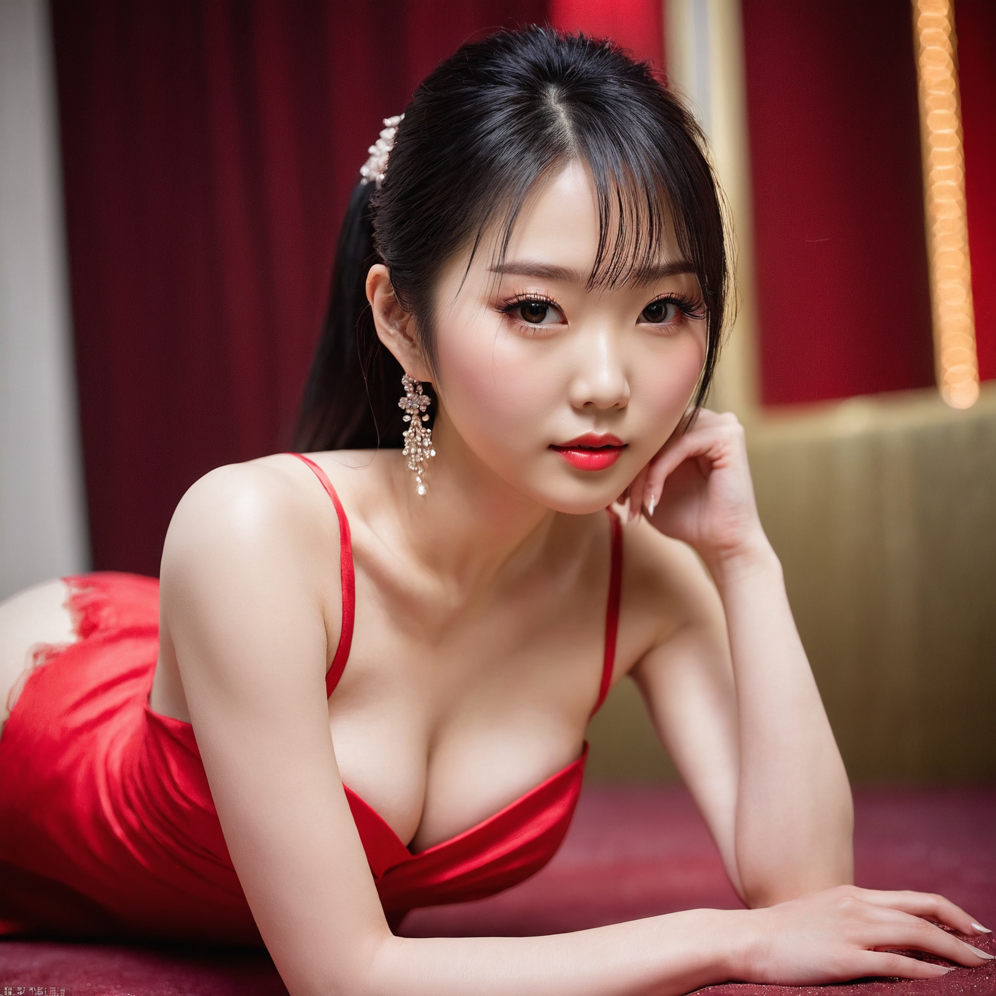 {"3": {"inputs": {"seed": 145270913917945, "steps": 32, "cfg": 7.23, "sampler_name": "dpmpp_2m", "scheduler": "karras", "denoise": 1.0, "model": ["27", 0], "positive": ["6", 0], "negative": ["7", 0], "latent_image": ["5", 0]}, "class_type": "KSampler"}, "4": {"inputs": {"ckpt_name": "juggernautxl.safetensors"}, "class_type": "CheckpointLoaderSimple"}, "5": {"inputs": {"width": 1024, "height": 1024, "batch_size": 1}, "class_type": "EmptyLatentImage"}, "6": {"inputs": {"text": "22 year old girl, (korean:1.09), (chinese:1.11), (temptress:0.98), (idol:1.03), (seductive pose:1.00), (detailed face:1.01), (slim:1.01), (eyelashes:1.00), (blush:1.08), (seductive facial expression:0.97), (beautiful eyes:0.98), (sexy lips:1.04), (pale skin:1.05), (cute:0.99), (on all fours:1.02), (spreading ass cheeks:1.04), (from behind:1.09), (backboob:1.02), (wearing a low-cut red dress:1.01) at a ballroom, (portra:1.05), (soft lighting:1.08), (candid cinema:1.04), (skin fuzz:1.03), (natural looking skin:1.06), (textured skin:1.07), (RAW:1.05), (film:1.09), (detailed skin:1.05)", "clip": ["27", 1]}, "class_type": "CLIPTextEncode"}, "7": {"inputs": {"text": "(worst quality:1.12), (low resolution:1.09), (open mouth:1.12), (bad hands:1.13), (watermark:1.11), (distorted:1.09), (twisted:1.12)", "clip": ["27", 1]}, "class_type": "CLIPTextEncode"}, "8": {"inputs": {"samples": ["3", 0], "vae": ["4", 2]}, "class_type": "VAEDecode"}, "25": {"inputs": {"lora_name": "nudify_xl.safetensors", "strength_model": 0.03, "strength_clip": 0.33, "model": ["4", 0], "clip": ["4", 1]}, "class_type": "LoraLoader"}, "26": {"inputs": {"lora_name": "shirtlift_SDXL_v2.safetensors", "strength_model": 0.09, "strength_clip": 0.18, "model": ["25", 0], "clip": ["25", 1]}, "class_type": "LoraLoader"}, "27": {"inputs": {"lora_name": "PerfectEyesXL.safetensors", "strength_model": 0.13, "strength_clip": 0.02, "model": ["26", 0], "clip": ["26", 1]}, "class_type": "LoraLoader"}, "30": {"inputs": {"model_name": "4x_NMKD-Superscale-SP_178000_G.pth"}, "class_type": "UpscaleModelLoader"}, "31": {"inputs": {"upscale_model": ["30", 0], "image": ["8", 0]}, "class_type": "ImageUpscaleWithModel"}, "32": {"inputs": {"upscale_method": "lanczos", "scale_by": 0.5, "image": ["31", 0]}, "class_type": "ImageScaleBy"}, "33": {"inputs": {"pixels": ["32", 0], "vae": ["4", 2]}, "class_type": "VAEEncode"}, "34": {"inputs": {"seed": 145270913917945, "steps": 32, "cfg": 7.23, "sampler_name": "dpmpp_2m", "scheduler": "karras", "denoise": 0.3, "model": ["27", 0], "positive": ["6", 0], "negative": ["7", 0], "latent_image": ["33", 0]}, "class_type": "KSampler"}, "36": {"inputs": {"samples": ["34", 0], "vae": ["4", 2]}, "class_type": "VAEDecode"}, "39": {"inputs": {"filename_prefix": "comfyapi-1731950388121", "images": ["36", 0]}, "class_type": "SaveImage"}}