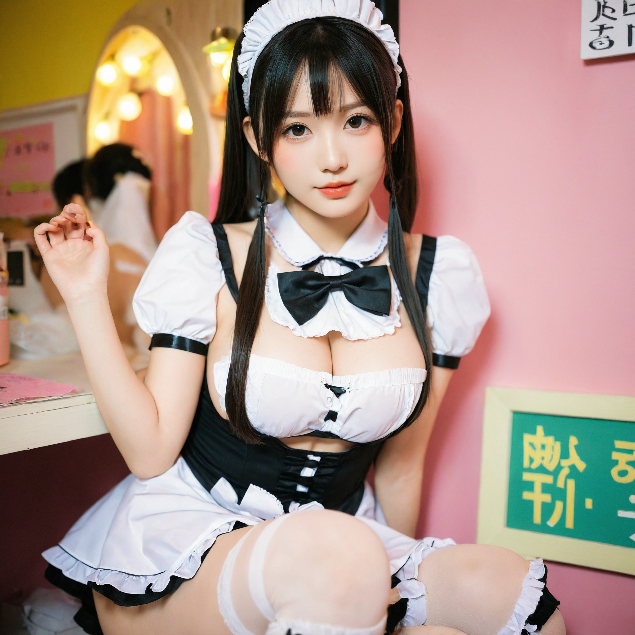 {"3": {"inputs": {"seed": 511726358743078, "steps": 32, "cfg": 6.23, "sampler_name": "dpmpp_2m", "scheduler": "karras", "denoise": 1.0, "model": ["27", 0], "positive": ["6", 0], "negative": ["7", 0], "latent_image": ["5", 0]}, "class_type": "KSampler"}, "4": {"inputs": {"ckpt_name": "helloworldxl.safetensors"}, "class_type": "CheckpointLoaderSimple"}, "5": {"inputs": {"width": 1024, "height": 1024, "batch_size": 1}, "class_type": "EmptyLatentImage"}, "6": {"inputs": {"text": "21 year old girl, (japanese:1.12), (taiwanese:1.04), (russian:1.06), (blush:1.07), (detailed face:1.10), (eyelashes:0.95), (sexy lips:1.14), (idol:1.05), (pale skin:1.09), (double eyelids:1.00), (seductive pose:0.96), (slim:1.01), (cute:1.07), (temptress:1.07), (in a seductive pose:0.96), (large perky breasts:1.05), (cleavage:1.07), (thigh gap:1.11), in a (skimpy maid costume:1.10) working at a maid cafe, choker, bowtie, headband, pleated skirt, (skin fuzz:1.00), (detailed skin:1.00), (textured skin:1.01), (natural looking skin:1.09), (portra:1.00), (RAW:1.09), (candid cinema:1.01), (soft lighting:1.06), (film:1.03)", "clip": ["27", 1]}, "class_type": "CLIPTextEncode"}, "7": {"inputs": {"text": "(twisted:1.05), (open mouth:1.13), (bad hands:1.05), (low resolution:1.13), (distorted:1.11), (worst quality:1.14), (watermark:1.14)", "clip": ["27", 1]}, "class_type": "CLIPTextEncode"}, "8": {"inputs": {"samples": ["3", 0], "vae": ["4", 2]}, "class_type": "VAEDecode"}, "25": {"inputs": {"lora_name": "nudify_xl.safetensors", "strength_model": 0.06, "strength_clip": 0.34, "model": ["4", 0], "clip": ["4", 1]}, "class_type": "LoraLoader"}, "26": {"inputs": {"lora_name": "shirtlift_SDXL_v2.safetensors", "strength_model": 0.12, "strength_clip": 0.05, "model": ["25", 0], "clip": ["25", 1]}, "class_type": "LoraLoader"}, "27": {"inputs": {"lora_name": "PerfectEyesXL.safetensors", "strength_model": 0.08, "strength_clip": 0.15, "model": ["26", 0], "clip": ["26", 1]}, "class_type": "LoraLoader"}, "30": {"inputs": {"model_name": "4x_NMKD-Superscale-SP_178000_G.pth"}, "class_type": "UpscaleModelLoader"}, "31": {"inputs": {"upscale_model": ["30", 0], "image": ["8", 0]}, "class_type": "ImageUpscaleWithModel"}, "32": {"inputs": {"upscale_method": "lanczos", "scale_by": 0.5, "image": ["31", 0]}, "class_type": "ImageScaleBy"}, "33": {"inputs": {"pixels": ["32", 0], "vae": ["4", 2]}, "class_type": "VAEEncode"}, "34": {"inputs": {"seed": 511726358743078, "steps": 32, "cfg": 6.23, "sampler_name": "dpmpp_2m", "scheduler": "karras", "denoise": 0.3, "model": ["27", 0], "positive": ["6", 0], "negative": ["7", 0], "latent_image": ["33", 0]}, "class_type": "KSampler"}, "36": {"inputs": {"samples": ["34", 0], "vae": ["4", 2]}, "class_type": "VAEDecode"}, "39": {"inputs": {"filename_prefix": "comfyapi-1716537133623", "images": ["36", 0]}, "class_type": "SaveImage"}}
