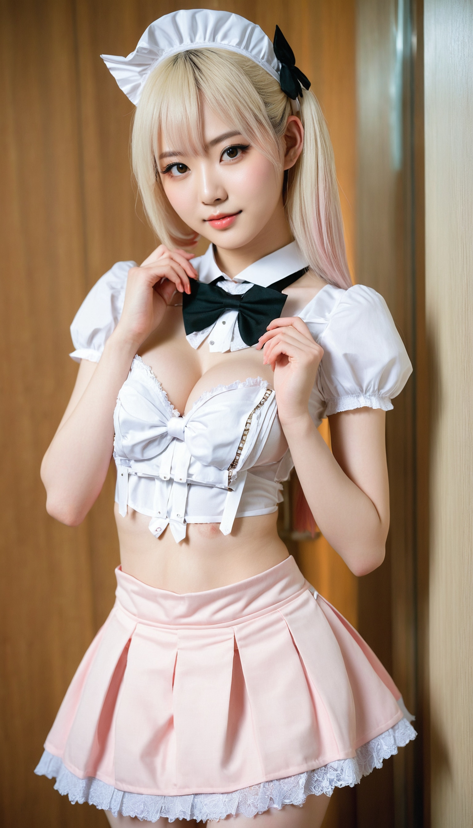 {"3": {"inputs": {"seed": 252196812517312, "steps": 64, "cfg": 7.81, "sampler_name": "dpmpp_2m", "scheduler": "karras", "denoise": 1.0, "model": ["27", 0], "positive": ["6", 0], "negative": ["7", 0], "latent_image": ["5", 0]}, "class_type": "KSampler"}, "4": {"inputs": {"ckpt_name": "juggernautxl.safetensors"}, "class_type": "CheckpointLoaderSimple"}, "5": {"inputs": {"width": 768, "height": 1344, "batch_size": 1}, "class_type": "EmptyLatentImage"}, "6": {"inputs": {"text": "19 year old girl, (taiwanese:1.01), (slim:1.06), (beautiful eyes:1.07), (pale skin:1.05), (idol:1.04), (seductive pose:1.03), (detailed face:1.13), (seductive facial expression:1.13), (temptress:0.95), (sexy lips:1.05), (double eyelids:1.08), (blush:0.95), (eyelashes:0.97), (in a seductive pose:1.12), (large perky breasts:0.97), (cleavage:1.09), (thigh gap:1.06), in a (skimpy maid costume:1.12) working at a maid cafe, choker, bowtie, headband, pleated skirt, (soft lighting:1.04), (detailed skin:1.09), (film:1.07), (portra:1.08), (skin fuzz:1.05), (candid cinema:1.04), (natural looking skin:1.00), (textured skin:1.09), (RAW:1.07)", "clip": ["27", 1]}, "class_type": "CLIPTextEncode"}, "7": {"inputs": {"text": "(bad hands:1.06), (open mouth:1.14), (watermark:1.06), (distorted:1.12), (worst quality:1.06), (twisted:1.07), (low resolution:1.06)", "clip": ["27", 1]}, "class_type": "CLIPTextEncode"}, "8": {"inputs": {"samples": ["3", 0], "vae": ["4", 2]}, "class_type": "VAEDecode"}, "25": {"inputs": {"lora_name": "nudify_xl.safetensors", "strength_model": 0.03, "strength_clip": 0.39, "model": ["4", 0], "clip": ["4", 1]}, "class_type": "LoraLoader"}, "26": {"inputs": {"lora_name": "shirtlift_SDXL_v2.safetensors", "strength_model": 0.06, "strength_clip": 0.19, "model": ["25", 0], "clip": ["25", 1]}, "class_type": "LoraLoader"}, "27": {"inputs": {"lora_name": "PerfectEyesXL.safetensors", "strength_model": 0.01, "strength_clip": 0.12, "model": ["26", 0], "clip": ["26", 1]}, "class_type": "LoraLoader"}, "30": {"inputs": {"model_name": "4x_NMKD-Superscale-SP_178000_G.pth"}, "class_type": "UpscaleModelLoader"}, "31": {"inputs": {"upscale_model": ["30", 0], "image": ["8", 0]}, "class_type": "ImageUpscaleWithModel"}, "32": {"inputs": {"upscale_method": "lanczos", "scale_by": 0.5, "image": ["31", 0]}, "class_type": "ImageScaleBy"}, "33": {"inputs": {"pixels": ["32", 0], "vae": ["4", 2]}, "class_type": "VAEEncode"}, "34": {"inputs": {"seed": 252196812517312, "steps": 64, "cfg": 7.81, "sampler_name": "dpmpp_2m", "scheduler": "karras", "denoise": 0.3, "model": ["27", 0], "positive": ["6", 0], "negative": ["7", 0], "latent_image": ["33", 0]}, "class_type": "KSampler"}, "36": {"inputs": {"samples": ["34", 0], "vae": ["4", 2]}, "class_type": "VAEDecode"}, "39": {"inputs": {"filename_prefix": "comfyapi-1714626563802", "images": ["36", 0]}, "class_type": "SaveImage"}}