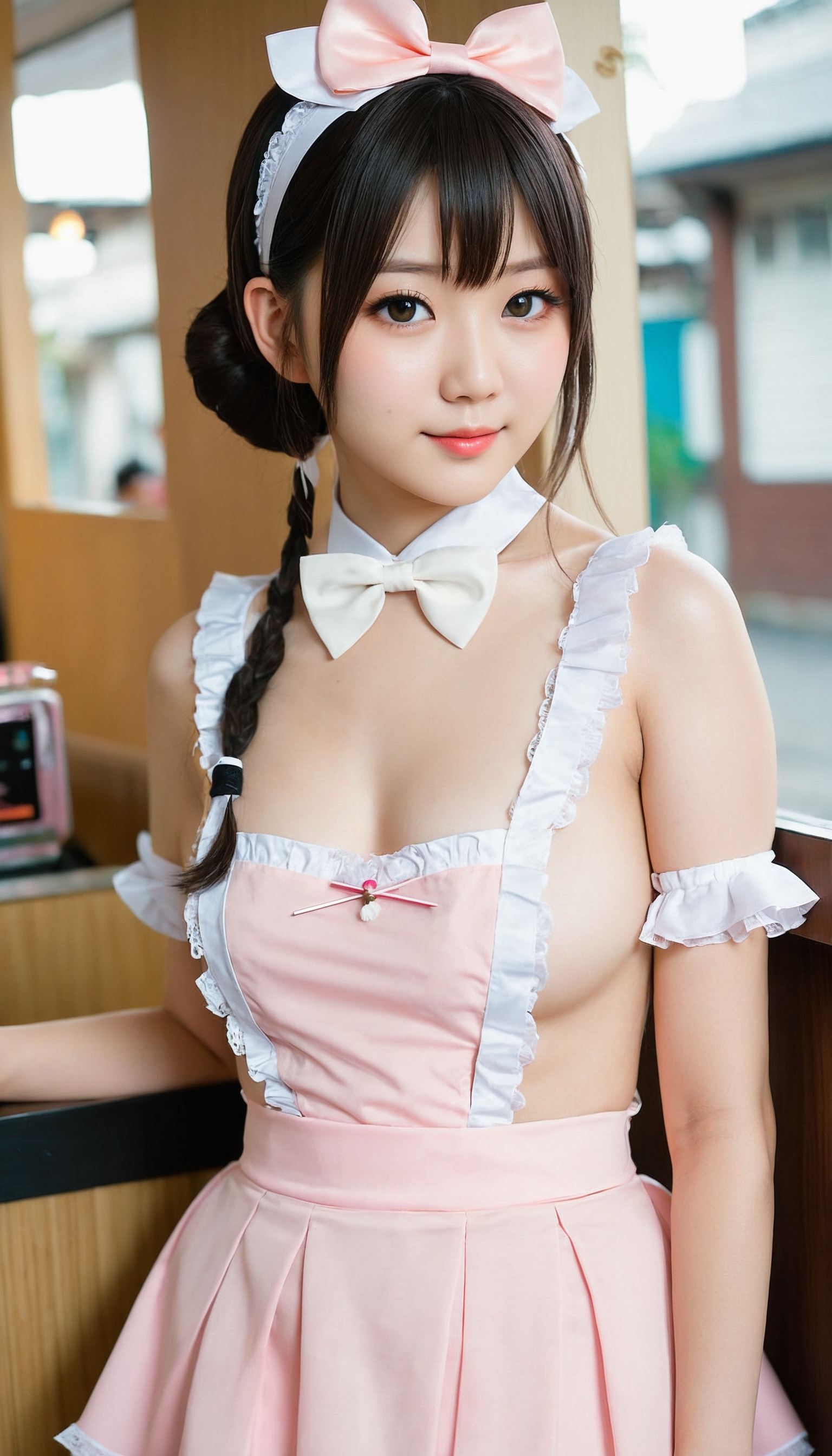 {"3": {"inputs": {"seed": 644310068578689, "steps": 64, "cfg": 7.87, "sampler_name": "dpmpp_2m", "scheduler": "karras", "denoise": 1.0, "model": ["27", 0], "positive": ["6", 0], "negative": ["7", 0], "latent_image": ["5", 0]}, "class_type": "KSampler"}, "4": {"inputs": {"ckpt_name": "juggernautXL_v8Rundiffusion.safetensors"}, "class_type": "CheckpointLoaderSimple"}, "5": {"inputs": {"width": 768, "height": 1344, "batch_size": 1}, "class_type": "EmptyLatentImage"}, "6": {"inputs": {"text": "19 year old girl, (japanese:1.14), (seductive pose:1.06), (eyelashes:0.99), (detailed face:1.05), (temptress:0.98), (beautiful eyes:1.10), (blush:1.05), (idol:0.99), (sexy lips:1.14), (seductive facial expression:1.11), (pale skin:1.11), (cute:0.95), (double eyelids:1.14), (perky ass:1.12), (exposed ass:1.10), (looking back:1.06), (sexy ass:1.10), (thigh gap:1.08), in a (skimpy maid costume:1.10) working at a maid cafe, choker, bowtie, headband, pleated skirt, (candid cinema:1.03), (portra:1.01), (detailed skin:1.05), (natural looking skin:1.04), (skin fuzz:1.06), (soft lighting:1.04), (textured skin:1.09), (film:1.00), (RAW:1.06)", "clip": ["27", 1]}, "class_type": "CLIPTextEncode"}, "7": {"inputs": {"text": "(open mouth:1.06), (distorted:1.09), (twisted:1.07), (low resolution:1.08), (bad hands:1.05), (watermark:1.05), (worst quality:1.05)", "clip": ["27", 1]}, "class_type": "CLIPTextEncode"}, "8": {"inputs": {"samples": ["3", 0], "vae": ["4", 2]}, "class_type": "VAEDecode"}, "25": {"inputs": {"lora_name": "nudify_xl.safetensors", "strength_model": 0.0, "strength_clip": 0.33, "model": ["4", 0], "clip": ["4", 1]}, "class_type": "LoraLoader"}, "26": {"inputs": {"lora_name": "shirtlift_SDXL_v2.safetensors", "strength_model": 0.01, "strength_clip": 0.05, "model": ["25", 0], "clip": ["25", 1]}, "class_type": "LoraLoader"}, "27": {"inputs": {"lora_name": "PerfectEyesXL.safetensors", "strength_model": 0.0, "strength_clip": 0.07, "model": ["26", 0], "clip": ["26", 1]}, "class_type": "LoraLoader"}, "30": {"inputs": {"model_name": "4x_NMKD-Superscale-SP_178000_G.pth"}, "class_type": "UpscaleModelLoader"}, "31": {"inputs": {"upscale_model": ["30", 0], "image": ["8", 0]}, "class_type": "ImageUpscaleWithModel"}, "32": {"inputs": {"upscale_method": "lanczos", "scale_by": 0.5, "image": ["31", 0]}, "class_type": "ImageScaleBy"}, "33": {"inputs": {"pixels": ["32", 0], "vae": ["4", 2]}, "class_type": "VAEEncode"}, "34": {"inputs": {"seed": 644310068578689, "steps": 64, "cfg": 7.87, "sampler_name": "dpmpp_2m", "scheduler": "karras", "denoise": 0.3, "model": ["27", 0], "positive": ["6", 0], "negative": ["7", 0], "latent_image": ["33", 0]}, "class_type": "KSampler"}, "36": {"inputs": {"samples": ["34", 0], "vae": ["4", 2]}, "class_type": "VAEDecode"}, "39": {"inputs": {"filename_prefix": "comfyapi-1707620802711", "images": ["36", 0]}, "class_type": "SaveImage"}}
