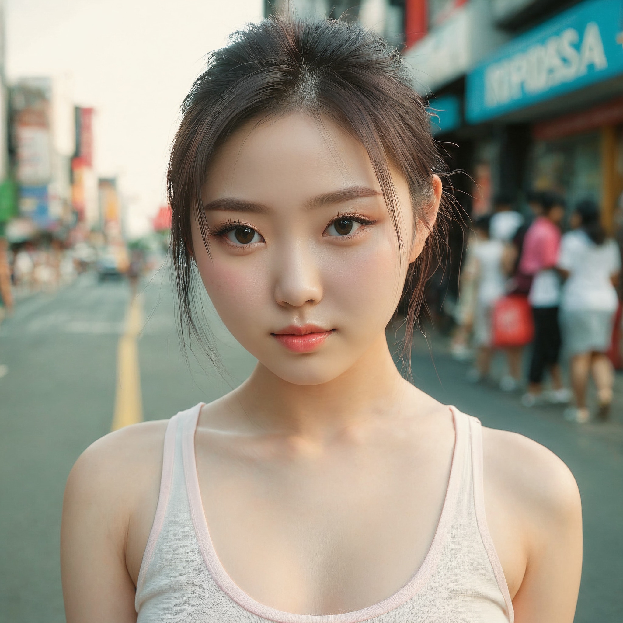 {"3": {"inputs": {"seed": 408076938060751, "steps": 64, "cfg": 7.15, "sampler_name": "dpmpp_2m", "scheduler": "karras", "denoise": 1.0, "model": ["27", 0], "positive": ["6", 0], "negative": ["7", 0], "latent_image": ["5", 0]}, "class_type": "KSampler"}, "4": {"inputs": {"ckpt_name": "juggernautxl.safetensors"}, "class_type": "CheckpointLoaderSimple"}, "5": {"inputs": {"width": 1024, "height": 1024, "batch_size": 1}, "class_type": "EmptyLatentImage"}, "6": {"inputs": {"text": "19 year old girl, (irish:1.06), (korean:1.04), (eyelashes:0.96), (blush:1.10), (cute:1.06), (seductive facial expression:1.03), (detailed face:1.07), (sexy lips:1.05), (beautiful eyes:0.98), (slim:1.13), (seductive pose:0.98), (idol:1.07), (double eyelids:1.09), (pale skin:1.10), (temptress:1.14), (perky ass:1.12), (exposed ass:1.06), (looking back:0.99), (sexy ass:1.02), (thigh gap:0.95), (white tanktop:0.97), busy street, (film:1.06), (portra:1.09), (candid cinema:1.05), (soft lighting:1.00), (RAW:1.00), (detailed skin:1.00), (natural looking skin:1.07), (textured skin:1.09)", "clip": ["27", 1]}, "class_type": "CLIPTextEncode"}, "7": {"inputs": {"text": "(bad hands:1.11), (distorted:1.06), (open mouth:1.05), (low resolution:1.09), (worst quality:1.06), (watermark:1.05), (twisted:1.05)", "clip": ["27", 1]}, "class_type": "CLIPTextEncode"}, "8": {"inputs": {"samples": ["3", 0], "vae": ["4", 2]}, "class_type": "VAEDecode"}, "25": {"inputs": {"lora_name": "nudify_xl.safetensors", "strength_model": 0.13, "strength_clip": 0.1, "model": ["4", 0], "clip": ["4", 1]}, "class_type": "LoraLoader"}, "26": {"inputs": {"lora_name": "shirtlift_SDXL_v2.safetensors", "strength_model": 0.15, "strength_clip": 0.03, "model": ["25", 0], "clip": ["25", 1]}, "class_type": "LoraLoader"}, "27": {"inputs": {"lora_name": "PerfectEyesXL.safetensors", "strength_model": 0.06, "strength_clip": 0.19, "model": ["26", 0], "clip": ["26", 1]}, "class_type": "LoraLoader"}, "30": {"inputs": {"model_name": "4x_NMKD-Superscale-SP_178000_G.pth"}, "class_type": "UpscaleModelLoader"}, "31": {"inputs": {"upscale_model": ["30", 0], "image": ["8", 0]}, "class_type": "ImageUpscaleWithModel"}, "32": {"inputs": {"upscale_method": "lanczos", "scale_by": 0.5, "image": ["31", 0]}, "class_type": "ImageScaleBy"}, "33": {"inputs": {"pixels": ["32", 0], "vae": ["4", 2]}, "class_type": "VAEEncode"}, "34": {"inputs": {"seed": 408076938060751, "steps": 64, "cfg": 7.15, "sampler_name": "dpmpp_2m", "scheduler": "karras", "denoise": 0.3, "model": ["27", 0], "positive": ["6", 0], "negative": ["7", 0], "latent_image": ["33", 0]}, "class_type": "KSampler"}, "36": {"inputs": {"samples": ["34", 0], "vae": ["4", 2]}, "class_type": "VAEDecode"}, "39": {"inputs": {"filename_prefix": "comfyapi-1713961073338", "images": ["36", 0]}, "class_type": "SaveImage"}}