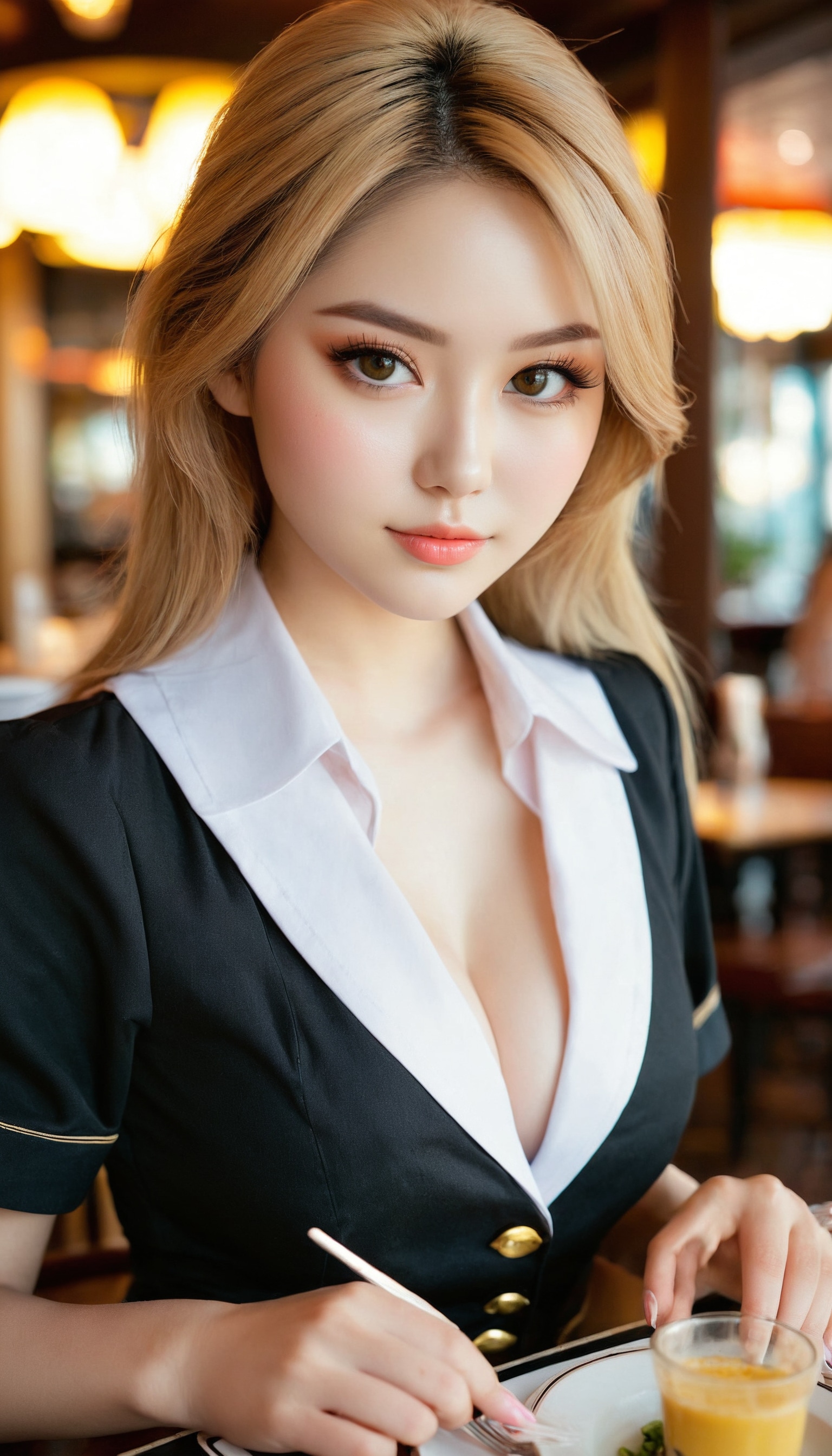 {"3": {"inputs": {"seed": 893457523385188, "steps": 32, "cfg": 6.91, "sampler_name": "dpmpp_2m", "scheduler": "karras", "denoise": 1.0, "model": ["27", 0], "positive": ["6", 0], "negative": ["7", 0], "latent_image": ["5", 0]}, "class_type": "KSampler"}, "4": {"inputs": {"ckpt_name": "juggernautxl.safetensors"}, "class_type": "CheckpointLoaderSimple"}, "5": {"inputs": {"width": 768, "height": 1344, "batch_size": 1}, "class_type": "EmptyLatentImage"}, "6": {"inputs": {"text": "28 year old girl, (beautiful eyes:1.02), (detailed face:1.10), (cute:0.98), (seductive pose:1.06), (seductive facial expression:0.99), (eyelashes:1.08), (slim:0.95), (blush:1.08), (pale skin:1.05), (idol:1.11), (double eyelids:1.01), (sexy lips:1.12), (temptress:1.10), (in a seductive pose:1.08), (large perky breasts:1.04), (cleavage:1.02), (thigh gap:1.11), (a waitress in uniform:1.05) working at a restaurant, (detailed skin:1.05), (soft lighting:1.04), (skin fuzz:1.05), (portra:1.02), (natural looking skin:1.02), (candid cinema:1.00), (textured skin:1.02), (RAW:1.05), (film:1.04)", "clip": ["27", 1]}, "class_type": "CLIPTextEncode"}, "7": {"inputs": {"text": "(worst quality:1.13), (open mouth:1.14), (distorted:1.14), (twisted:1.14), (low resolution:1.13), (watermark:1.08), (bad hands:1.09)", "clip": ["27", 1]}, "class_type": "CLIPTextEncode"}, "8": {"inputs": {"samples": ["3", 0], "vae": ["4", 2]}, "class_type": "VAEDecode"}, "25": {"inputs": {"lora_name": "nudify_xl.safetensors", "strength_model": 0.36, "strength_clip": 0.34, "model": ["4", 0], "clip": ["4", 1]}, "class_type": "LoraLoader"}, "26": {"inputs": {"lora_name": "shirtlift_SDXL_v2.safetensors", "strength_model": 0.04, "strength_clip": 0.1, "model": ["25", 0], "clip": ["25", 1]}, "class_type": "LoraLoader"}, "27": {"inputs": {"lora_name": "PerfectEyesXL.safetensors", "strength_model": 0.09, "strength_clip": 0.14, "model": ["26", 0], "clip": ["26", 1]}, "class_type": "LoraLoader"}, "30": {"inputs": {"model_name": "4x_NMKD-Superscale-SP_178000_G.pth"}, "class_type": "UpscaleModelLoader"}, "31": {"inputs": {"upscale_model": ["30", 0], "image": ["8", 0]}, "class_type": "ImageUpscaleWithModel"}, "32": {"inputs": {"upscale_method": "lanczos", "scale_by": 0.5, "image": ["31", 0]}, "class_type": "ImageScaleBy"}, "33": {"inputs": {"pixels": ["32", 0], "vae": ["4", 2]}, "class_type": "VAEEncode"}, "34": {"inputs": {"seed": 893457523385188, "steps": 32, "cfg": 6.91, "sampler_name": "dpmpp_2m", "scheduler": "karras", "denoise": 0.3, "model": ["27", 0], "positive": ["6", 0], "negative": ["7", 0], "latent_image": ["33", 0]}, "class_type": "KSampler"}, "36": {"inputs": {"samples": ["34", 0], "vae": ["4", 2]}, "class_type": "VAEDecode"}, "39": {"inputs": {"filename_prefix": "comfyapi-1713395503392", "images": ["36", 0]}, "class_type": "SaveImage"}}
