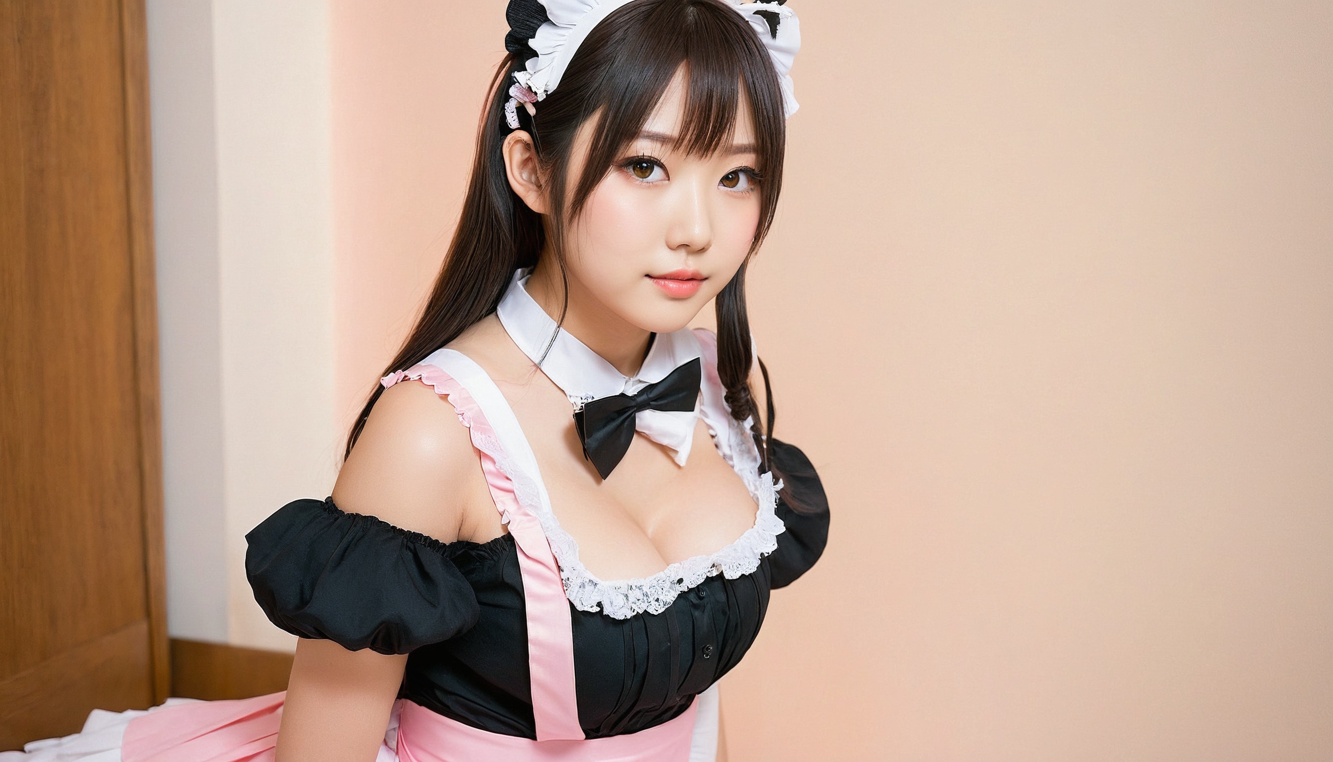 {"3": {"inputs": {"seed": 276655669384845, "steps": 32, "cfg": 7.17, "sampler_name": "dpmpp_2m", "scheduler": "karras", "denoise": 1.0, "model": ["27", 0], "positive": ["6", 0], "negative": ["7", 0], "latent_image": ["5", 0]}, "class_type": "KSampler"}, "4": {"inputs": {"ckpt_name": "juggernautxl.safetensors"}, "class_type": "CheckpointLoaderSimple"}, "5": {"inputs": {"width": 1344, "height": 768, "batch_size": 1}, "class_type": "EmptyLatentImage"}, "6": {"inputs": {"text": "20 year old girl, (japanese:1.06), (temptress:1.02), (blush:1.08), (idol:0.97), (beautiful eyes:1.12), (double eyelids:1.14), (sexy lips:0.96), (seductive facial expression:1.14), (eyelashes:0.97), (detailed face:1.08), (cute:1.02), (seductive pose:0.98), (slim:1.10), (on all fours:1.06), (spreading ass cheeks:1.13), (from behind:0.98), (backboob:1.01), in a (skimpy maid costume:1.12) working at a maid cafe, choker, bowtie, headband, pleated skirt, (candid cinema:1.00), (soft lighting:1.03), (natural looking skin:1.03), (film:1.01), (portra:1.03), (RAW:1.05), (skin fuzz:1.07), (detailed skin:1.01), (textured skin:1.09)", "clip": ["27", 1]}, "class_type": "CLIPTextEncode"}, "7": {"inputs": {"text": "(bad hands:1.07), (open mouth:1.05), (worst quality:1.06), (twisted:1.14), (distorted:1.05), (watermark:1.11), (low resolution:1.07)", "clip": ["27", 1]}, "class_type": "CLIPTextEncode"}, "8": {"inputs": {"samples": ["3", 0], "vae": ["4", 2]}, "class_type": "VAEDecode"}, "25": {"inputs": {"lora_name": "nudify_xl.safetensors", "strength_model": 0.18, "strength_clip": 0.15, "model": ["4", 0], "clip": ["4", 1]}, "class_type": "LoraLoader"}, "26": {"inputs": {"lora_name": "shirtlift_SDXL_v2.safetensors", "strength_model": 0.05, "strength_clip": 0.03, "model": ["25", 0], "clip": ["25", 1]}, "class_type": "LoraLoader"}, "27": {"inputs": {"lora_name": "PerfectEyesXL.safetensors", "strength_model": 0.0, "strength_clip": 0.08, "model": ["26", 0], "clip": ["26", 1]}, "class_type": "LoraLoader"}, "30": {"inputs": {"model_name": "4x_NMKD-Superscale-SP_178000_G.pth"}, "class_type": "UpscaleModelLoader"}, "31": {"inputs": {"upscale_model": ["30", 0], "image": ["8", 0]}, "class_type": "ImageUpscaleWithModel"}, "32": {"inputs": {"upscale_method": "lanczos", "scale_by": 0.5, "image": ["31", 0]}, "class_type": "ImageScaleBy"}, "33": {"inputs": {"pixels": ["32", 0], "vae": ["4", 2]}, "class_type": "VAEEncode"}, "34": {"inputs": {"seed": 276655669384845, "steps": 32, "cfg": 7.17, "sampler_name": "dpmpp_2m", "scheduler": "karras", "denoise": 0.3, "model": ["27", 0], "positive": ["6", 0], "negative": ["7", 0], "latent_image": ["33", 0]}, "class_type": "KSampler"}, "36": {"inputs": {"samples": ["34", 0], "vae": ["4", 2]}, "class_type": "VAEDecode"}, "39": {"inputs": {"filename_prefix": "comfyapi-1715938111453", "images": ["36", 0]}, "class_type": "SaveImage"}}